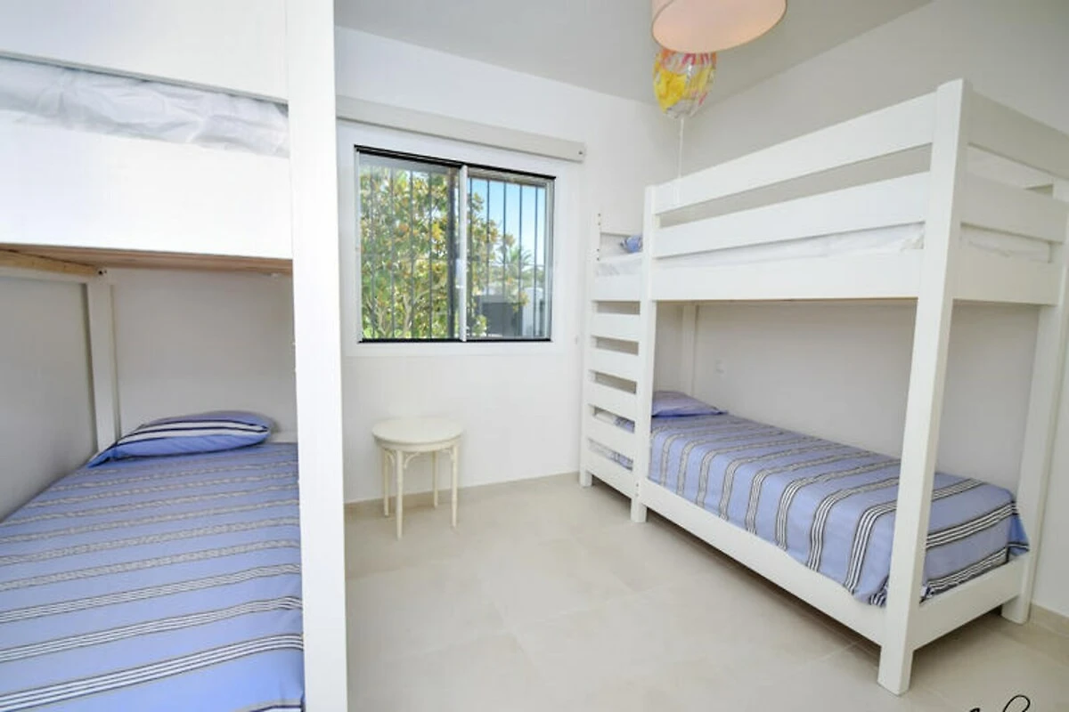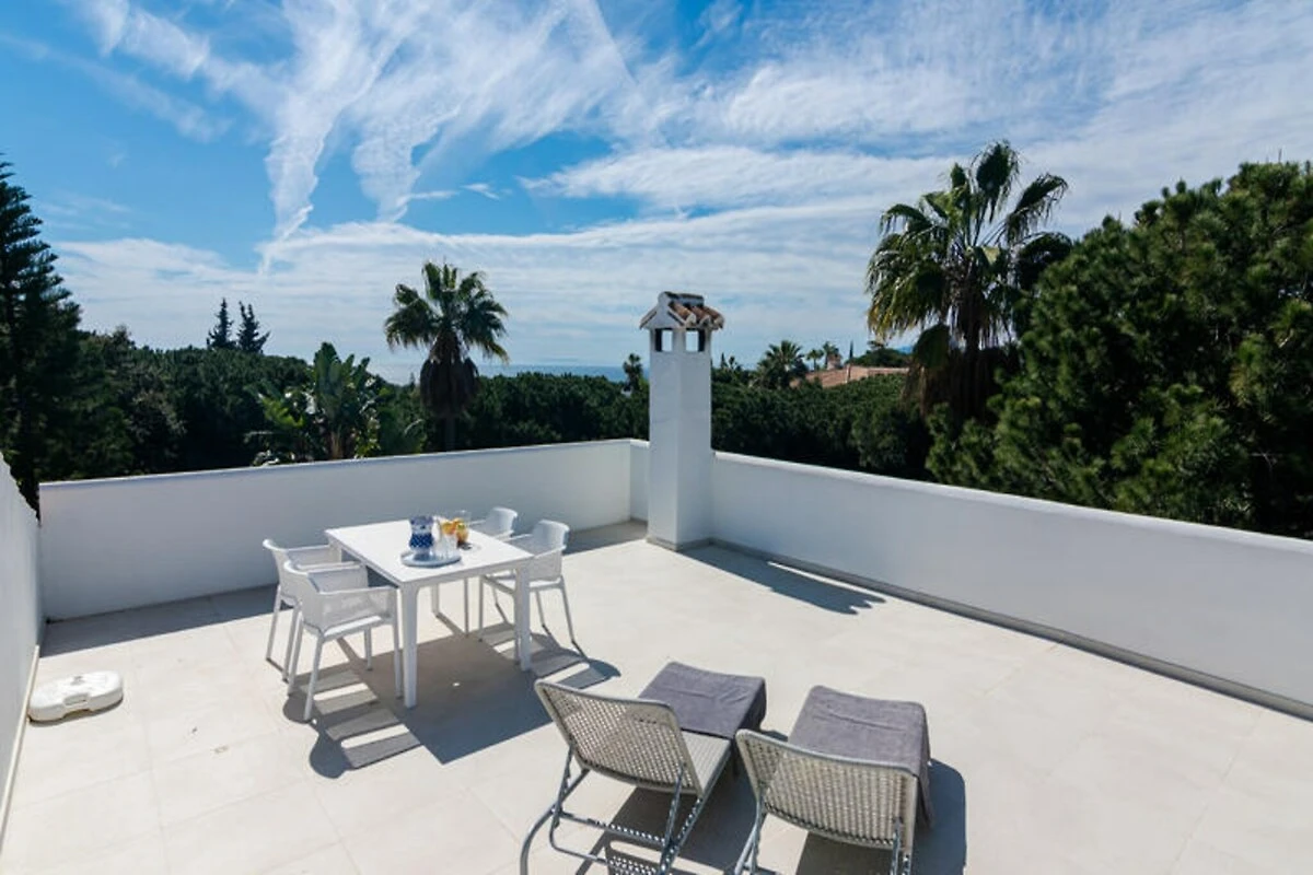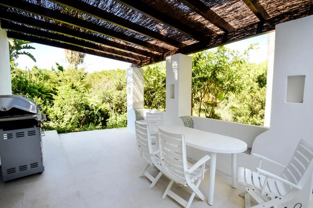 Genießen Sie die Wärme der andalusischen Sonne in dieser charmanten, ebenerdigen Villa – ein idyllischer Rückzugsort in einer ruhigen, familienfreundlichen Gegend nahe Marbella. Mit ihrem üppigen, gepflegten Garten und dem privaten, nach Süden ausgerichteten Pool lädt die Villa zum Entspannen und Genießen des mediterranen Lebensstils ein. Ob Sie am Pool relaxen, auf der überdachten Terrasse im Freien speisen oder eine Siesta auf dem bequemen Sofa im Freien halten – hier fühlt sich jeder Moment wie ein Stück Paradies an. Die Villa bietet bequem Platz für bis zu zehn Gäste in vier Schlafzimmern. Drei davon sind mit gemütlichen Doppelbetten ausgestattet, das vierte mit zwei Etagenbetten – ideal für Kinder oder Gruppen. Die in den 1970er-Jahren erbaute Villa versprüht nostalgischen Charme und bietet gleichzeitig modernen Komfort wie kostenloses WLAN, Klimaanlage und eine voll ausgestattete Küche. Der Gasgrill ist ideal, um köstliche Mahlzeiten unter dem Sternenhimmel zuzubereiten und somit die perfekte Wahl für Familien oder Freundesgruppen, die Gemütlichkeit und Geselligkeit suchen.\n\nNur drei Autominuten entfernt finden Sie eine Vielzahl von Geschäften, Restaurants und Bars sowie einen großen Supermarkt für all Ihre Bedürfnisse. Der berühmte Strandclub Nikki Beach Marbella ist ebenfalls in der Nähe und bietet ein luxuriöses Stranderlebnis. Abenteuerlustige können bei Aventura Amazonia einen aufregenden Tag mit Ziplining und Kletterabenteuern erleben. Das lebhafte Stadtzentrum von Marbella mit seinen Salvador-Dalí-Skulpturen, Sandstränden und der malerischen Plaza de las Naranjos ist nur zehn Autominuten entfernt und bietet eine Mischung aus Kultur, Geschichte und Unterhaltung.\n\nOb Sie am Pool entspannen, Marbellas reiches Erbe erkunden oder die kulinarischen Köstlichkeiten der Region genießen möchten – diese Villa ist der perfekte Ausgangspunkt für einen unvergesslichen Urlaub. Sonne, Komfort und Abenteuer direkt vor der Tür – Ihr andalusischer Urlaub erwartet Sie.