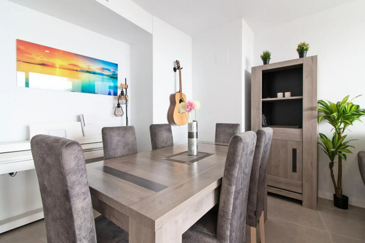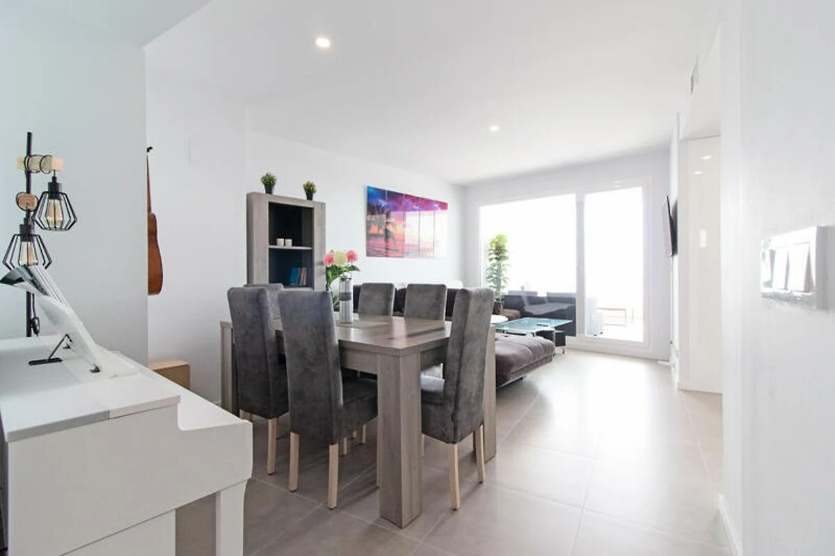 Stellen Sie sich vor, Sie wachen mit der mediterranen Brise auf, treten auf eine der beiden traumhaften Terrassen und genießen den Panoramablick auf Meer und Berge. Dieses moderne Apartment in Canet d’en Berenguer ist eine Oase der Entspannung und des Stils, die Ihren Urlaub unvergesslich macht. Mit Platz für bis zu zehn Gäste ist es der perfekte Rückzugsort für Familien oder Freundesgruppen, die Komfort und Abenteuer suchen. Nur 8 Gehminuten von einem der bekanntesten Strände Spaniens entfernt, bietet diese Unterkunft die ideale Mischung aus Ruhe und Abenteuer.
