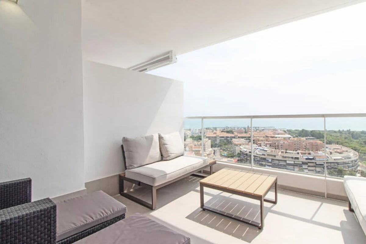 Im Inneren erwarten Sie vier geschmackvoll eingerichtete Schlafzimmer, von denen zwei auf eine geräumige Terrasse mit atemberaubendem Bergblick führen. Das lichtdurchflutete Wohnzimmer mit seinen großen Fenstern geht nahtlos in eine weitere Terrasse mit Meerblick über. Beide Terrassen sind komplett ausgestattet und bieten den perfekten Rahmen für Mahlzeiten im Freien oder einfach zum Entspannen bei einem Glas Wein. Das Apartment verfügt außerdem über zwei moderne Badezimmer und einen privaten Pool, in dem Sie ungestört die Sonne genießen können.