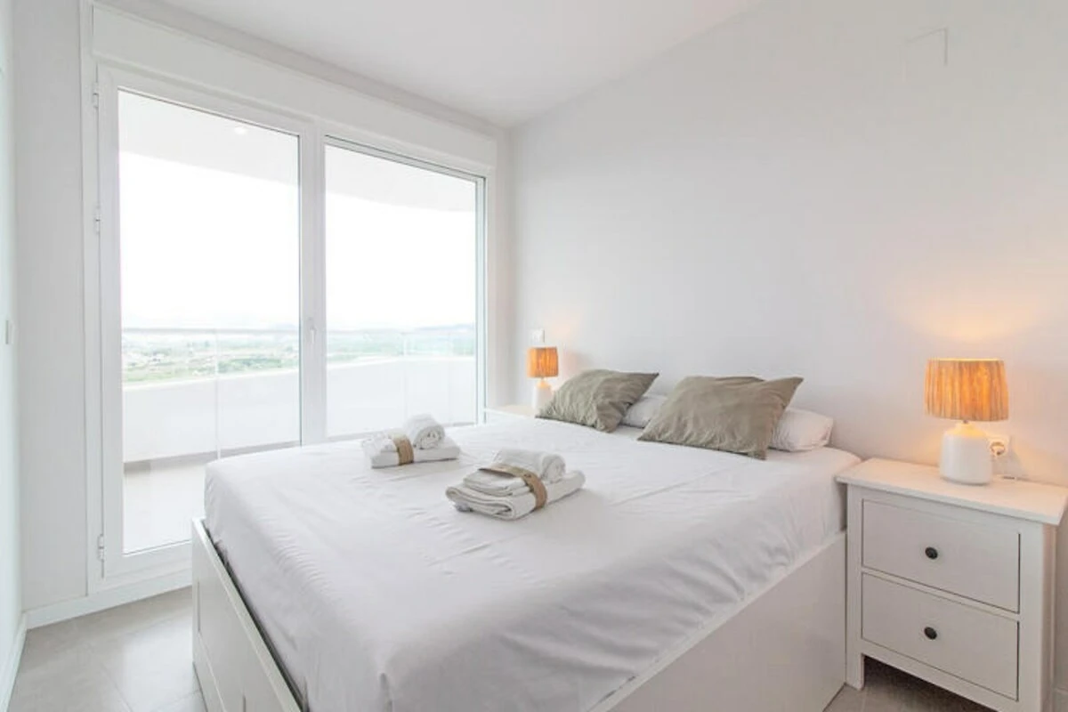 Das Apartment verfügt über drei wunderschön gestaltete Schlafzimmer, von denen zwei auf eine große Terrasse mit herrlichem Bergblick führen. Das lichtdurchflutete Wohnzimmer mit seinen großen Fenstern bietet Zugang zu einer zweiten Terrasse mit Blick auf das glitzernde Mittelmeer. Mit zwei Badezimmern und einer voll ausgestatteten Küche ist diese Unterkunft ideal für Familien oder Gruppen bis zu fünf Personen. Jedes Detail wurde sorgfältig ausgewählt, um Ihren Aufenthalt so komfortabel wie unvergesslich zu gestalten.