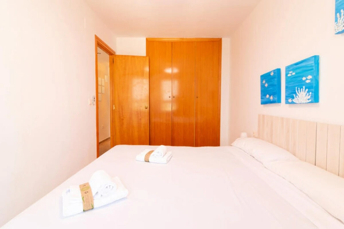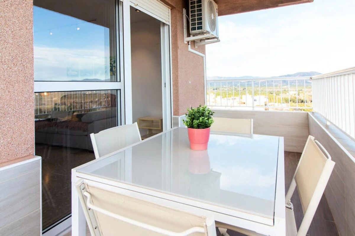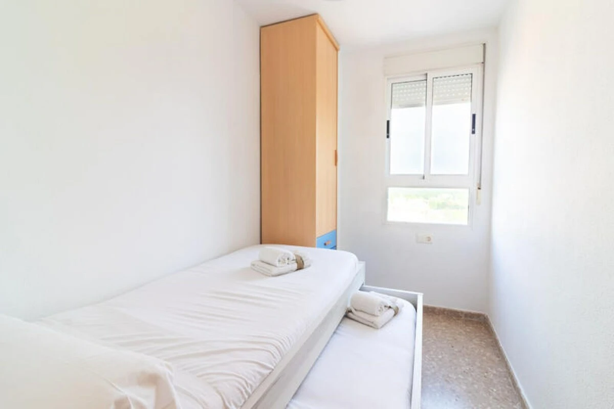 Eine sanfte Mittelmeerbrise empfängt Sie in diesem charmanten Apartment in Canet d'en Berenguer, einem beschaulichen Küstenort in Spanien. Ideal für Familien und Paare, die einen ruhigen Urlaub verbringen möchten, bietet diese Unterkunft eine harmonische Mischung aus Komfort und Entspannung. Umgeben von üppigen Gärten und einem Gemeinschaftspool, an dem Kinder unbeschwert in der Sonne spielen können, lädt die wohltuende Atmosphäre zum Abschalten und Genießen des entspannten Lebensrhythmus ein. \n\nDas Apartment ist durchdacht gestaltet und lässt keine Wünsche offen. Die voll ausgestattete Küche verfügt über moderne Geräte wie Kühlschrank, Gefrierschrank, Backofen, Mikrowelle, Geschirrspüler und Kaffeemaschine, sodass Sie mühelos köstliche Mahlzeiten zubereiten können. Im gemütlichen Esszimmer und auf der privaten Terrasse können Sie Ihre Mahlzeiten genießen und dabei den beruhigenden Blick auf die Umgebung schweifen lassen. Mit drei Schlafzimmern (ein Doppelbett, zwei Einzelbetten und ein Schlafsofa) bietet das Apartment bequem Platz für bis zu sechs Gäste. Klimaanlage im Wohnzimmer, WLAN und ein Bügeleisen sorgen für zusätzlichen Komfort, und das Badezimmer ist mit einer erfrischenden Dusche ausgestattet. Neben der Wohnung selbst tragen die Gemeinschaftseinrichtungen zu einem gelungenen Aufenthalt bei. Erfrischen Sie sich im einladenden Pool oder lassen Sie Ihre Kinder den Spielplatz erkunden. Canet d'en Berenguer ist ein echter Geheimtipp mit unberührten Stränden, charmanten Restaurants und malerischen Wanderwegen. Ob Sie die Sonne am goldenen Sandstrand genießen oder die nahegelegenen Sehenswürdigkeiten entdecken – dieses Reiseziel verspricht unvergessliche Erinnerungen. Wählen Sie diese charmante Wohnung für Ihren nächsten Urlaub und erleben Sie die perfekte Balance aus Komfort, Natur und spanischem Küstenflair.