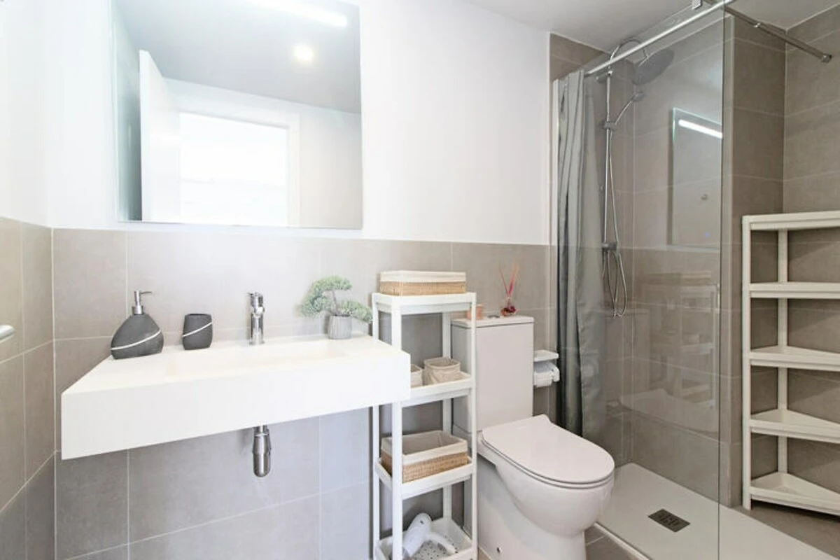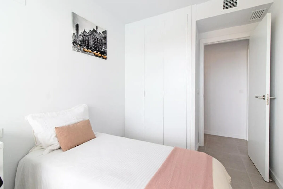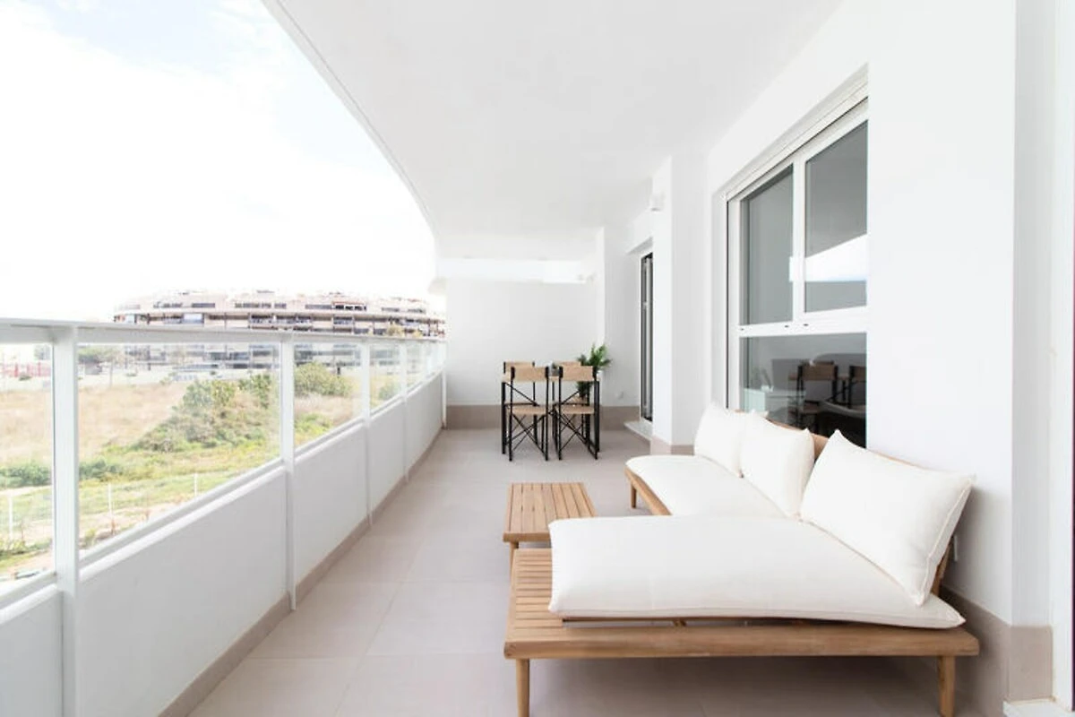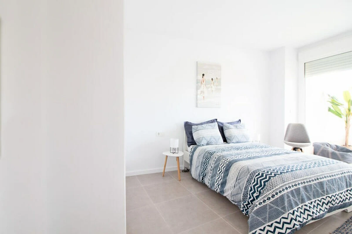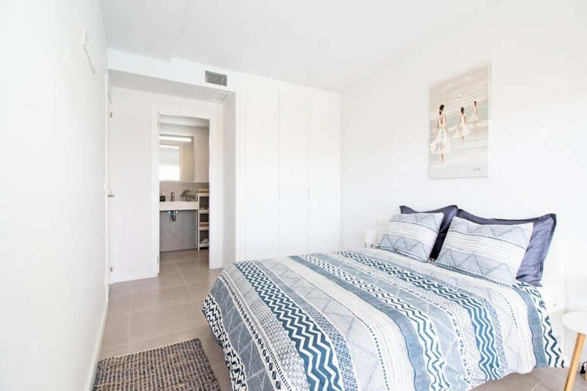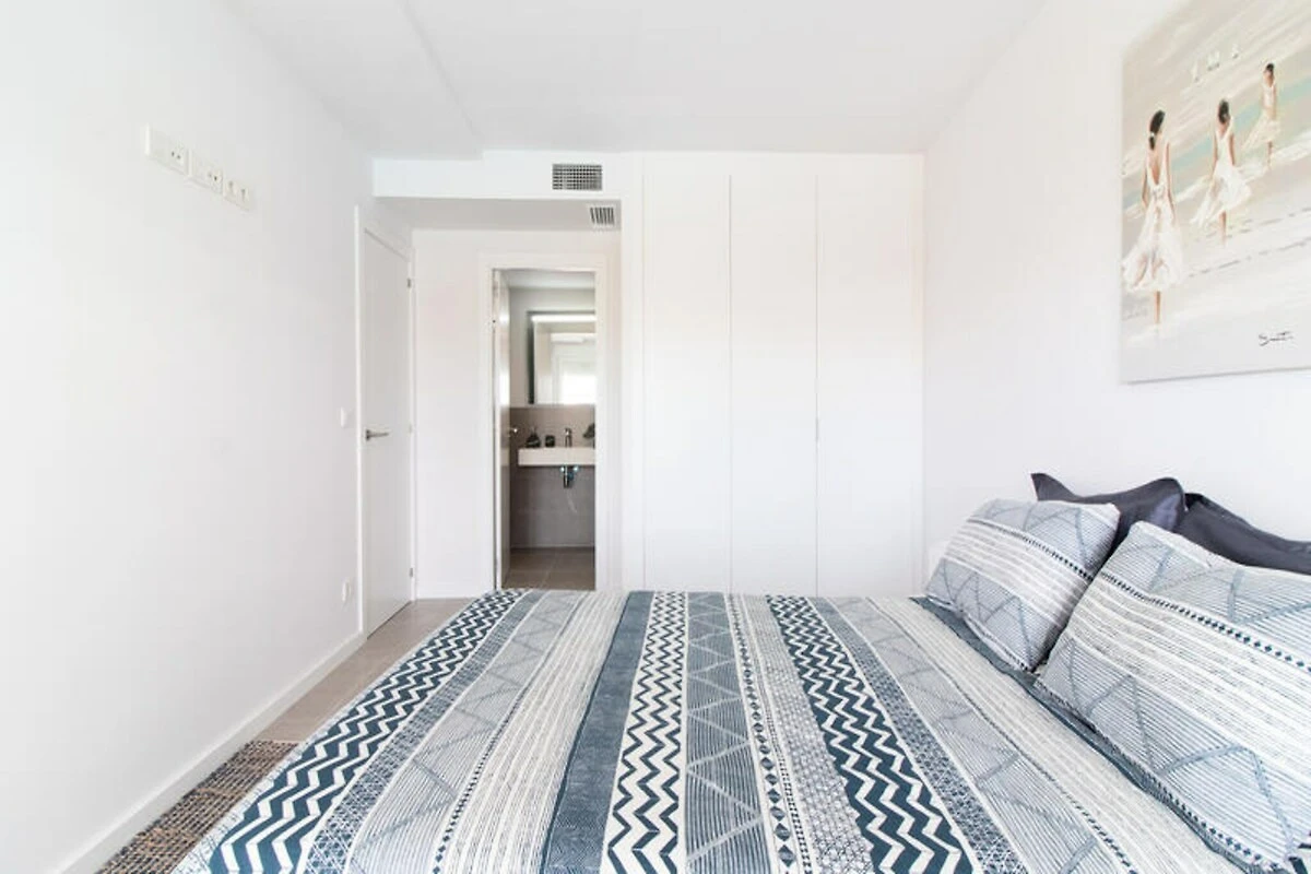 Das Apartment verfügt über eine großzügige Terrasse, ideal zum Essen im Freien oder zum Entspannen mit einem Buch in der spanischen Sonne. Im Inneren erwarten Sie zwei stilvoll eingerichtete Schlafzimmer, eines davon mit direktem Zugang zur Terrasse, und zwei moderne Badezimmer. Die offene Küche und der Wohnbereich sind stilvoll und funktional gestaltet und bieten einen fließenden Übergang zum Außenbereich. Voll ausgestattet und haustierfreundlich – dieses Apartment garantiert einen stressfreien Aufenthalt für Familien, Paare oder Freundesgruppen.