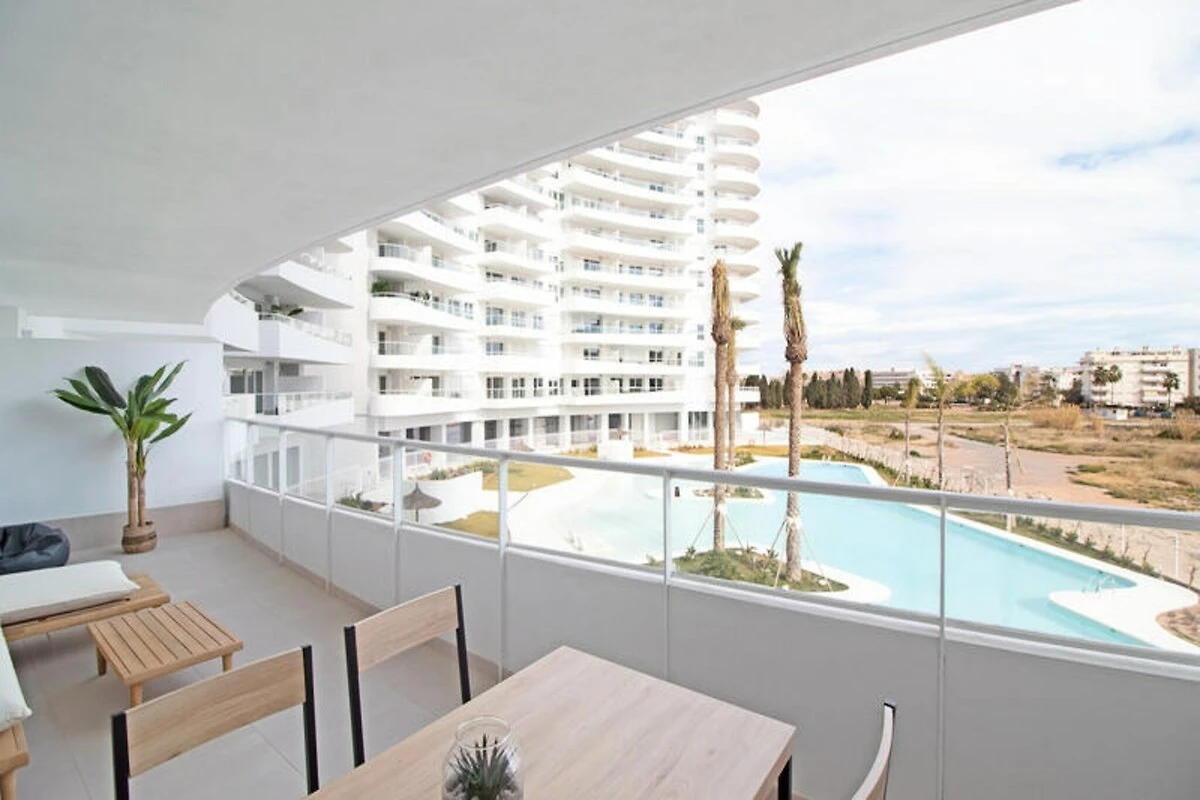 Stellen Sie sich vor, Sie wachen mit dem sanften Rauschen der mediterranen Brise auf und treten auf Ihre private Terrasse mit Blick auf einen glitzernden Pool. Dieses helle und moderne Apartment in der exklusiven Wohnanlage Gran Canet ist der perfekte Rückzugsort für alle, die Sonne, Meer und Entspannung suchen. Nur wenige Schritte vom preisgekrönten Strand Canet d’En Berenguer entfernt, vereint diese Unterkunft Komfort, Luxus und eine unschlagbare Lage für Ihren nächsten Urlaub.