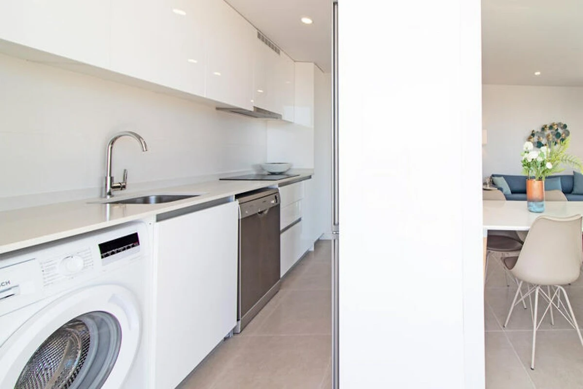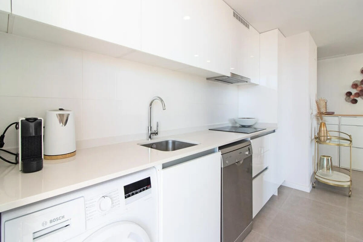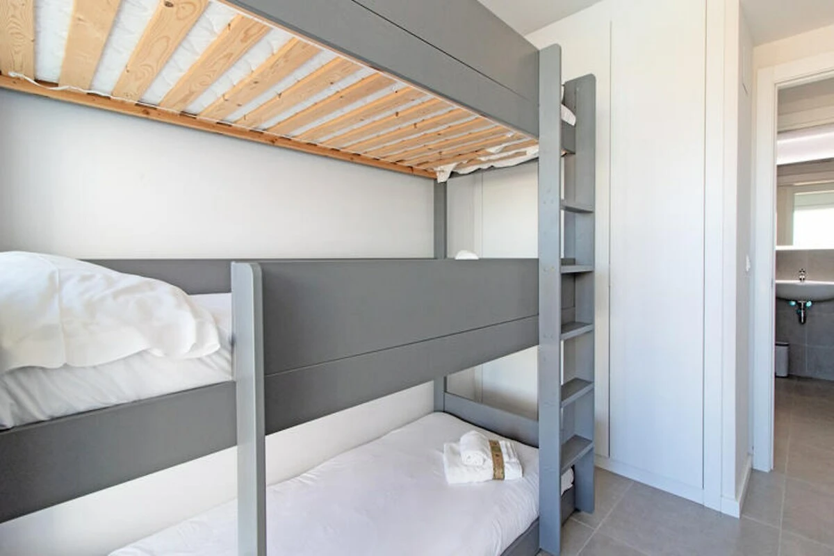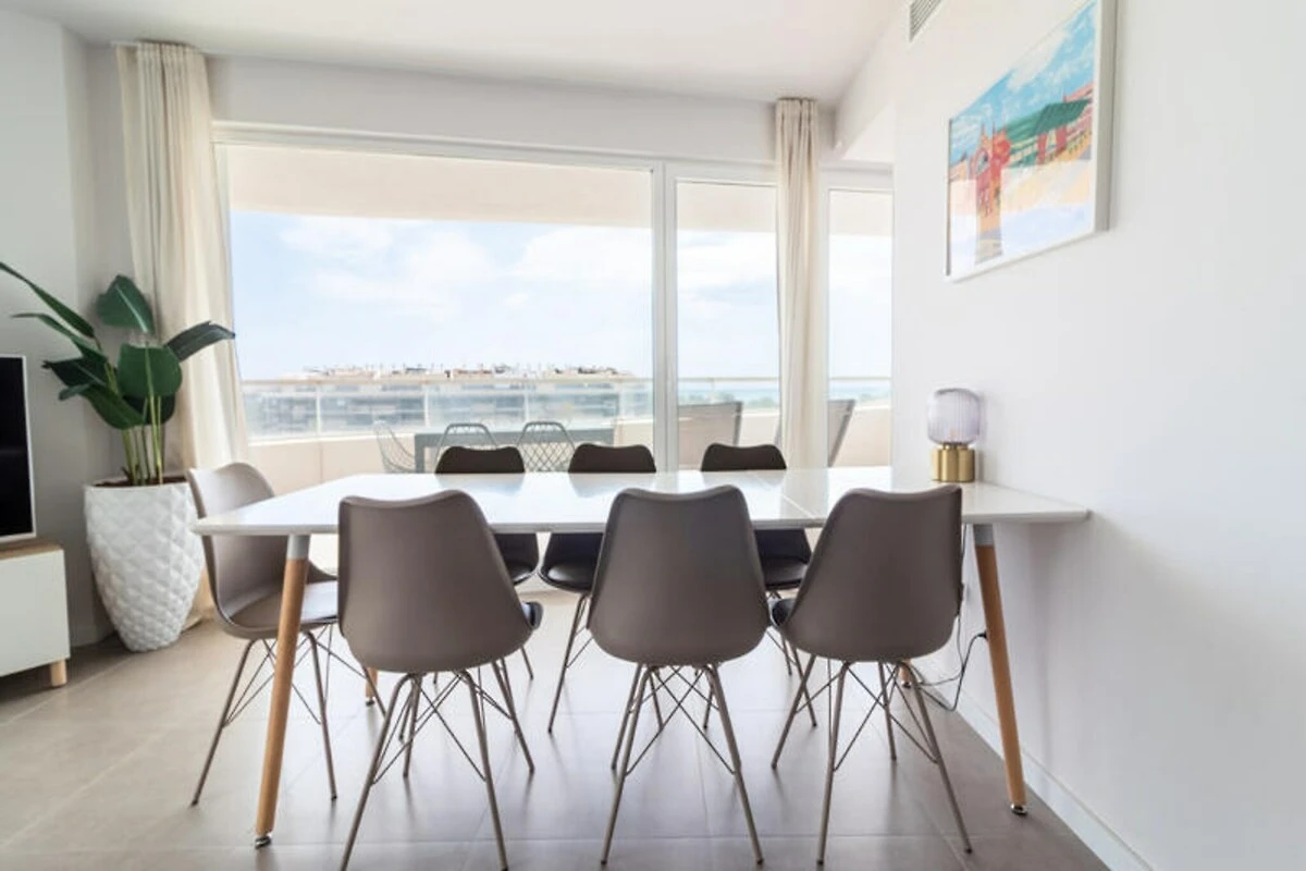 Das Apartment ist durchdacht gestaltet und bietet Platz für bis zu sieben Gäste. Es verfügt über drei geräumige Schlafzimmer, zwei moderne Badezimmer sowie einen offenen Wohn- und Küchenbereich, der nahtlos in eine herrliche Terrasse übergeht. Eine zweite Terrasse bietet zusätzlichen Raum zum Entspannen oder für Mahlzeiten mit Familie und Freunden. Hell, luftig und komplett ausgestattet, garantiert die Unterkunft einen komfortablen Aufenthalt mit allem Komfort, damit Sie sich wie zu Hause fühlen.