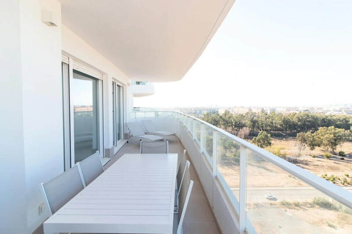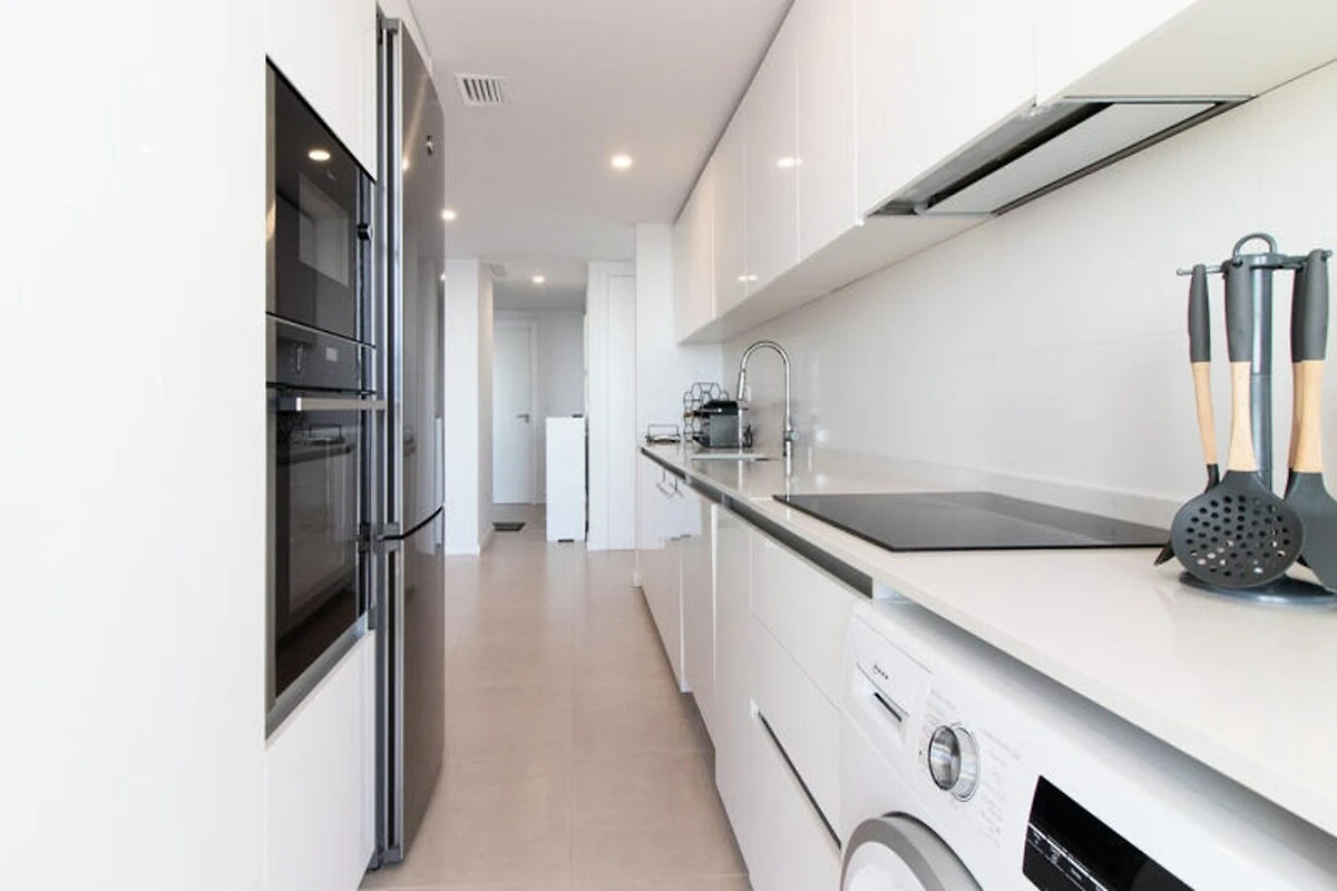 Das 150 m² große Apartment bietet bequem Platz für bis zu sechs Gäste in drei geschmackvoll eingerichteten Schlafzimmern. Die hellen und luftigen Räume werden durch eine 30 m² große Terrasse ergänzt, die sich ideal zum Essen im Freien oder einfach zum Genießen der Ruhe eignet. Die Unterkunft bietet zahlreiche Annehmlichkeiten, darunter eine voll ausgestattete Küche im amerikanischen Stil mit Induktionskochfeld, Geschirrspüler und Kaffeemaschine sowie moderne Annehmlichkeiten wie WLAN, Klimaanlage, Zentralheizung und eine Waschmaschine. Für zusätzlichen Luxus stehen Gästen ein Gemeinschaftspool, ein Spa und verschiedene Sporteinrichtungen wie Tennis-, Squash- und Padelplätze zur Verfügung. Überdachte Parkplätze im Gebäude sorgen für einen unbeschwerten Aufenthalt.