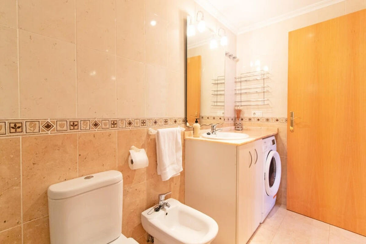 Das 205 m² große Apartment bietet bequem Platz für bis zu vier Gäste in zwei komfortablen Schlafzimmern. Der großzügige Innenbereich wird durch eine 70 m² große Terrasse ergänzt, die sich ideal zum Essen im Freien oder zum Genießen der spanischen Sonne eignet. Ausgestattet mit modernen Annehmlichkeiten wie Klimaanlage, WLAN, Waschmaschine, Trockner und Moskitonetzen, wurde an alles gedacht, um Ihnen maximalen Komfort zu bieten. Die Küche im amerikanischen Stil mit Cerankochfeld, Kühlschrank, Backofen und Kaffeemaschine ermöglicht Ihnen die unkomplizierte Zubereitung von Mahlzeiten. Ein Gemeinschaftspool mit Kinderbecken sorgt an warmen Tagen für eine erfrischende Abkühlung.