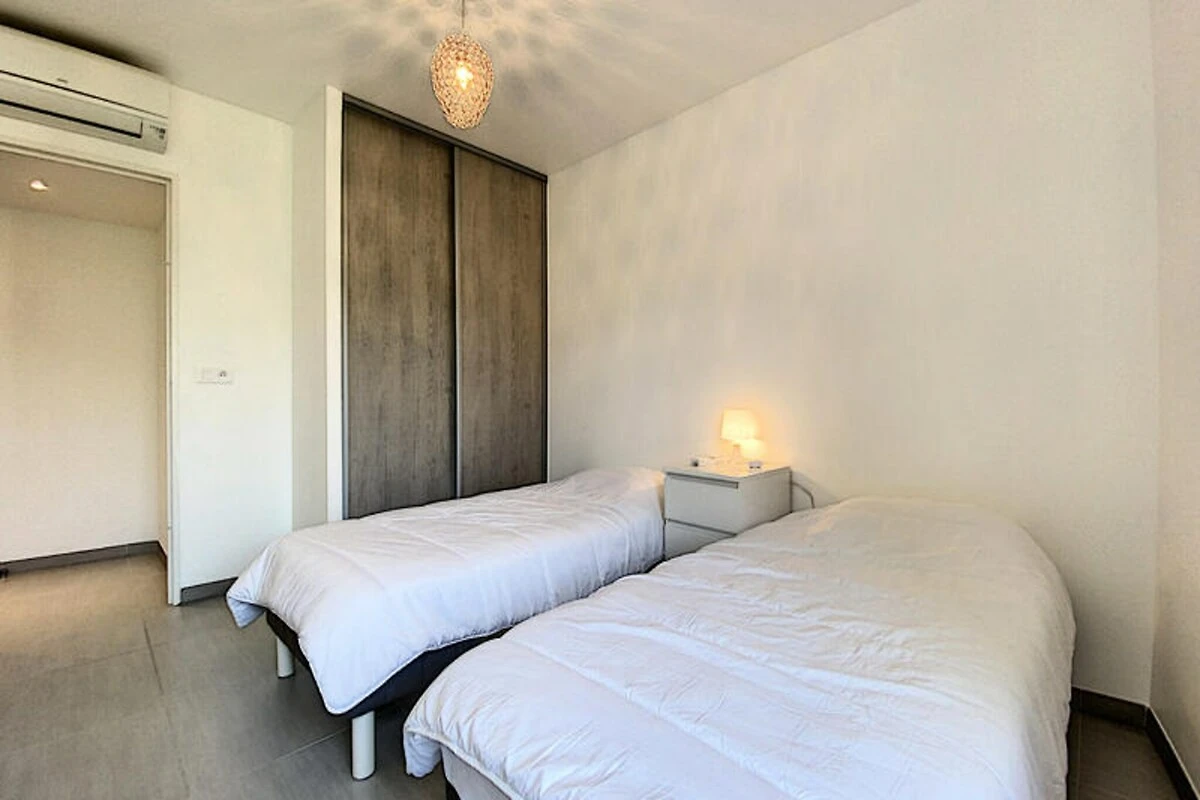 Im Herzen von Cannes, wo Glamour auf mediterranen Charme trifft, bietet dieses elegante Apartment einen ruhigen Rückzugsort nur wenige Schritte vom pulsierenden Stadtzentrum und den sonnenverwöhnten Stränden entfernt. Stellen Sie sich vor, wie Sie Ihren Tag mit einem Kaffee auf der geräumigen Terrasse beginnen und die sanfte Meeresbrise genießen, bevor Sie zur berühmten Croisette schlendern oder die lebhaften lokalen Märkte erkunden. Diese Residenz vereint modernen Komfort mit dem zeitlosen Reiz der Côte d’Azur und ist somit die ideale Wahl für Entspannung und Abenteuer. \n\nTreten Sie ein in dieses wunderschön gestaltete Dreizimmer-Apartment im dritten Stock eines modernen und ruhigen Hauses. Mit ca. 70 m² Wohnfläche bietet es ein helles Wohnzimmer mit einer gut ausgestatteten offenen Küche inklusive Kühlschrank, Halogenkochfeld, Backofen, Geschirrspüler und Nespresso-Kaffeemaschine. Die beiden Schlafzimmer bieten flexible Schlafmöglichkeiten mit zwei Einzelbetten und einem Doppelbett und bieten Komfort für bis zu vier Gäste. Das Badezimmer ist mit Badewanne und Waschmaschine ausgestattet, und eine Klimaanlage sorgt ganzjährig für angenehme Temperaturen. Eine große Terrasse lädt nach einem erlebnisreichen Tag zum Entspannen ein, und Parkplätze stehen auf Anfrage zur Verfügung. \n\nDieses Apartment ist perfekt gelegen: nur 800 m von den Stränden und der Croisette, 1300 m vom Palais des Festivals und nur wenige Gehminuten von Geschäften, Restaurants und dem Bahnhof entfernt. Ob Sie die berühmten Filmfestspiele von Cannes besuchen oder einfach die entspannte Atmosphäre der Riviera genießen möchten – alles, was Sie brauchen, ist in unmittelbarer Nähe. \n\nWählen Sie diese Unterkunft wegen ihrer gelungenen Kombination aus Ruhe, modernem Komfort und der Nähe zu den bekanntesten Sehenswürdigkeiten von Cannes. Ob Sie die lokale Küche genießen, die mediterrane Sonne tanken oder die kulturellen Schätze der Stadt erkunden – dieses Apartment verspricht einen unvergesslichen Aufenthalt in einem der glamourösesten Reiseziele Frankreichs.