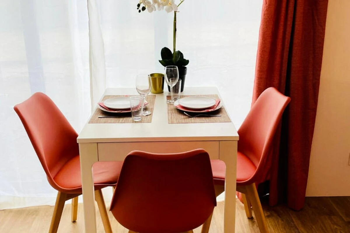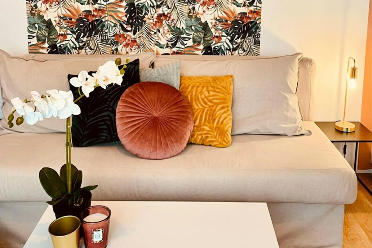Das Apartment ist durchdacht gestaltet und vereint Komfort und Funktionalität. Das Schlafzimmer verfügt über ein bequemes Doppelbett (160 x 200 cm), während ein zusätzliches Schlafsofa Platz für ein Kind oder einen Jugendlichen unter 15 Jahren bietet. Die offene Küche ist komplett ausgestattet mit Herd, Backofen, Mikrowelle und allem notwendigen Geschirr, sodass Sie Ihre Mahlzeiten bequem zubereiten und im Essbereich oder auf der Terrasse genießen können. Ein modernes Duschbad mit WC rundet das Angebot ab und sorgt für einen komfortablen Aufenthalt für bis zu drei Gäste.
