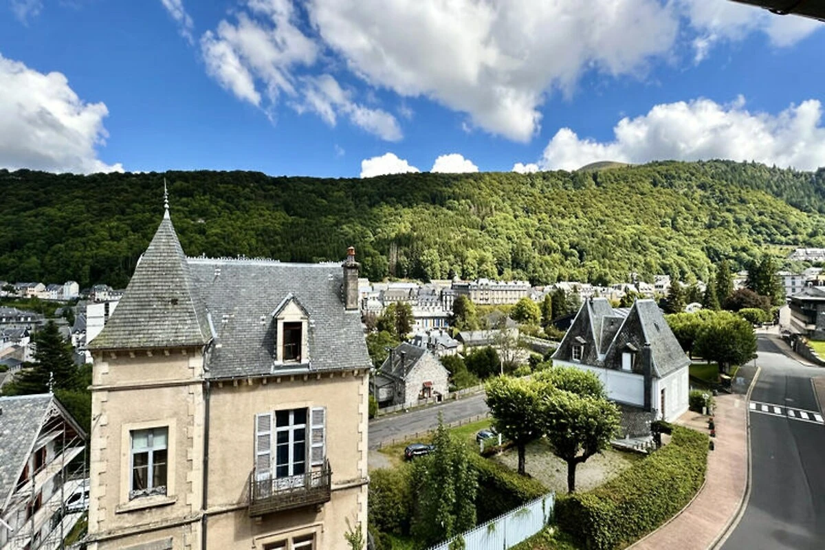 Mitten im malerischen Städtchen Le Mont-Dore bietet dieses helle und einladende Apartment den perfekten Rückzugsort für Bergfreunde und Erholungssuchende. Dank der zentralen Lage erreichen Sie in wenigen Schritten charmante Geschäfte, gemütliche Restaurants und die bekannten Thermalbäder, die diese Region so besonders machen. Ob romantischer Kurzurlaub, Familienabenteuer oder Reise mit Freunden – diese 42 m² große Oase verspricht Komfort und Bequemlichkeit gleichermaßen. \n\nDas Apartment verfügt über zwei geschmackvoll eingerichtete Schlafzimmer und bietet bequem Platz für bis zu sechs Gäste. Das warme und helle Interieur schafft eine einladende Atmosphäre, die durch die elektrische Heizung ganzjährig für behagliche Wärme sorgt. Die offene Küche ist mit modernen Geräten wie Kühlschrank, Backofen, Mikrowelle und Kaffeemaschine ausgestattet, sodass Sie nach einem erlebnisreichen Tag im Freien im Handumdrehen leckere Mahlzeiten zubereiten können. Auf dem Balkon können Sie die frische Bergluft genießen und die friedliche Umgebung auf sich wirken lassen – ein wahrer Genuss für Ihren Aufenthalt. \n\nLe Mont-Dore ist der ideale Ausgangspunkt für zahlreiche Outdoor-Aktivitäten. Von Wanderwegen, die sich durch die üppige Landschaft der Auvergne schlängeln, bis hin zu aufregenden Skipisten in den Wintermonaten – hier ist für jeden etwas dabei. Die nahegelegenen Thermalbäder bieten eine wohltuende Auszeit, ideal zum Entspannen nach einem aktiven Tag. Dank der Nähe zu lokalen Annehmlichkeiten und Naturschönheiten ist dieses Apartment der perfekte Ausgangspunkt für Abenteuer und Erholung. Buchen Sie Ihren Aufenthalt in diesem charmanten Bergrefugium und erleben Sie den Zauber und die Schönheit von Le Mont-Dore. Ob Sie zum Skifahren, Wandern oder einfach nur zum Entspannen hier sind – dieses Apartment bietet den idealen Ausgangspunkt für unvergessliche Erlebnisse.