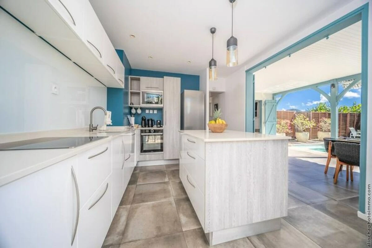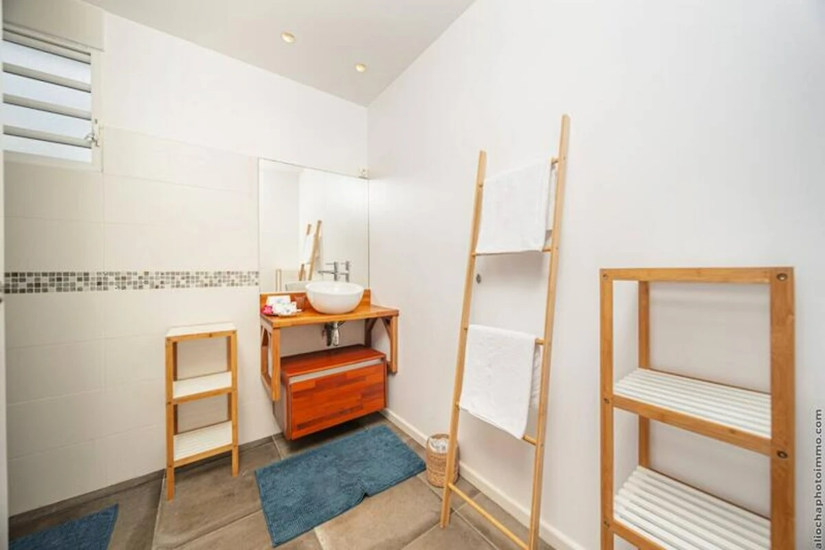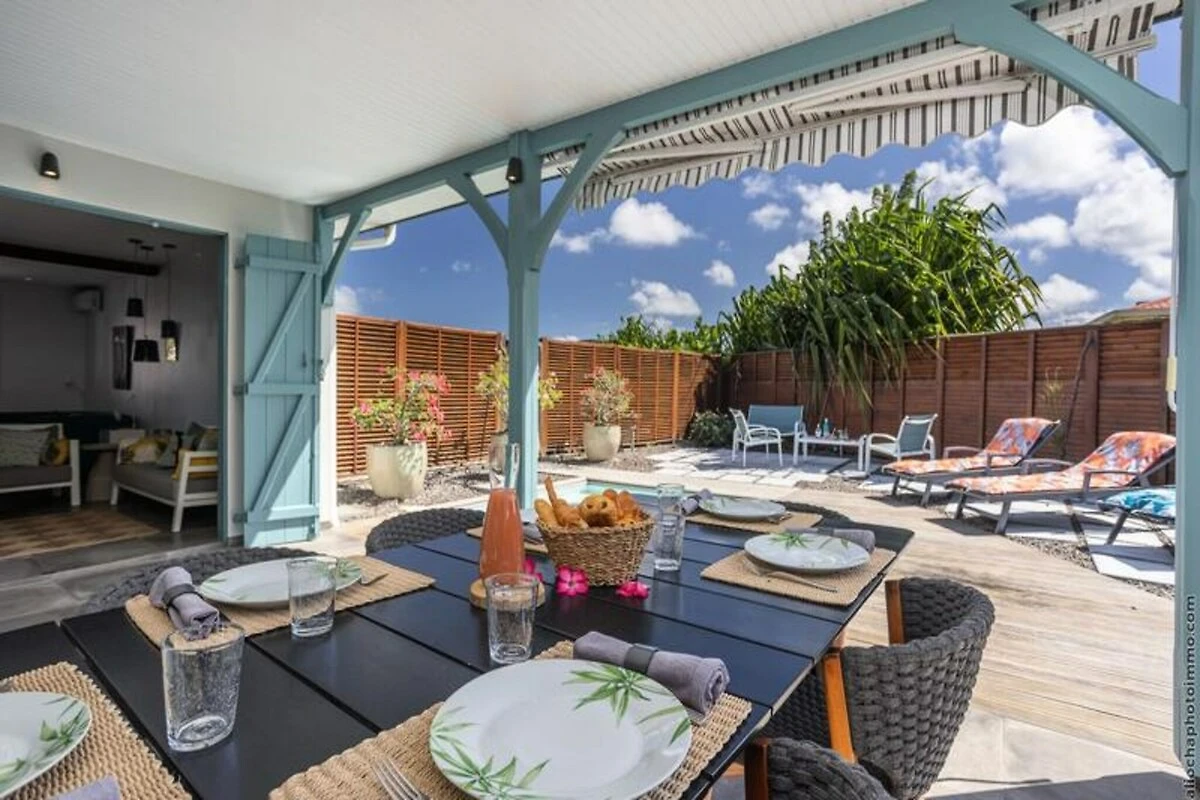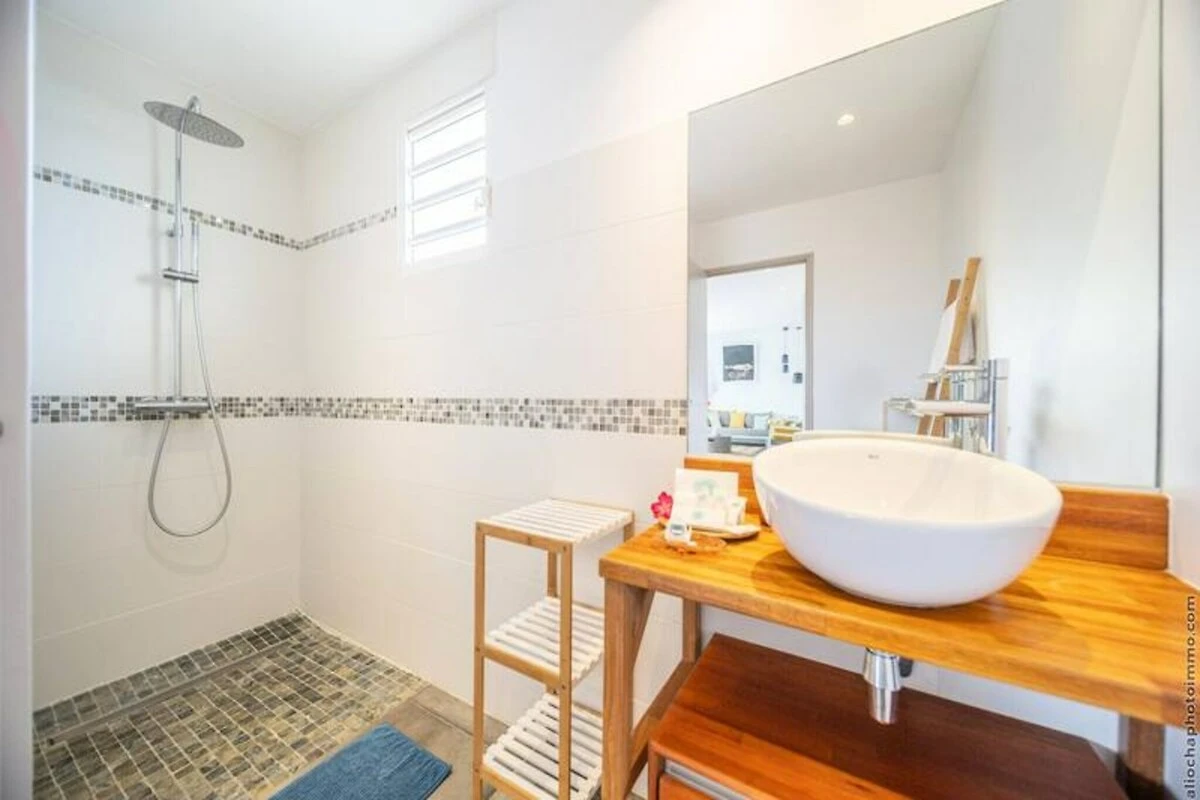 Inmitten des lebendigen Charmes von Sainte-Luces Viertel Gros Raisin lädt die Villa Serenity Sie ein, die perfekte Verbindung von modernem Komfort und kreolischer Authentizität zu erleben. Umgeben von üppigem Grün und nur wenige Schritte vom türkisfarbenen Wasser der berühmten Strände Martiniques entfernt, bietet diese Villa einen ruhigen Rückzugsort, wo Entspannung auf Inselabenteuer trifft. Stellen Sie sich vor, wie Sie auf der Terrasse entspannen, während die sanfte karibische Brise durch den Garten weht und eine Atmosphäre purer Ruhe schafft. \n\nIm Inneren der Villa erwarten Sie klimatisierte Schlafzimmer mit Fernseher, die nach erlebnisreichen Tagen für erholsame Nächte sorgen. Das moderne Badezimmer verfügt über eine ebenerdige Dusche, und der offene Wohnbereich geht nahtlos in die Terrasse über. Besondere Annehmlichkeiten wie eine Außendusche, ein Außen-WC und eine Außendusche tragen zu Ihrem Komfort bei, während drei private Parkplätze zusätzlichen Komfort bieten. Die Villa Serenity wurde speziell für Familien und Freunde konzipiert und bietet mit ihrer durchdachten Raumaufteilung und modernen Ausstattung den idealen Ausgangspunkt für unvergessliche Urlaube.\n\nNur wenige Schritte entfernt liegt der Strand Gros Raisin, bekannt für seinen feinen Sand, das kristallklare Wasser und die sanft wiegenden Kokospalmen. Hier können Sie schwimmen, schnorcheln oder einfach die Sonne genießen. Ganz in der Nähe laden die lebhaften Strandrestaurants von Sainte-Luce mit frischen Meeresfrüchten und kreolischen Spezialitäten zum Verweilen ein – der perfekte Ort für einen Sundowner mit Blick auf das Karibische Meer. Abenteuerlustige können Wassersportarten wie Kajakfahren und Stand-Up-Paddling ausprobieren, malerische Küstenwege erkunden und lokale Märkte besuchen, die Kunsthandwerk und Kultur in Hülle und Fülle bieten.\n\nDie Villa Serenity ist mehr als nur eine Unterkunft – sie ist eine Einladung, in die lebendige Schönheit und die reichen Traditionen Martiniques einzutauchen. Buchen Sie jetzt und lassen Sie sich von der Magie der Insel verzaubern – für immer.
