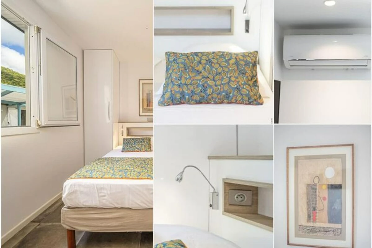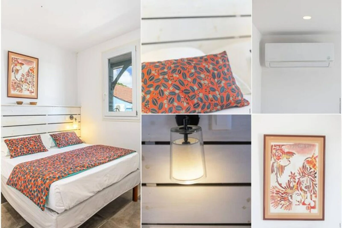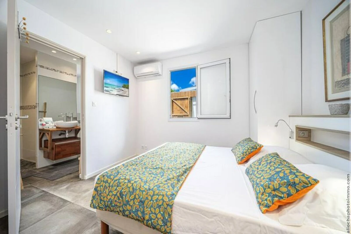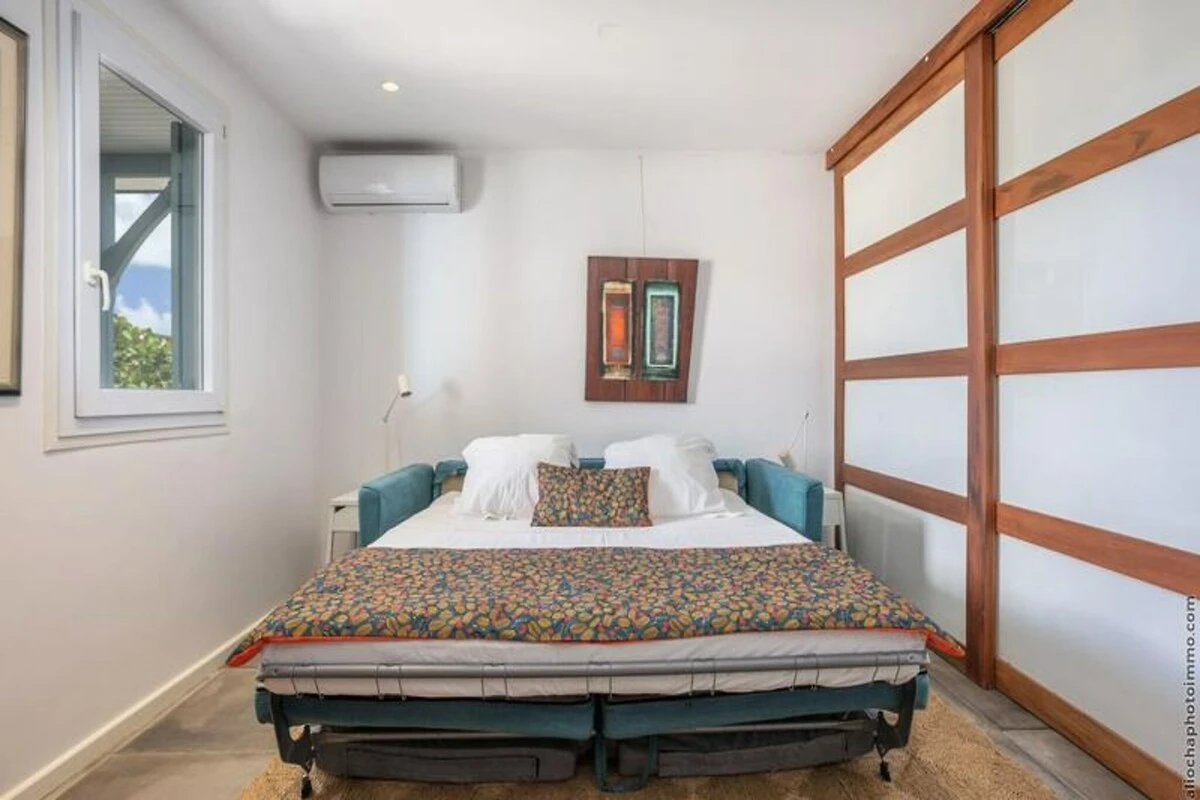 Inmitten des lebendigen Charmes von Sainte-Luces Viertel Gros Raisin lädt die Villa Serenity Sie ein, die perfekte Verbindung von modernem Komfort und kreolischer Authentizität zu erleben. Umgeben von üppigem Grün und nur wenige Schritte vom türkisfarbenen Wasser der berühmten Strände Martiniques entfernt, bietet diese Villa einen ruhigen Rückzugsort, wo Entspannung auf Inselabenteuer trifft. Stellen Sie sich vor, wie Sie auf der Terrasse entspannen, während die sanfte karibische Brise durch den Garten weht und eine Atmosphäre purer Ruhe schafft. \n\nIm Inneren der Villa erwarten Sie klimatisierte Schlafzimmer mit Fernseher, die nach erlebnisreichen Tagen für erholsame Nächte sorgen. Das moderne Badezimmer verfügt über eine ebenerdige Dusche, und der offene Wohnbereich geht nahtlos in die Terrasse über. Besondere Annehmlichkeiten wie eine Außendusche, ein Außen-WC und eine Außendusche tragen zu Ihrem Komfort bei, während drei private Parkplätze zusätzlichen Komfort bieten. Die Villa Serenity wurde speziell für Familien und Freunde konzipiert und bietet mit ihrer durchdachten Raumaufteilung und modernen Ausstattung den idealen Ausgangspunkt für unvergessliche Urlaube.\n\nNur wenige Schritte entfernt liegt der Strand Gros Raisin, bekannt für seinen feinen Sand, das kristallklare Wasser und die sanft wiegenden Kokospalmen. Hier können Sie schwimmen, schnorcheln oder einfach die Sonne genießen. Ganz in der Nähe laden die lebhaften Strandrestaurants von Sainte-Luce mit frischen Meeresfrüchten und kreolischen Spezialitäten zum Verweilen ein – der perfekte Ort für einen Sundowner mit Blick auf das Karibische Meer. Abenteuerlustige können Wassersportarten wie Kajakfahren und Stand-Up-Paddling ausprobieren, malerische Küstenwege erkunden und lokale Märkte besuchen, die Kunsthandwerk und Kultur in Hülle und Fülle bieten.\n\nDie Villa Serenity ist mehr als nur eine Unterkunft – sie ist eine Einladung, in die lebendige Schönheit und die reichen Traditionen Martiniques einzutauchen. Buchen Sie jetzt und lassen Sie sich von der Magie der Insel verzaubern – für immer.