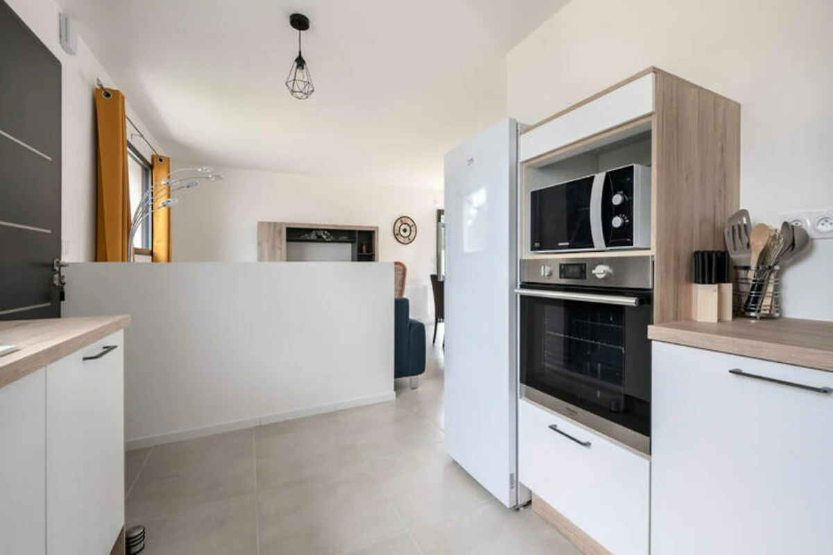 Im idyllischen Küstenort Tour-du-Parc, wo der Rhythmus des Lebens von den Gezeiten und der sanften Meeresbrise bestimmt wird, lädt dieses charmante Haus Sie ein, die Essenz der südlichen Bretagne zu erleben. Umgeben von Marschland, Lagunen und Salzwiesen, ist es ein Paradies für alle, die Ruhe und Naturverbundenheit suchen. Ob Sie mit Familie oder Freunden reisen, dieses moderne Refugium bietet den perfekten Rahmen für einen erholsamen Urlaub.