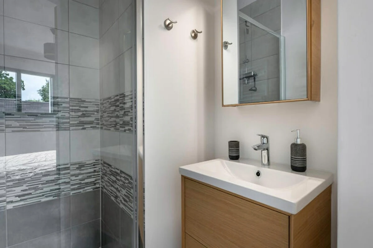 Treten Sie ein und entdecken Sie einen hellen und einladenden Raum, der zum Entspannen und Wohlfühlen einlädt. Das Esszimmer mit seinen großen Erkerfenstern ist lichtdurchflutet und schafft eine warme Atmosphäre für gemeinsame Mahlzeiten. Das farbenfrohe Wohnzimmer ist ideal zum Entspannen bei einem Film, und die voll ausgestattete Küche mit Induktionskochfeld und Geschirrspüler macht die Zubereitung von Mahlzeiten zum Kinderspiel. Das Haus bietet bequem Platz für bis zu acht Gäste in vier Schlafzimmern, darunter eine Master-Suite im Erdgeschoss mit Kingsize-Bett und eigenem Duschbad. Im Obergeschoss sorgen drei gemütliche Schlafzimmer mit Dachschrägen und flexibler Bettenanordnung für erholsame Nächte.