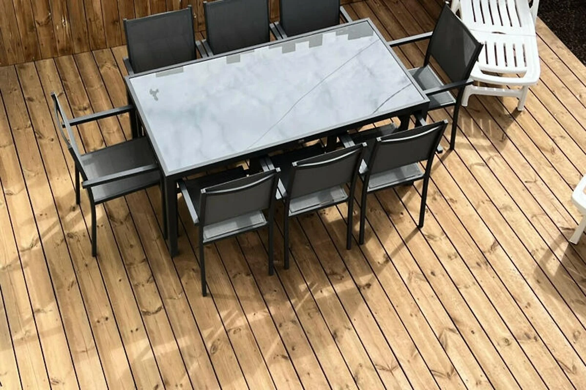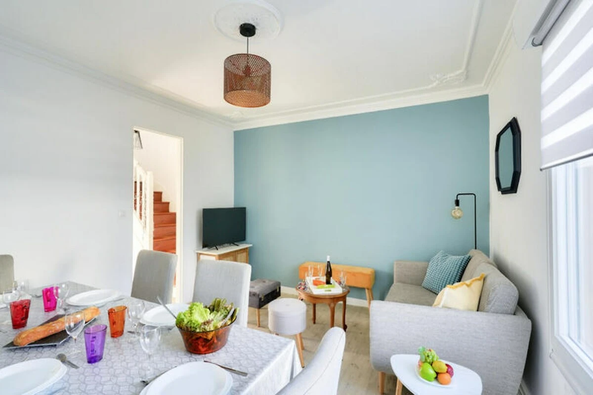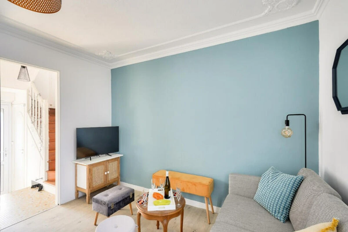 Im Inneren des Hauses herrscht eine friedliche und einladende Atmosphäre. Die Wohn- und Essbereiche, in beruhigenden Grau- und Himmelblautönen gehalten, bieten den perfekten Rahmen für Entspannung oder gesellige Mahlzeiten mit Ihren Lieben. Die separate Küche ist mit modernen Geräten ausgestattet, darunter Gasherd, Kühlschrank, Mikrowelle, Backofen, Gefrierschrank, Geschirrspüler und Kaffeemaschine – alles, was Sie für die Zubereitung köstlicher Mahlzeiten benötigen. Das Haus bietet bequem Platz für bis zu sechs Gäste in drei liebevoll gestalteten Schlafzimmern: ein Hauptschlafzimmer mit abgerundetem Grundriss und Doppelbett, ein zweites Schlafzimmer in zarten Rosatönen mit einem weiteren Doppelbett und ein drittes Schlafzimmer mit zwei Einzelbetten und einer beruhigenden blauen Akzentwand.