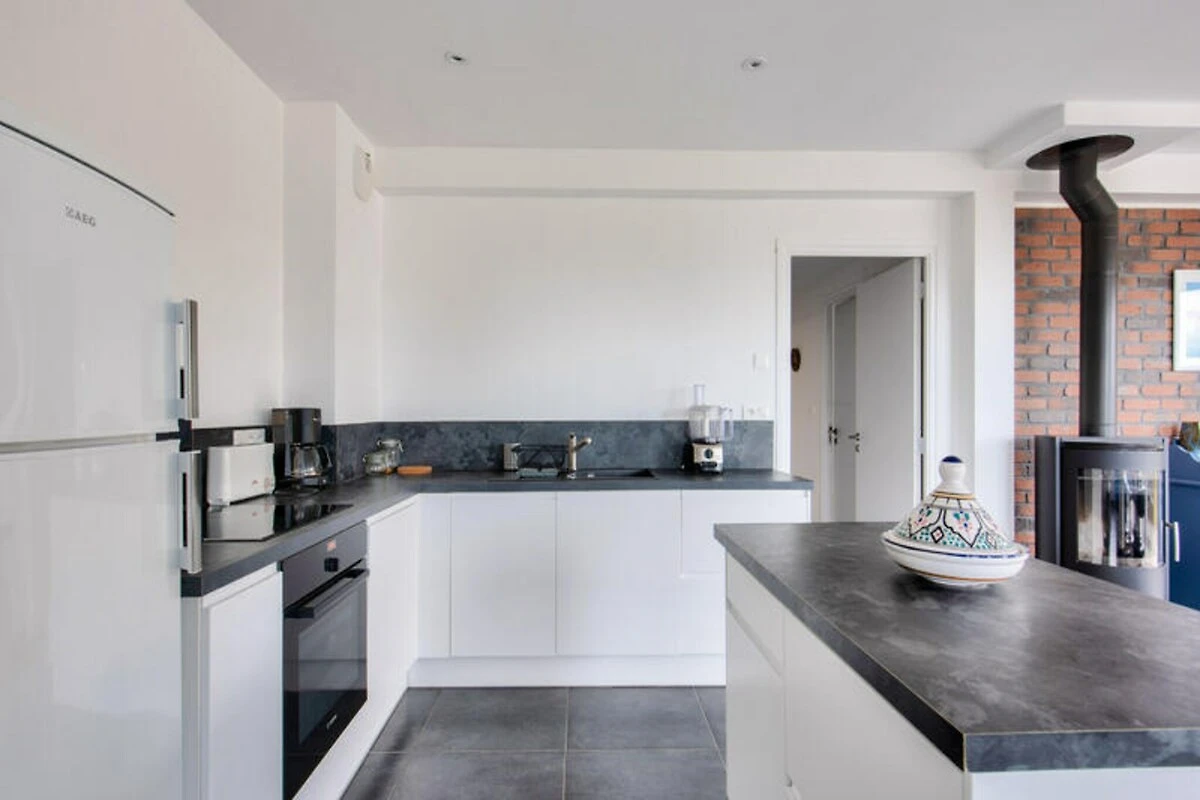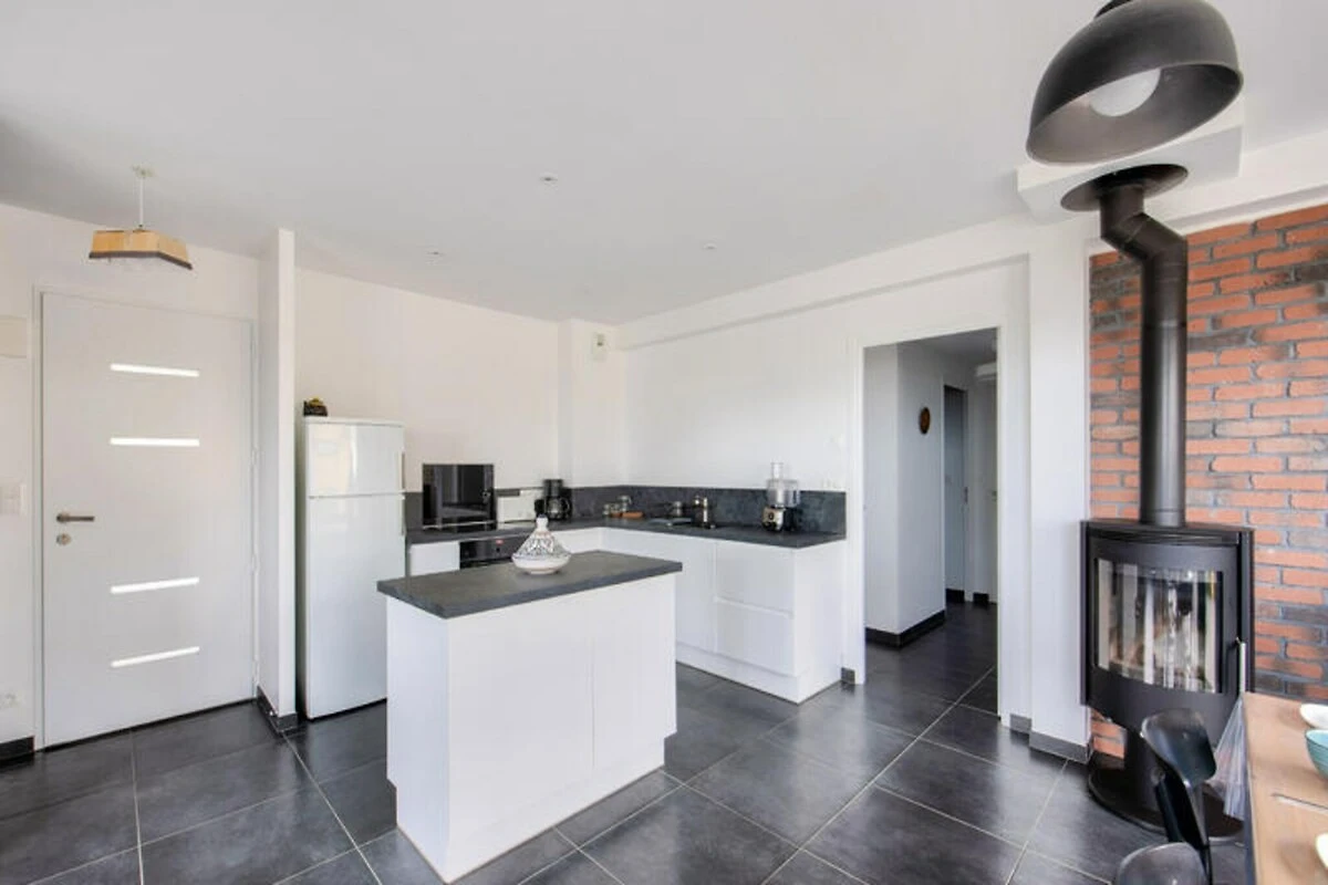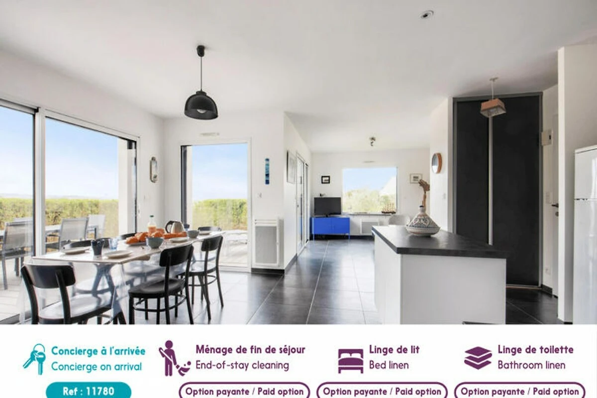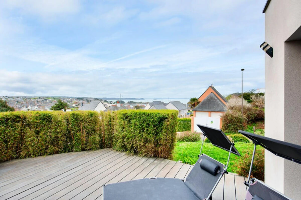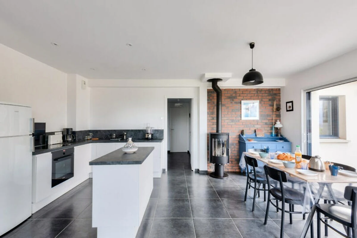 Hoch oben auf den malerischen Hügeln über Erquy lädt dieses moderne Ferienhaus Sie ein, in die natürliche Schönheit der Côtes d'Armor in der Bretagne einzutauchen. Beginnen Sie Ihren Morgen auf der Terrasse mit einer dampfenden Tasse Kaffee, dem Blick auf das glitzernde Meer und der sanften Meeresbrise – der perfekte Start in einen Tag voller Entdeckungen und Entspannung. Hier trifft Ruhe auf Abenteuer und bietet Ihnen eine wahre Auszeit vom Alltag. Treten Sie ein und entdecken Sie einen hellen und luftigen Wohnbereich, der mit Blick auf Komfort und Stil gestaltet wurde. Die großen Fenster durchfluten den Raum mit natürlichem Licht und schaffen eine fließende Verbindung zwischen Innen und Außen. Die offene Küche ist komplett ausgestattet mit allem, was Sie zum Zubereiten köstlicher Mahlzeiten benötigen, vom Induktionskochfeld über den Geschirrspüler bis hin zur Kaffeemaschine. Genießen Sie ein gemeinsames Essen mit der Familie am Esstisch oder entspannen Sie sich im gemütlichen Wohnbereich bei einem Filmabend. Auch die Schlafmöglichkeiten sind einladend: Drei geräumige Schlafzimmer erwarten Sie. Das Schlafzimmer im Erdgeschoss verfügt über zwei Einzelbetten, die zu einem Doppelbett zusammengestellt werden können, und ein eigenes Badezimmer. Im Obergeschoss bieten zwei weitere Schlafzimmer mit Queensize-Betten und eine Galerie erholsame Rückzugsorte nach einem erlebnisreichen Tag.