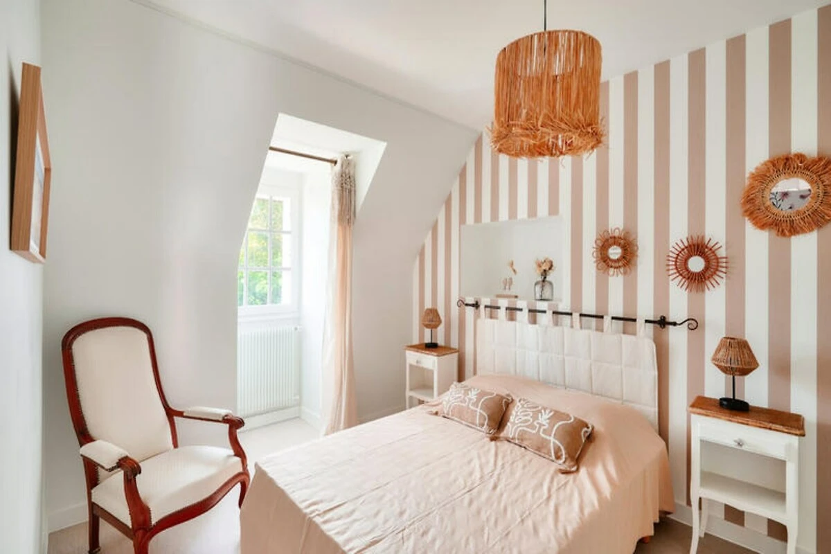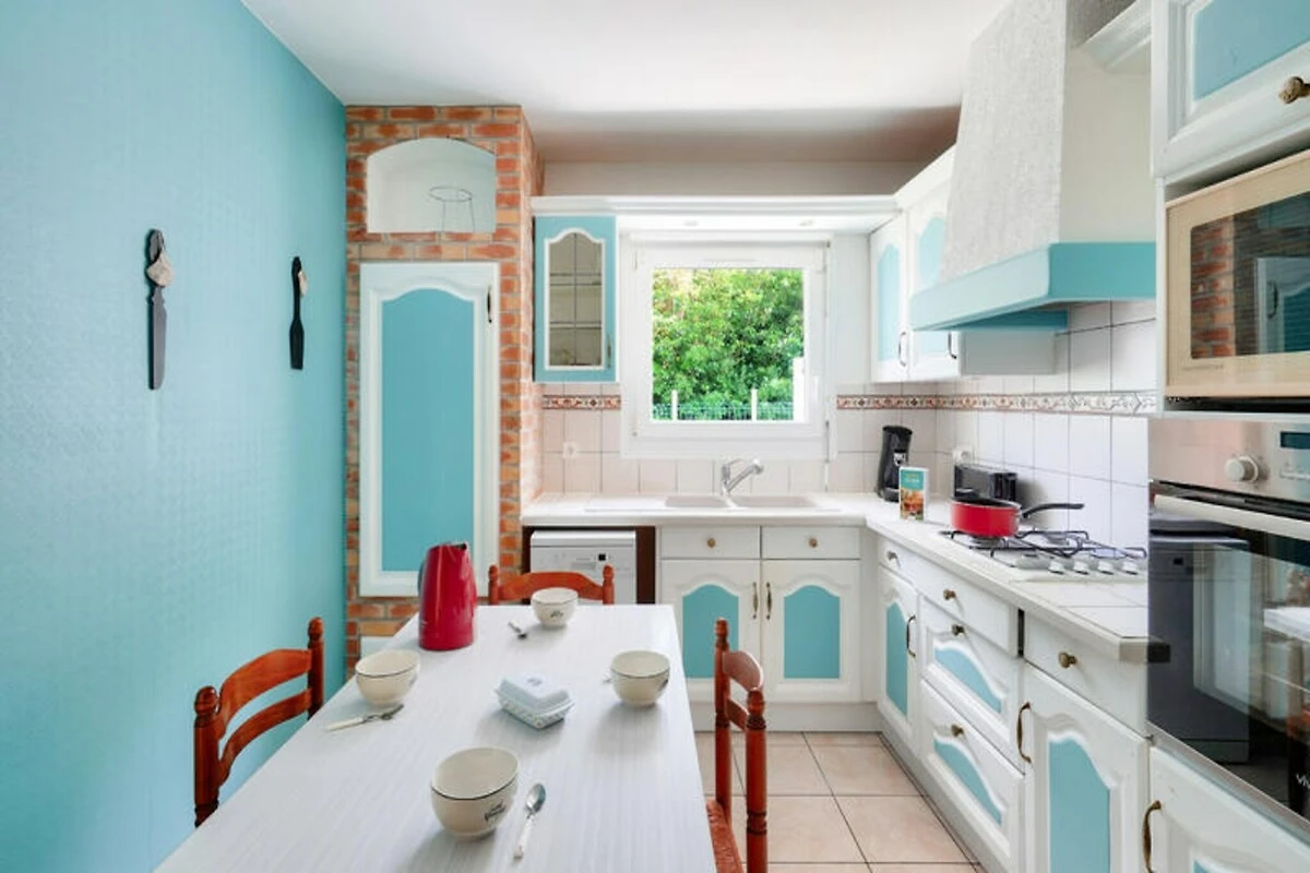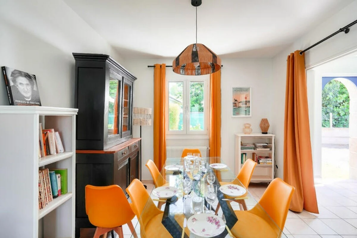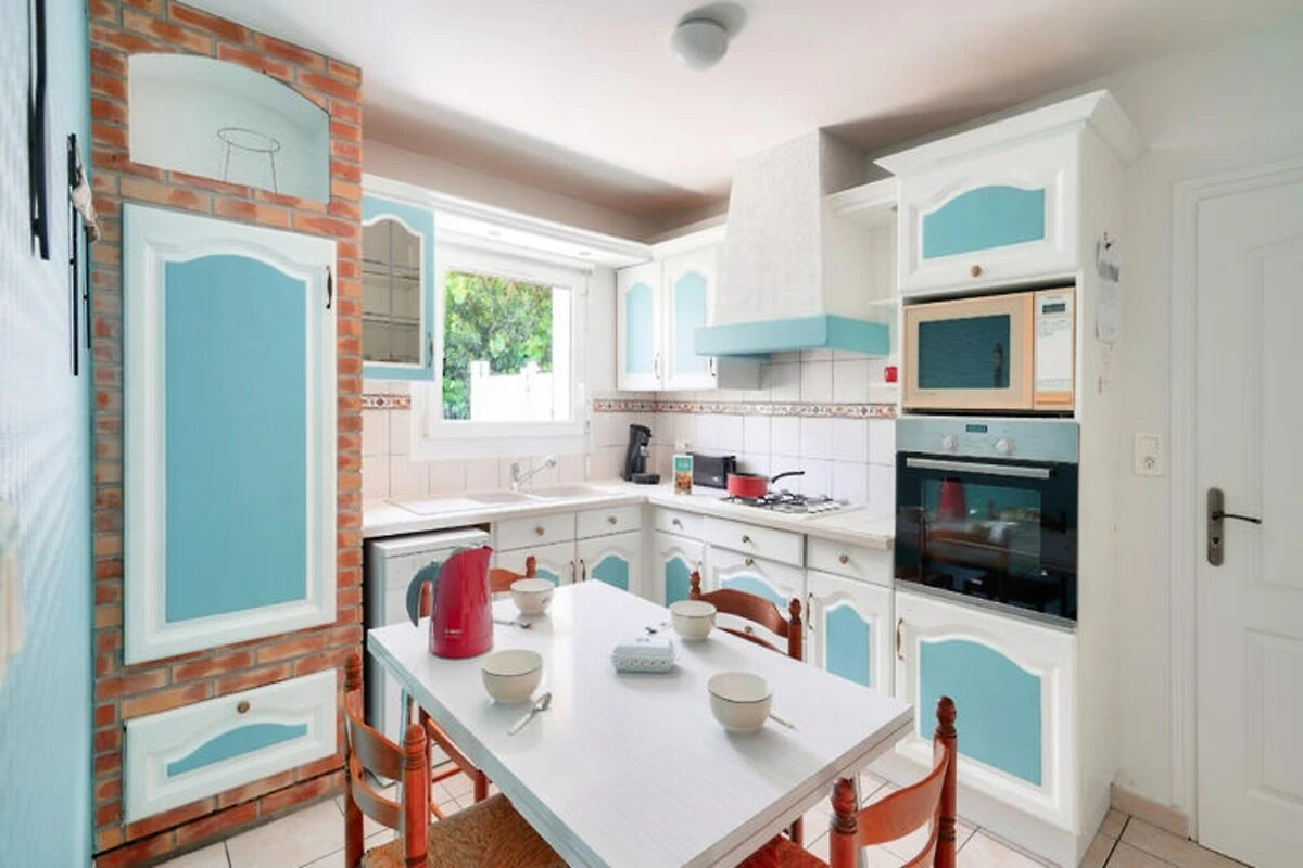 In der malerischen südlichen Region Bigouden bietet dieses charmante Haus in Guilvinec die perfekte Mischung aus bretonischer Tradition und modernem Komfort. Umgeben von einem großen, umzäunten Garten ist es eine Oase der Ruhe, in der Familien grillen, Kinder sicher spielen und Erwachsene in einem Liegestuhl entspannen können. Die lebendige und zugleich behagliche Einrichtung kombiniert restaurierte antike Möbel mit modernen Akzenten und schafft so eine warme und einladende Atmosphäre für Ihren Urlaub. \n\nIm Erdgeschoss befindet sich eine voll ausgestattete Küche mit Gasherd, Backofen, Mikrowelle, Kühlschrank und Geschirrspüler, die die Zubereitung köstlicher Mahlzeiten erleichtert. Starten Sie mit einer Senseo-Kaffeemaschine, Toaster und Wasserkocher in den Tag und genießen Sie Ihre Mahlzeiten am kleinen Küchentisch oder am eleganten Glastisch für sechs Personen. Der gemütliche Fernsehraum mit seinen anthrazitgrauen Möbeln und orangefarbenen Akzenten lädt nach einem erlebnisreichen Tag zum Entspannen ein. Ein separates WC und ein Duschbad vervollständigen das Erdgeschoss.\n\nIm Obergeschoss befinden sich drei wunderschön eingerichtete Schlafzimmer.