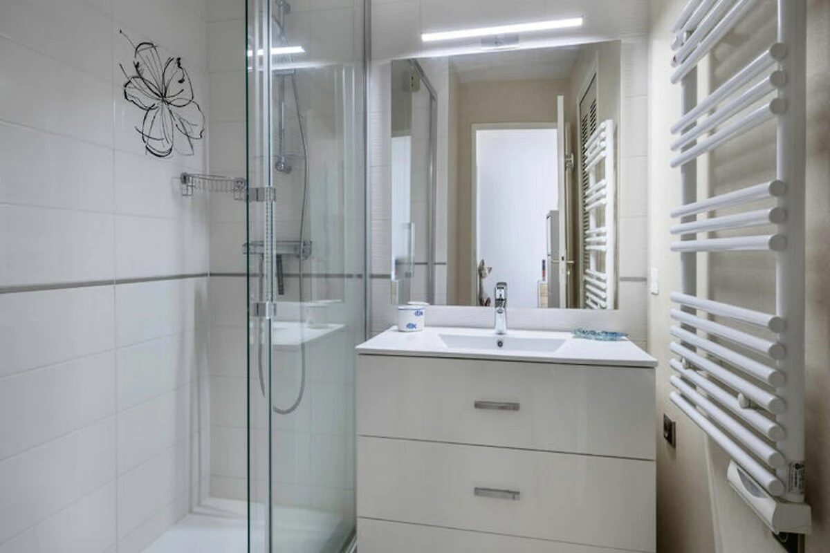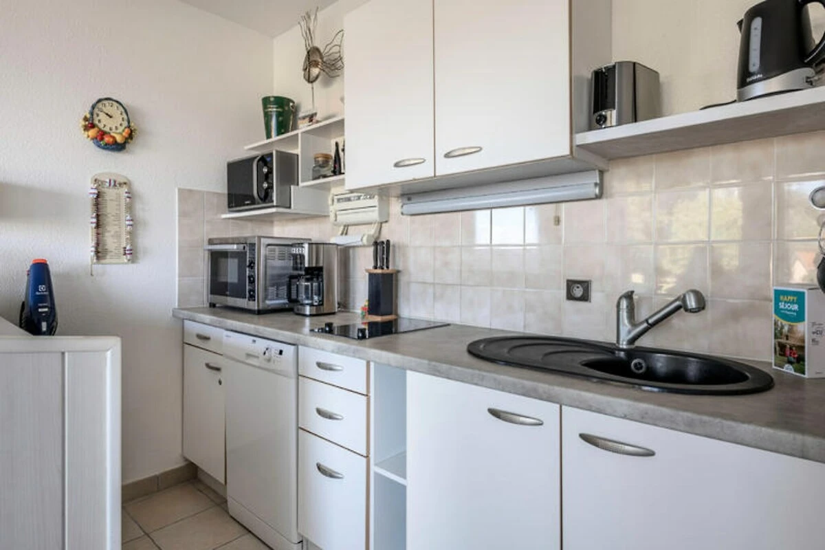 Wo die sanften Wellen der Jadeküste auf den Charme von Pornic treffen, bietet dieses entzückende 45 m² große Apartment in der Residenz Claire Marine einen ruhigen Rückzugsort für Ihren Urlaub. Stellen Sie sich vor, Sie wachen mit dem Rauschen des Meeres auf, treten auf Ihre private 20 m² große Terrasse und atmen die frische Meeresluft ein, während Sie Ihren Morgenkaffee genießen. Mit direktem Zugang zu den Küstenwegen, die zum Strand von Birochère führen, ist diese Unterkunft ein Paradies für Entspannung und Erkundungstouren am Meer. Ob Sie Ruhe oder Abenteuer suchen, die Lage verspricht unvergessliche Momente am Ozean. Das Apartment ist durchdacht gestaltet und bietet Platz für bis zu vier Gäste. Es verfügt über ein gemütliches Schlafzimmer mit Doppelbett (Queensize) und ein bequemes Schlafsofa im Wohnbereich. Die offene Küche ist komplett mit modernen Geräten ausgestattet, darunter ein Cerankochfeld, ein Backofen, ein Kühlschrank, ein Gefrierschrank, eine Mikrowelle und ein Geschirrspüler – alles, was Sie für einen stressfreien Aufenthalt benötigen. Vom Wohn-/Essbereich gelangen Sie auf die Terrasse, wo Sie mit Meerblick entspannen und Ihre Mahlzeiten im Freien genießen können. Zusätzliche Annehmlichkeiten wie Waschmaschine, Föhn und ein privater Parkplatz sorgen für mehr Komfort.