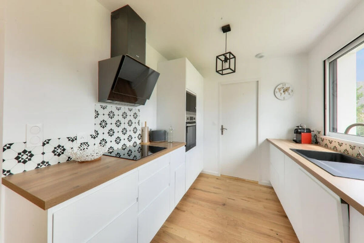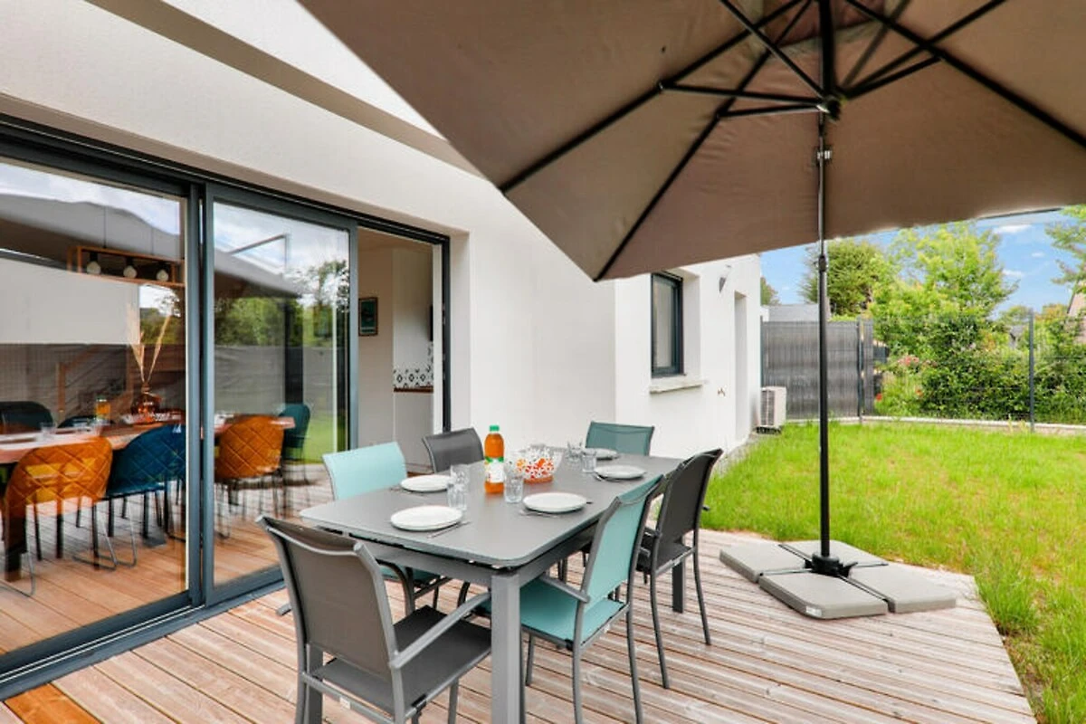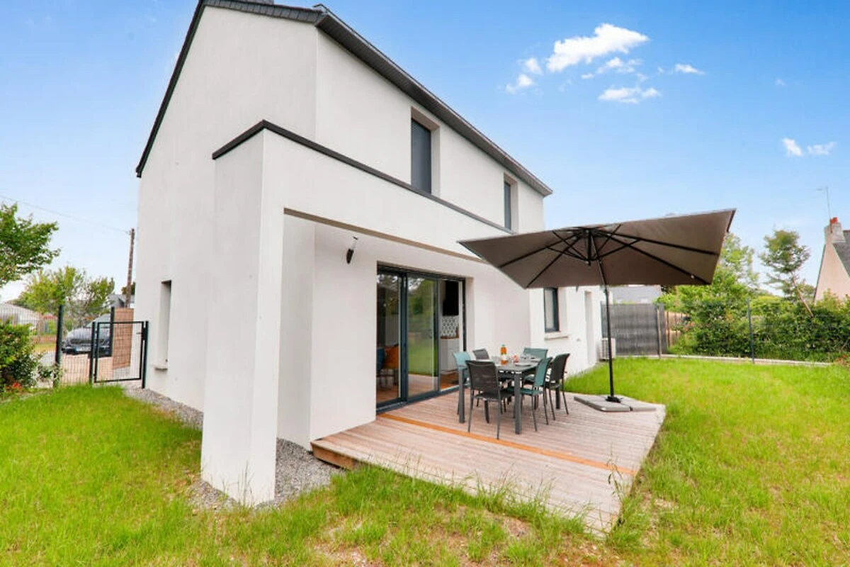 An der sonnenverwöhnten Südküste der Halbinsel Rhuys lädt dieses charmante neue Haus zu einem perfekten Strandurlaub ein. Dank seiner erstklassigen Lage zwischen den ruhigen Stränden Rouvran und Banaster, die beide nur 800 Meter entfernt liegen, bietet dieses Anwesen die ideale Balance zwischen Ruhe und Komfort. Ob Sie die Küste lieber mit dem Fahrrad erkunden oder im Komfort Ihres privaten Gartens entspannen möchten – dieses Haus ist darauf ausgelegt, Ihren Urlaub unvergesslich zu machen.