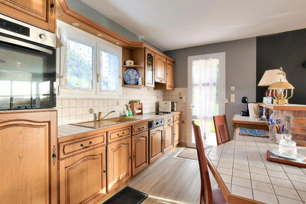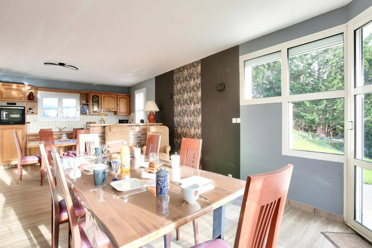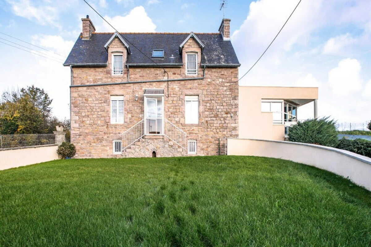Inmitten der idyllischen Landschaft nahe Erquy lädt dieses charmante Haus zum Entspannen ein, nur 2 km von Sandstränden und dem lebhaften Stadtzentrum entfernt. Umgeben von einem weitläufigen, 3000 m² großen Garten ist es der perfekte Rückzugsort für Familien oder Freunde, die Ruhe und Abenteuer an der Küste suchen. Stellen Sie sich Morgenstunden voller frischer Luft und Abende vor, an denen Sie beim Essen durch die großen Panoramafenster den Blick auf die üppige Landschaft genießen. Hier fühlt sich jeder Moment wie ein Hauch frischer Luft an. \n\nDas Haus bietet bequem Platz für bis zu sechs Gäste. Im Erdgeschoss finden Sie eine gemütliche TV-Lounge zum Entspannen, eine voll ausgestattete Küche mit modernen Geräten und einen geräumigen, lichtdurchfluteten Essbereich. Ebenfalls im Erdgeschoss befinden sich ein Schlafzimmer mit Doppelbett und eigenem Bad sowie ein Hauswirtschaftsraum mit Waschmaschine und zusätzlichem Kühlschrank. Im Obergeschoss bieten zwei weitere Schlafzimmer, jeweils mit Doppelbett und eigenem Duschbad, Privatsphäre und Komfort. Dank der großzügigen Parkmöglichkeiten für drei Autos ist Komfort garantiert. Die Lage ist ideal, um die Schätze von Erquy zu entdecken. Schlendern Sie ins Stadtzentrum mit seinen lebhaften Märkten und charmanten Restaurants – alles nur 1 km entfernt. Die Strände von Erquy und Caroual erreichen Sie nach einer kurzen 2-km-Fahrt und bieten feinen Sand und atemberaubende Ausblicke. Golfliebhaber können den nahegelegenen Golfplatz Fréhel genießen, während Wellness-Suchende sich im Spa Marin du Val André verwöhnen lassen können. Naturfreunde finden auf dem Küstenwanderweg GR34 unvergessliche Wanderungen entlang dramatischer Klippen und durch unberührte Landschaften. Ob Sie Entspannung oder Abenteuer suchen – diese Unterkunft bietet die perfekte Kombination aus Komfort, Charme und der Nähe zu den Highlights von Erquy. Lassen Sie sich während Ihres Aufenthalts von der Schönheit der Bretagne verzaubern.