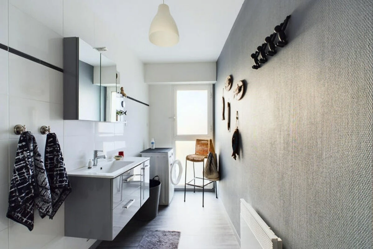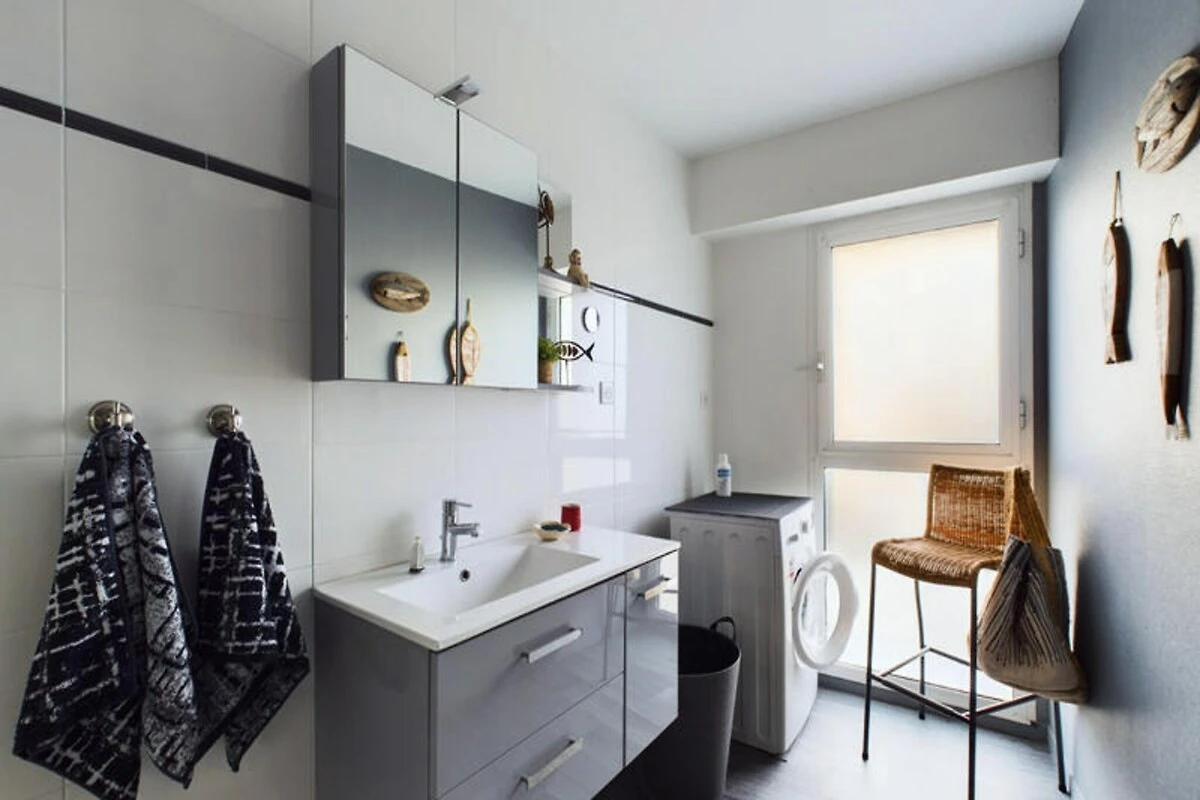 Das 48 m² große Apartment befindet sich im ersten Stock eines Gebäudes mit Aufzug und ist komfortabel und praktisch gestaltet. Das Wohnzimmer verfügt über ein ausziehbares Sofa, einen Fernseher und direkten Zugang zum möblierten Balkon und bietet so einen einladenden Ort zum Entspannen. Die offene Küche ist mit modernen Geräten ausgestattet, darunter ein Induktionskochfeld, ein Backofen, eine Mikrowelle, ein Geschirrspüler und sogar eine Nespresso-Maschine für Ihr morgendliches Kaffeeritual. Ein gemütliches Schlafzimmer mit Doppelbett und ein modernes Badezimmer mit Waschmaschine runden die Ausstattung ab, während ein privater Parkplatz Ihren Aufenthalt zusätzlich erleichtert.
