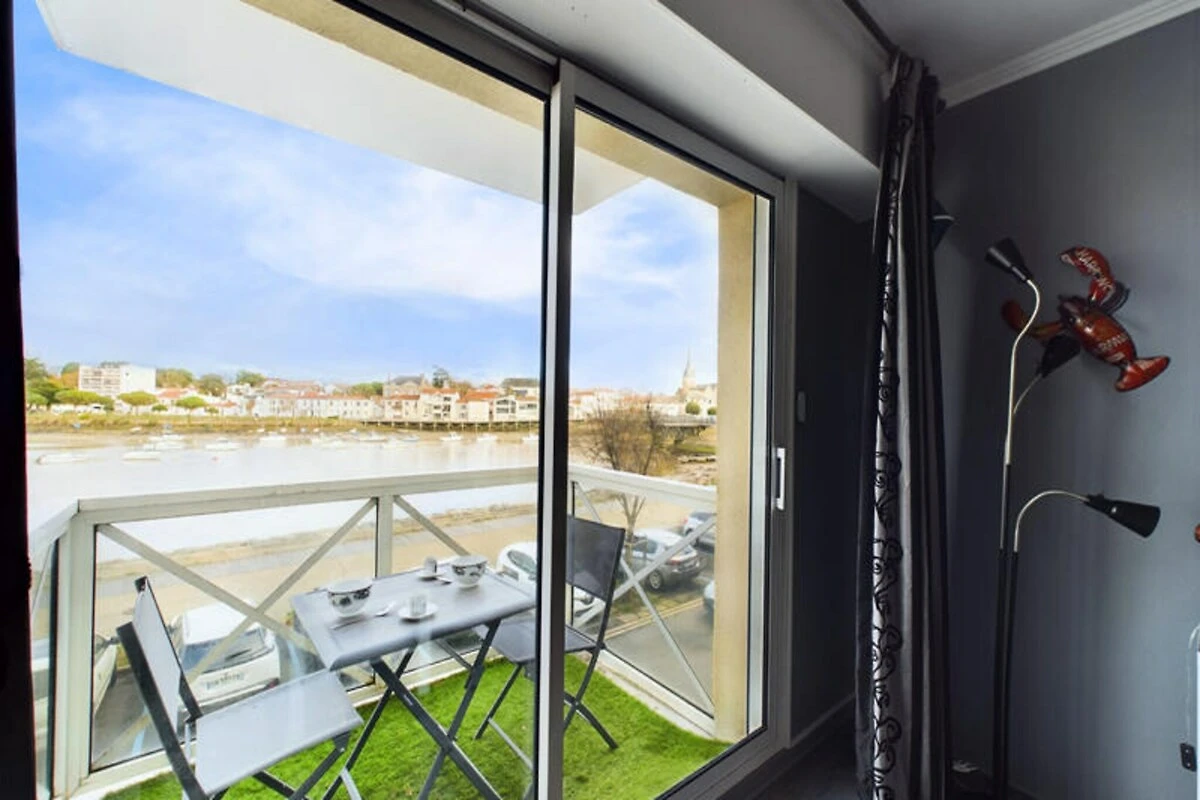 Erwecken Sie Ihre Sinne im malerischen Städtchen Saint-Gilles-Croix-de-Vie, wo das Rauschen der Wellen und der Charme des Hafens einen unvergesslichen Küstenurlaub ermöglichen. Dieses moderne und gemütliche Apartment liegt nur wenige Schritte von den Sandstränden entfernt und lädt Sie ein, Ihren Tag mit einem erfrischenden Morgenspaziergang zu beginnen oder den Sonnenuntergang über dem Atlantik zu genießen. Vom kleinen Balkon mit Blick auf den lebhaften Hafen aus können Sie Ihr Frühstück in der Morgensonne genießen oder bei einem Glas Wein den Sternenhimmel bewundern. Das pulsierende Stadtzentrum, die geschäftigen Märkte und die Restaurants am Wasser sind bequem zu Fuß erreichbar und sorgen dafür, dass jeder Moment von lokalem Flair und maritimem Charme geprägt ist.