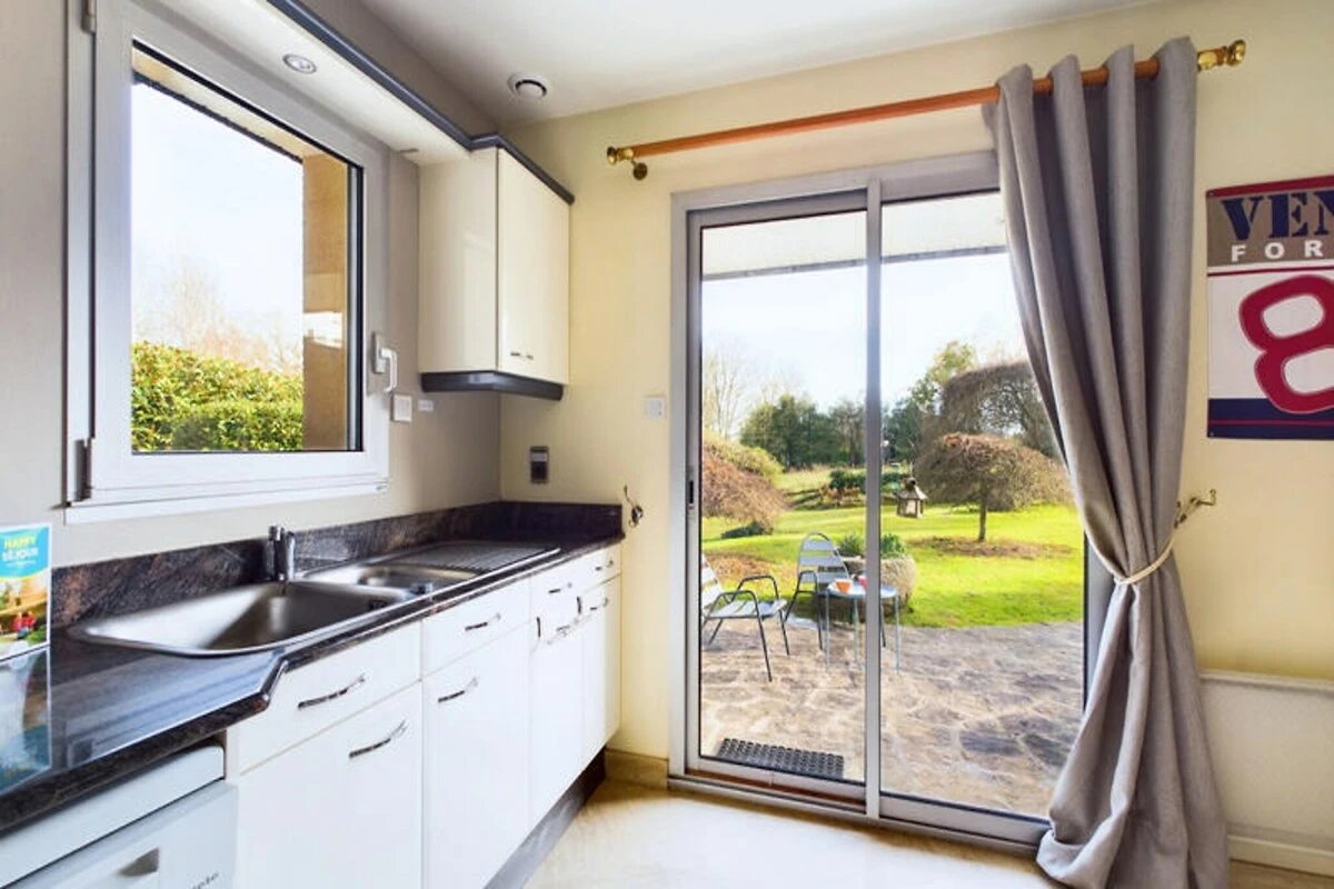 Im Herzen der bretonischen Riviera liegt das charmante Städtchen Fouesnant, eine Oase der Ruhe und des Abenteuers. Dieses geräumige und lichtdurchflutete Haus mit 160 m² Wohnfläche lädt Sie ein, die Bretagne mit Familie oder Freunden von ihrer schönsten Seite zu erleben. In einer ruhigen Gegend gelegen, nur wenige Minuten von den unberührten Stränden von Cap Coz, Beg Meil und Mousterlin entfernt, bietet dieses Haus die perfekte Balance zwischen Entspannung und Naturerlebnissen. Stellen Sie sich vor, wie Sie Ihren Tag mit einem Frühstück auf der großzügigen, 55 m² großen Terrasse inmitten eines üppigen Gartens beginnen und ihn mit einem Aperitif zum Sonnenuntergang und der frischen Meeresluft ausklingen lassen. Für laue Sommerabende im Freien steht Ihnen ein Grill zur Verfügung.