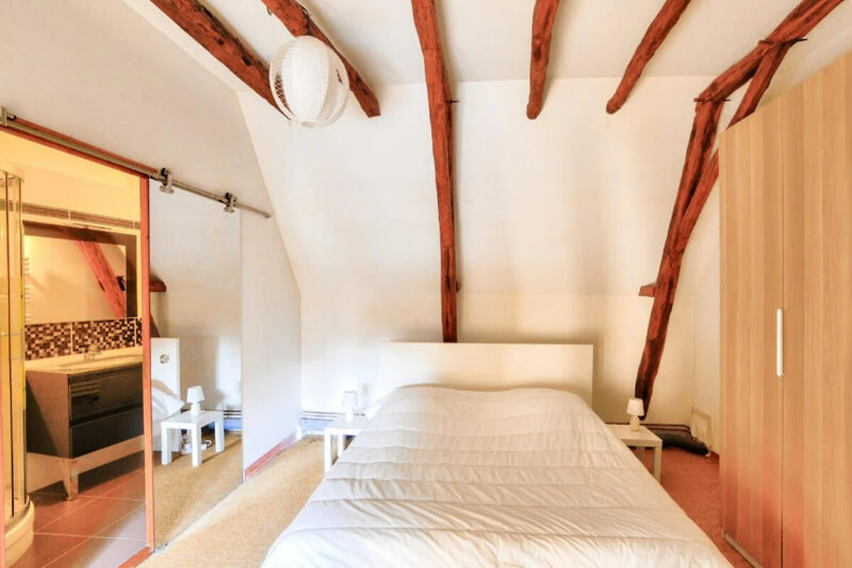 Im Inneren besticht das Haus durch seinen besonderen Charakter mit freiliegenden Holzbalken und einem gemütlichen Kaminofen, die eine warme und einladende Atmosphäre schaffen. Es bietet Platz für bis zu sechs Gäste und verfügt über drei stilvoll eingerichtete Schlafzimmer, darunter eine Suite mit Kingsize-Bett im Dachgeschoss. Die voll ausgestattete Küche ist ein Paradies für jeden Kochbegeisterten, während die großzügigen Wohn- und Essbereiche viel Platz für gesellige Stunden mit Ihren Lieben bieten. Ein besonderes Highlight ist der Dachpool, eine private Oase, in der Sie sich von Mai bis September erfrischen und die Sonne genießen können. Die Terrasse mit Grill lädt zum Essen im Freien und zum Genießen der ruhigen Umgebung ein.