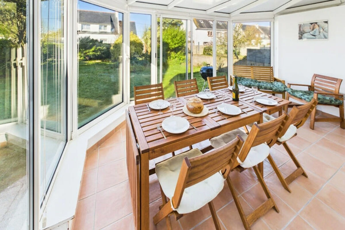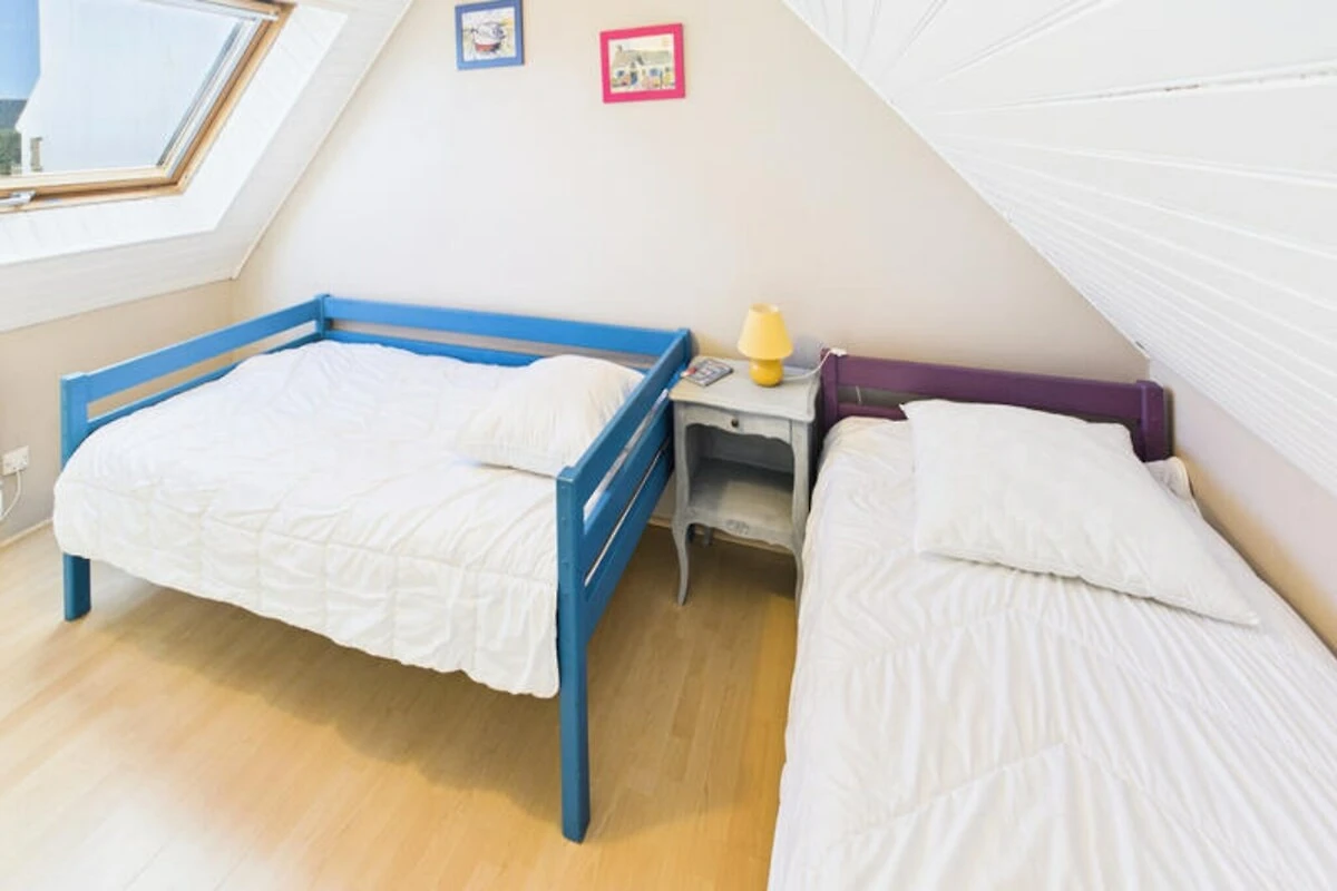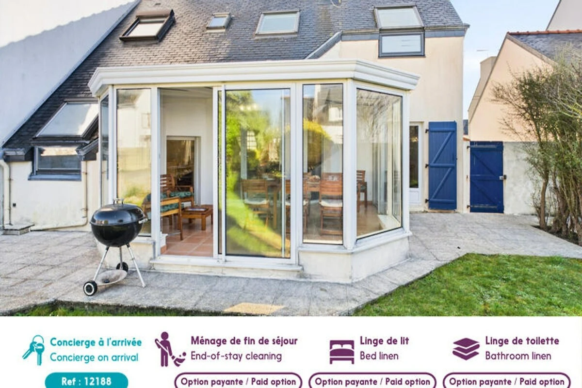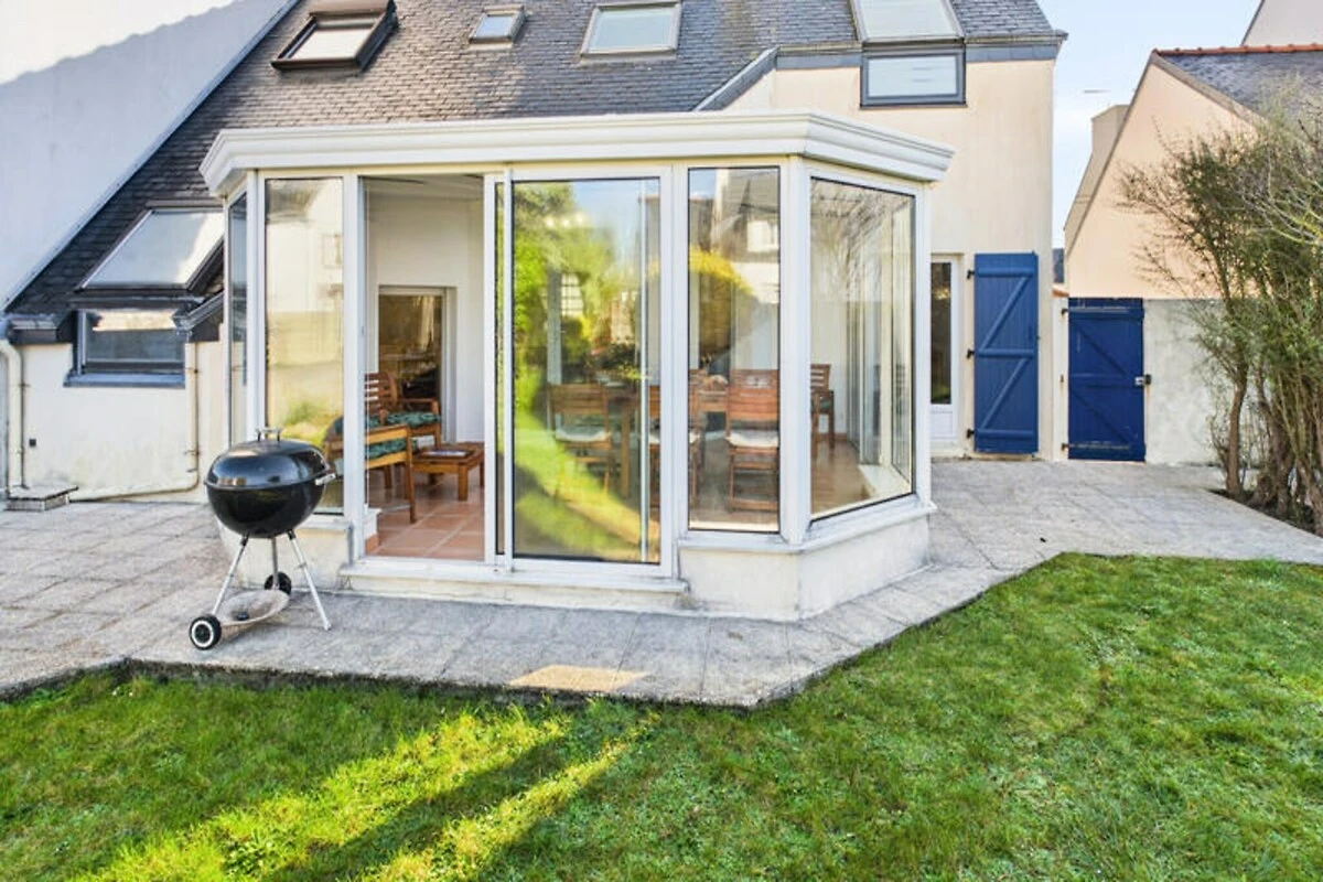 Im Herzen von Guilvinec, einem malerischen bretonischen Fischerdorf, bietet dieses charmante Haus einen ruhigen Rückzugsort nur 400 Meter vom Meer entfernt. Tauchen Sie ein in die authentische maritime Atmosphäre, wo der Rhythmus der Gezeiten und die Rückkehr der Fischerboote einen einzigartigen Küstencharme schaffen. Mit weißen Sandstränden, frischen Meeresfrüchten und Wassersportmöglichkeiten direkt vor der Haustür verspricht dieses Reiseziel eine erholsame Auszeit für Familien oder Freundesgruppen, die die Schönheit der Bretagne entdecken möchten. Der umzäunte Garten mit Gartenmöbeln und Grill lädt zu lauen Sommerabenden unter dem Sternenhimmel ein, während die helle Veranda einen gemütlichen Platz zum Entspannen bietet. Das Haus ist komfortabel und praktisch eingerichtet und bietet Platz für bis zu sechs Gäste. Im Erdgeschoss befinden sich ein großzügiger, offener Wohnbereich mit einer modernen, voll ausgestatteten Küche, ein Esszimmer und ein Wohnzimmer mit Sat-TV. Ein Doppelzimmer, ein Badezimmer mit Dusche und eine Waschküche vervollständigen das Erdgeschoss. Im Obergeschoss befinden sich zwei weitere Schlafzimmer – eines mit zwei Einzelbetten und das andere mit einem Doppelbett und eigenem Duschbad – sowie ein Arbeitsbereich und ein separates WC. Zwei private Parkplätze sorgen für problemlosen Zugang während Ihres gesamten Aufenthalts. \n\nDie Attraktionen von Guilvinec sind nur wenige Schritte entfernt. Spazieren Sie zum Sandstrand Grève Blanche, erkunden Sie das Fischereizentrum Haliotika oder genießen Sie frische Meeresfrüchte in nahegelegenen Restaurants wie Le Poisson d’Avril und An Atoll. Unternehmen Sie einen Ausflug und entdecken Sie den berühmten Leuchtturm Eckmühl, die lebhafte Stadt Pont-l’Abbé oder den Wasserpark Aquasud. Ob Sie Küstenwanderungen unternehmen oder den Fang des Tages probieren möchten, Guilvinec bietet Ihnen ein authentisches bretonisches Erlebnis. \n\nLassen Sie sich vom Charme dieses Fischerdorfes und dem Komfort dieses charmanten Hauses verzaubern und unvergessliche Erinnerungen an Ihren Bretonenurlaub schaffen.