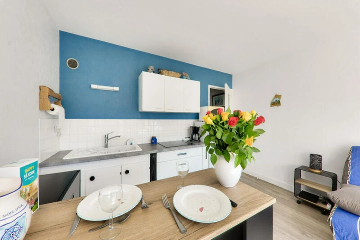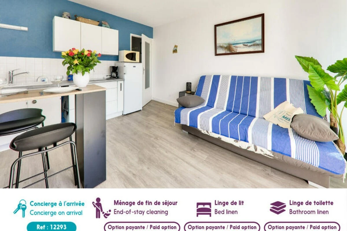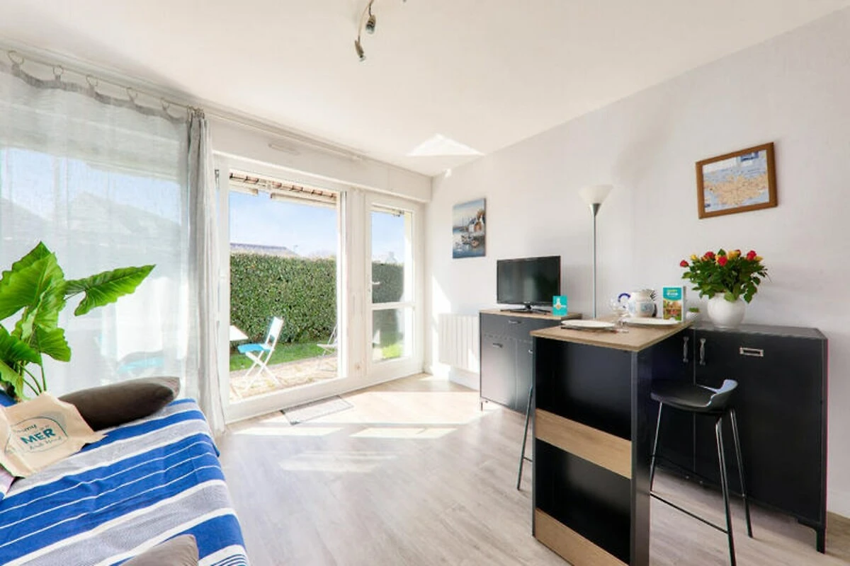Auf der bezaubernden Halbinsel Rhuys, wo Land und Meer in einer Symphonie natürlicher Schönheit aufeinandertreffen, lädt dieses charmante Apartment im Viertel Saint-Jacques dazu ein, in den authentischen bretonischen Lebensstil einzutauchen. Nur 100 Meter vom Sandstrand Port de Saint Jacques entfernt, bietet dieses gemütliche Refugium den perfekten Rahmen für einen romantischen Kurzurlaub oder eine erholsame Auszeit. Erwachen Sie zum sanften Rhythmus der Gezeiten, genießen Sie morgendliche Spaziergänge entlang der Küste und lassen Sie sich von der Meeresbrise beleben. Die sonnige Terrasse ist Ihre private Oase, ideal zum Entspannen nach einem Tag voller Entdeckungen versteckter Buchten und malerischer Küstenwege. \n\nIm Inneren des Apartments erwartet Sie ein durchdacht gestalteter, offener Wohnbereich mit fließendem Übergang zur Terrasse. Eine voll ausgestattete Küche mit modernen Geräten wie Kühlschrank, Backofen, Mikrowelle und Geschirrspüler bietet Ihnen alles, was Sie für die Zubereitung köstlicher Mahlzeiten benötigen. Der Essbereich, ideal für zwei Personen, geht in ein gemütliches Wohnzimmer mit einem Sofa über, das sich in ein bequemes Bett für erholsame Nächte verwandeln lässt. Ein elegantes Badezimmer mit ebenerdiger Dusche rundet den Raum ab und bietet Stil und Komfort. \n\nAbseits der Wohnung erwartet Sie eine Fülle an Attraktionen. Vom mittelalterlichen Château de Suscinio bis zum nahegelegenen Hafenzentrum bietet jede Ecke von Sarzeau einzigartige Erlebnisse. Genießen Sie die lokale Küche in den Restaurants der Umgebung oder erkunden Sie die lebhaften Märkte und malerischen Häfen, die den Charme der Region ausmachen. Dank privatem Parkplatz und WLAN ist ein reibungsloser und entspannter Aufenthalt garantiert. \n\nOb Sie sich vom historischen Reiz der Bretagne oder ihren atemberaubenden Naturlandschaften angezogen fühlen – diese Wohnung ist Ihr Tor zu unvergesslichen Erinnerungen auf der Halbinsel Rhuys.
