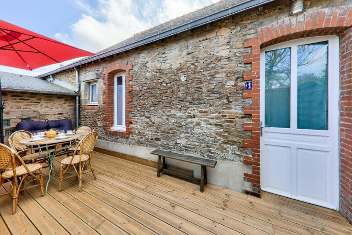 Im Herzen der bezaubernden Halbinsel Rhuys lädt dieses gemütliche, ebenerdige Haus in Sarzeau Sie ein, den Charme des bretonischen Küstenlebensstils zu erleben. Nur wenige Schritte vom Ortskern entfernt finden Sie lebhafte Märkte, malerische Läden und charmante Restaurants, die die Essenz der lokalen Kultur widerspiegeln. Nach einem Tag an der atemberaubenden Küste oder entspannten Stunden an den nur 4 km entfernten Sandstränden können Sie auf der privaten Holzterrasse die Seele baumeln lassen – der perfekte Ort, um Momente mit Ihren Lieben unter dem sanften bretonischen Himmel zu genießen. Ob Sie Abenteuer oder Ruhe suchen, dieses Haus bietet die ideale Kombination aus beidem. Treten Sie ein und entdecken Sie ein warmes, durchdacht gestaltetes Interieur, das Komfort und Funktionalität vereint. Das geräumige Wohnzimmer geht in eine voll ausgestattete Küche über, die mit modernen Geräten wie Kühlschrank, Backofen, Mikrowelle und Geschirrspüler ausgestattet ist und so die Zubereitung von Mahlzeiten zum Kinderspiel macht. Der Essbereich bietet Platz für vier Personen, während das einladende Wohnzimmer mit Sofa und Fernseher ideal für gemütliche Abende ist. Das Sofa lässt sich im Handumdrehen in zwei Einzelbetten verwandeln und bietet so flexible Schlafmöglichkeiten. Am anderen Ende des Hauses erwartet Sie ein ruhiges Schlafzimmer mit einem Queensize-Bett für erholsame Nächte. Ein modernes Badezimmer mit Dusche und Waschmaschine rundet dieses charmante Refugium ab.\n\nDie Unterkunft ist ideal gelegen und bietet bequemen Zugang zu den Sehenswürdigkeiten der Umgebung. Der Strand von Roaliguen ist nur 4 km entfernt, während der Strand von Suscinio mit seiner imposanten mittelalterlichen Burg in 6 km Entfernung zu finden ist. Golfliebhaber können den nahegelegenen Golfplatz Bluegreen Rhuys Kerver genießen, und Familien werden die Parks Popcorn Labyrinth und Celt’Aventures lieben. Für einen kulturellen Ausflug ist die historische Stadt Vannes nur 26 km entfernt. Ob Sie auf malerischen Radwegen unterwegs sind oder die Küste erkunden – dieser Ort ist der ideale Ausgangspunkt für unvergessliche Erlebnisse.\n\nMit privaten Parkplätzen und einem sicheren Fahrradabstellraum ist diese Ferienwohnung auf Komfort und Entspannung ausgelegt. Tauchen Sie ein in den authentischen bretonischen Charme von Sarzeau, wo Küstenlandschaft auf reiche Geschichte trifft, und schaffen Sie bleibende Erinnerungen in dieser idyllischen Umgebung.