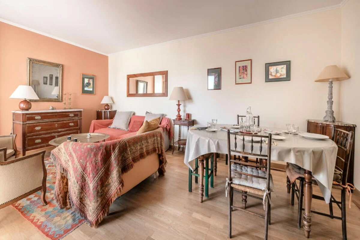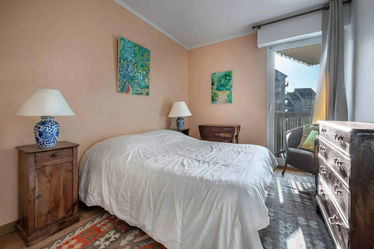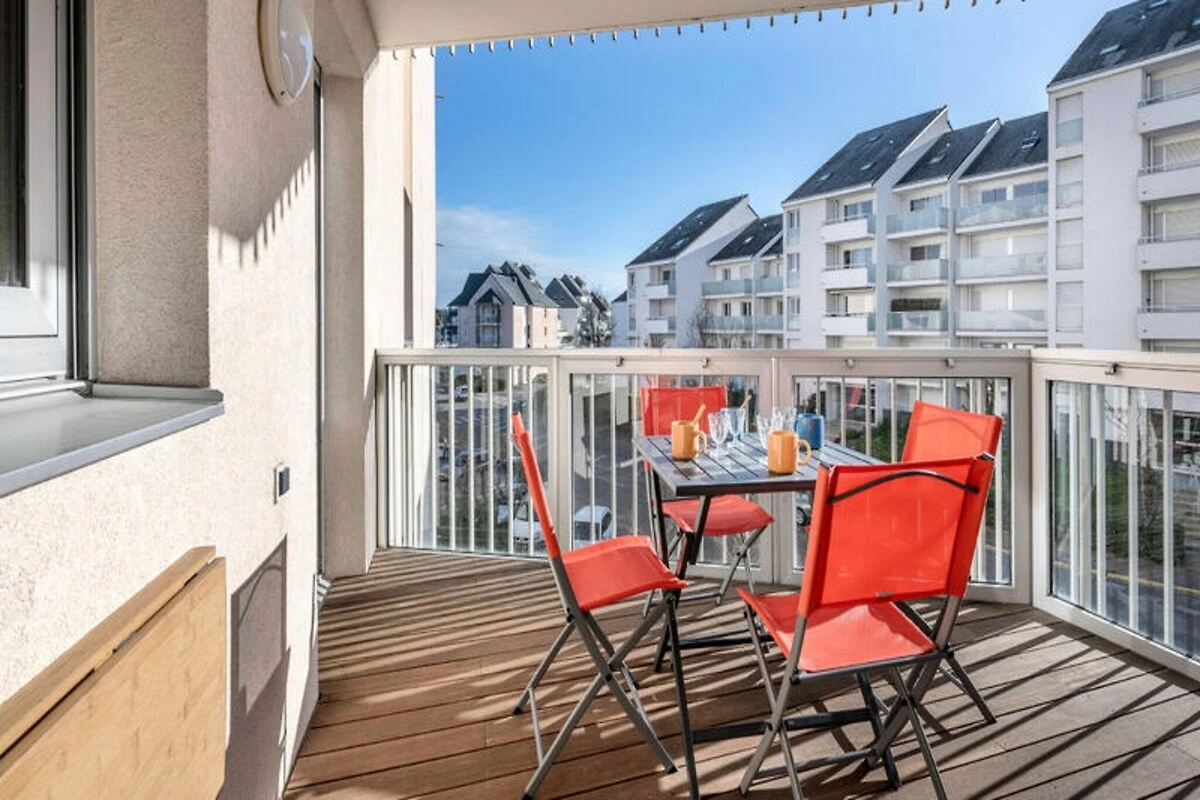 Mitten im malerischen Städtchen Le Pouliguen bietet dieses charmante Apartment einen traumhaften Rückzugsort für bis zu vier Gäste. Nur wenige Schritte vom goldenen Sandstrand von Benoît und dem lebhaften Wochenmarkt entfernt, lädt diese Unterkunft dazu ein, in den entspannten Küstenlebensstil der Bretagne einzutauchen. Ob Sie ein gemütliches Frühstück auf der sonnigen Terrasse genießen oder nach einem erlebnisreichen Tag am Meer bei einem Aperitif entspannen – dieses Apartment bietet den perfekten Rahmen für einen unvergesslichen Urlaub. \n\nIm Inneren erwartet Sie ein heller und einladender Wohnbereich mit einer gemütlichen Lounge, bequemen Sofas, einem Fernseher und direktem Zugang zur Terrasse. Der angrenzende Essbereich eignet sich ideal für gemeinsame Mahlzeiten, während die separate, voll ausgestattete Küche alles bietet, was Sie zum Zubereiten köstlicher Gerichte benötigen – von der Senseo-Kaffeemaschine über den Backofen bis hin zur Mikrowelle. Die beiden Doppelzimmer, eines davon mit Schreibtisch, bieten erholsame Rückzugsorte. Ein modernes Duschbad und ein separates WC runden das Angebot ab und sorgen für Komfort für alle Gäste. Nur 900 Meter vom Strand Benoît und 1 Kilometer vom Strand Nau entfernt, ist dieses Apartment der ideale Ausgangspunkt, um Le Pouliguen von seiner schönsten Seite zu entdecken. Schlendern Sie über den lebhaften Markt, probieren Sie lokale Köstlichkeiten oder radeln Sie entlang der malerischen Küste zum benachbarten Badeort La Baule. Für etwas Entspannung sorgt das nur 2 Kilometer entfernte Thalasso & Spa Barrière La Baule. Auch die historischen Stadtmauern von Guérande und die idyllischen Marschlandschaften des Regionalen Naturparks Brière sind bequem zu erreichen. Mit privatem Garagenstellplatz, WLAN und der Möglichkeit, Haustiere mitzubringen, vereint dieses Apartment Komfort und Bequemlichkeit in einem der bezauberndsten Badeorte Frankreichs. Lassen Sie sich vom Charme von Le Pouliguen und seiner Umgebung verzaubern und erleben Sie unvergessliche Momente bei Ihrem nächsten Urlaub.