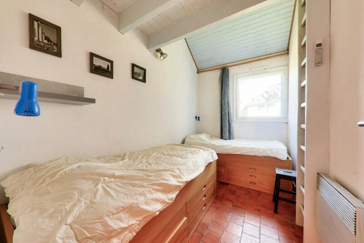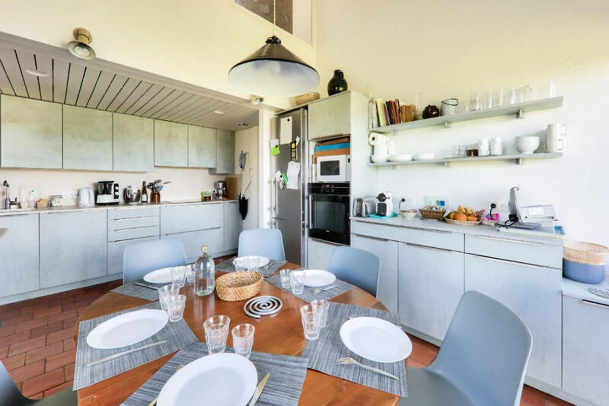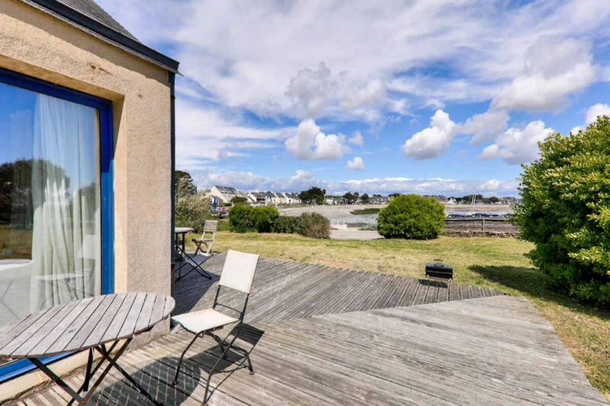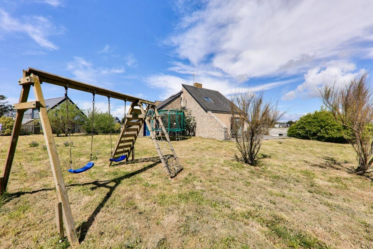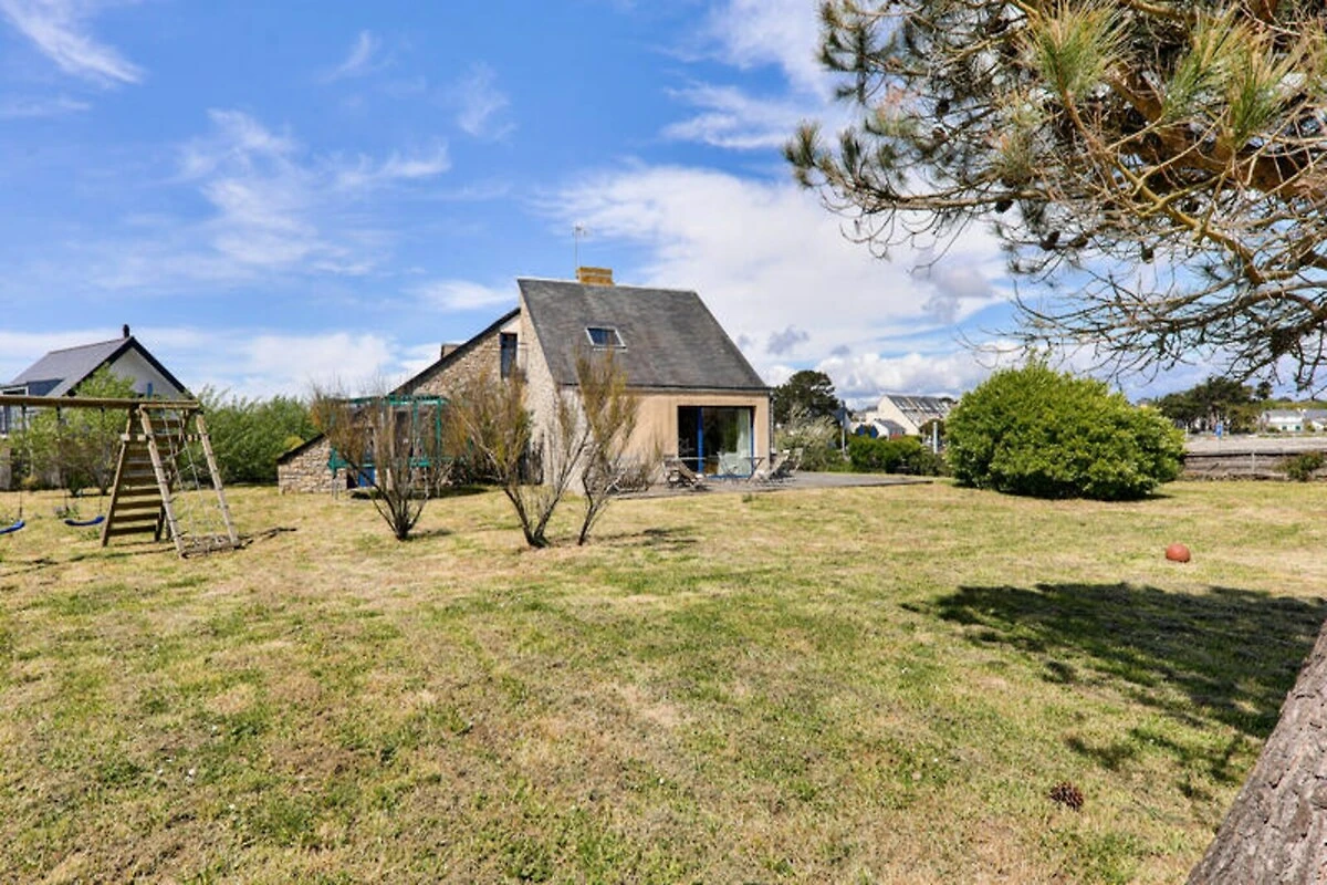 Erleben Sie die friedvolle Schönheit der Halbinsel Rhuys, wo dieses traumhafte Familienhaus einen atemberaubenden Blick auf den Hafen von Saint-Jacques bietet. Gleich gegenüber lädt der goldene Sandstrand mit seinem ruhigen Wasser zum Entspannen ein. Das Haus ist ideal für Familien oder Gruppen bis zu 11 Personen und vereint Komfort und Bequemlichkeit mit einem großzügigen Garten, der über einen Kinderspielplatz verfügt, und einer großen Terrasse mit Grill für unvergessliche Sommerabende. Ob Sie Abenteuer oder Ruhe suchen – die nahegelegenen Küstenwege und Wassersportmöglichkeiten bieten unzählige Möglichkeiten zur Erkundung. Genießen Sie lokale Köstlichkeiten wie frische Austern aus dem Golf, bretonische Crêpes und handwerklich hergestellten Apfelwein. Treten Sie ein und entdecken Sie einen hellen und einladenden Wohnbereich mit direktem Zugang zur Terrasse. Die separate, voll ausgestattete Küche bietet alles, was Sie zum unkomplizierten Kochen benötigen, inklusive moderner Geräte wie Geschirrspüler, Backofen und Nespresso-Maschine. Versammeln Sie sich am ausziehbaren Esstisch für bis zu 11 Personen und entspannen Sie später im gemütlichen Wohnzimmer mit bequemen Sofas und Fernseher. Im Erdgeschoss befinden sich vier geschmackvoll eingerichtete Schlafzimmer, darunter zwei Doppelzimmer mit eigenem Bad sowie Einzel- und Zweibettzimmer. Im Obergeschoss bietet die Galerie eine ruhige Bibliothek und einen Arbeitsbereich sowie weitere Schlafzimmer für Ihre Gruppe.