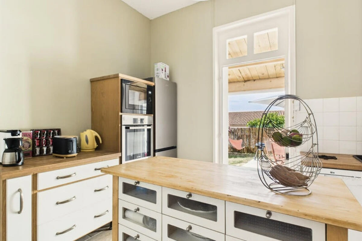 Nur 2 km vom Hauptstrand und 700 m vom Ortszentrum entfernt, erreichen Sie von diesem Haus aus alles, was Sie brauchen, bequem zu Fuß oder mit dem Fahrrad. Erkunden Sie den charmanten Fischerhafen, radeln Sie auf malerischen Wegen oder genießen Sie lokale Köstlichkeiten wie fangfrische Sardinen. Für Tagesausflüge bietet die Region Attraktionen wie den Wasserpark Atlantic Toboggan, den Golfplatz Bluegreen und den bekannten Freizeitpark Puy du Fou. Mit Privatparkplatz, WLAN und Concierge-Service ist Ihr Aufenthalt auf Komfort und Bequemlichkeit ausgelegt. Kleine Haustiere sind willkommen, was dieses Haus zum idealen Rückzugsort für die ganze Familie macht.