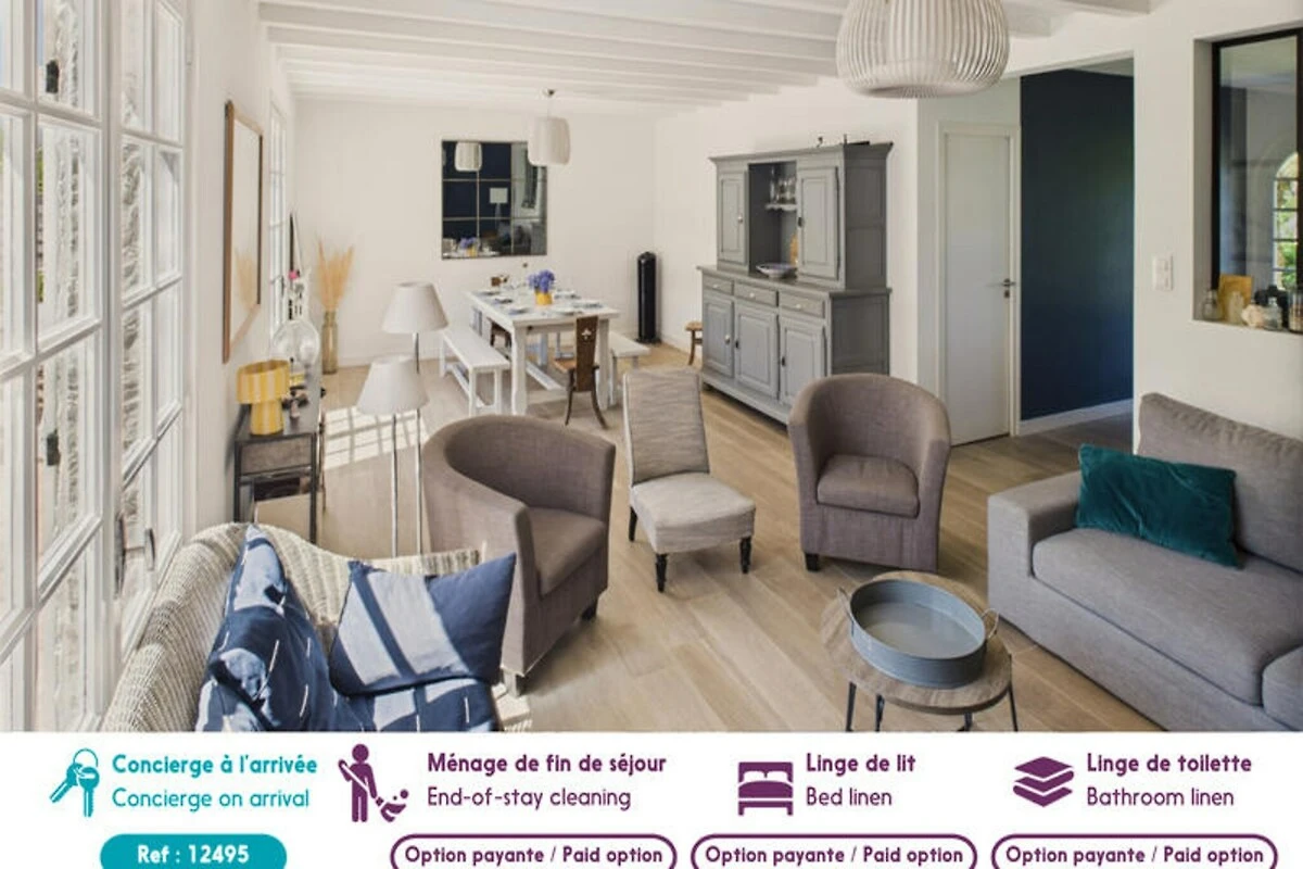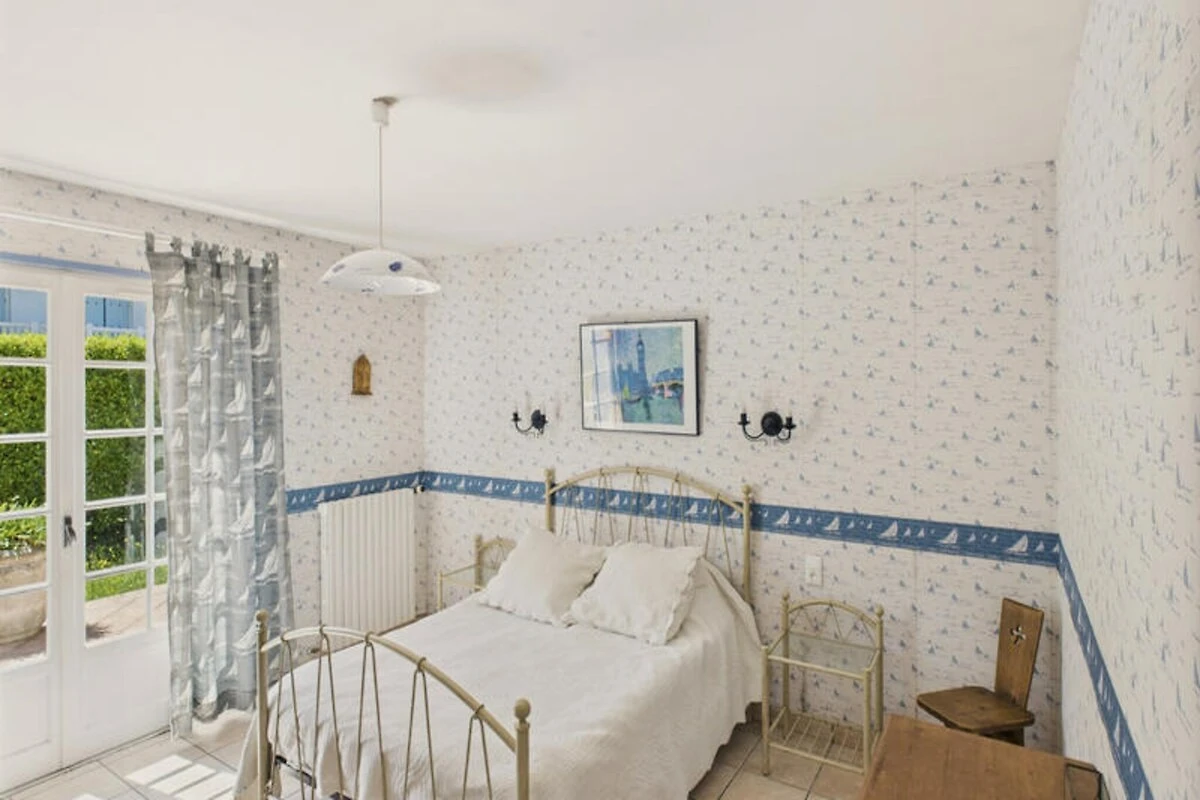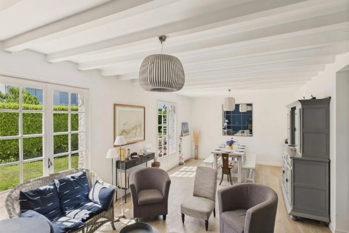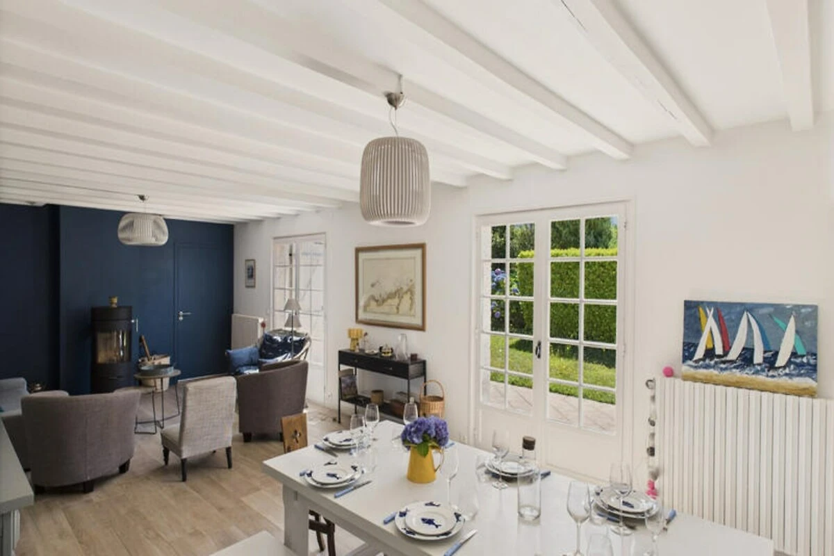 An der rauen Küste der Côtes-d'Armor bietet dieses charmante Haus in Port-Blanc eine Oase der Ruhe, nur wenige Schritte von Sandstränden und einer lebhaften Segelschule entfernt. Einst ein Nebengebäude eines historischen Hotels, vereint diese einzigartige Residenz Charakter und Komfort und ist somit ideal für Familienurlaube. Stellen Sie sich vor, wie Sie morgens die nahegelegenen Buchten erkunden, nachmittags im umzäunten Garten Tischtennis spielen und abends gemütlich am Kaminofen im geräumigen Wohnzimmer verweilen. Hier steht die Einfachheit des Lebens im Mittelpunkt, ohne Fernseher oder WLAN, die Sie von der umgebenden Naturschönheit ablenken. Das 200 m² große Haus bietet Platz für bis zu 14 Gäste in acht Schlafzimmern und verbindet Gemütlichkeit mit durchdachten Annehmlichkeiten. Die halboffene Küche ist komplett ausgestattet für kulinarische Kreationen, während der Essbereich zu gemeinsamen Mahlzeiten einlädt. Draußen ist die nach Süden ausgerichtete Terrasse mit Gartenmöbeln, Liegestühlen und einem Gasgrill für Mahlzeiten im Freien perfekt für sonnige Nachmittage. Familien werden die verspielten Details lieben, von Strandspielen bis zur Tischtennisplatte – Spaß für alle Altersgruppen ist garantiert.\n\nNur 700 Meter vom Strand Roc'hanig und dem Wassersportzentrum von Port-Blanc entfernt, ist das Anwesen ein Paradies für Wassersportler und Strandliebhaber gleichermaßen. In der Nähe bietet die Stadt Penvenan Geschäfte und Restaurants, während das malerische Perros-Guirec und die Île de Bréhat sich perfekt für Tagesausflüge eignen. Küstenwege führen vorbei an atemberaubenden Klippen, einsamen Buchten und üppigen Wäldern und schaffen unvergessliche Momente für Naturliebhaber.\n\nOb Sie Abenteuer oder Ruhe suchen, dieses Haus lädt Sie ein, Zeit mit Ihren Lieben und den atemberaubenden Landschaften der Bretagne zu verbringen. Lassen Sie sich vom Charme von Port-Blanc für Ihren nächsten Urlaub inspirieren.