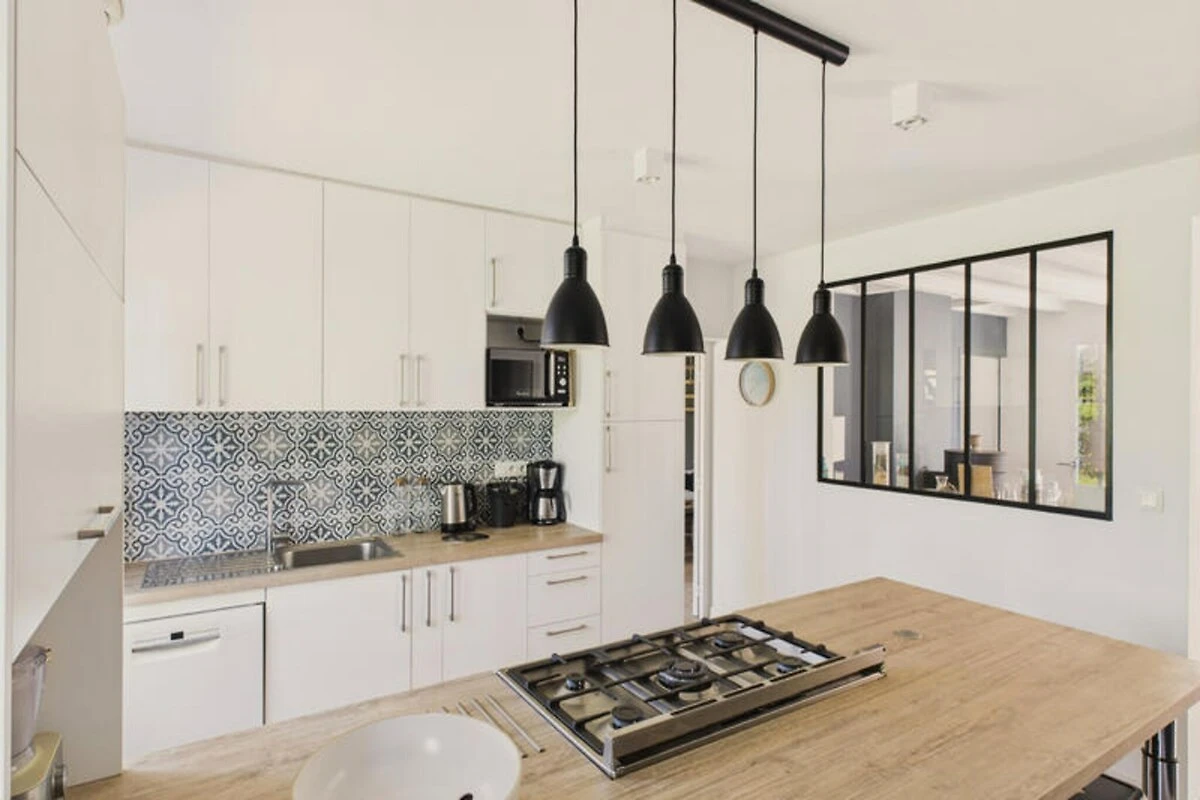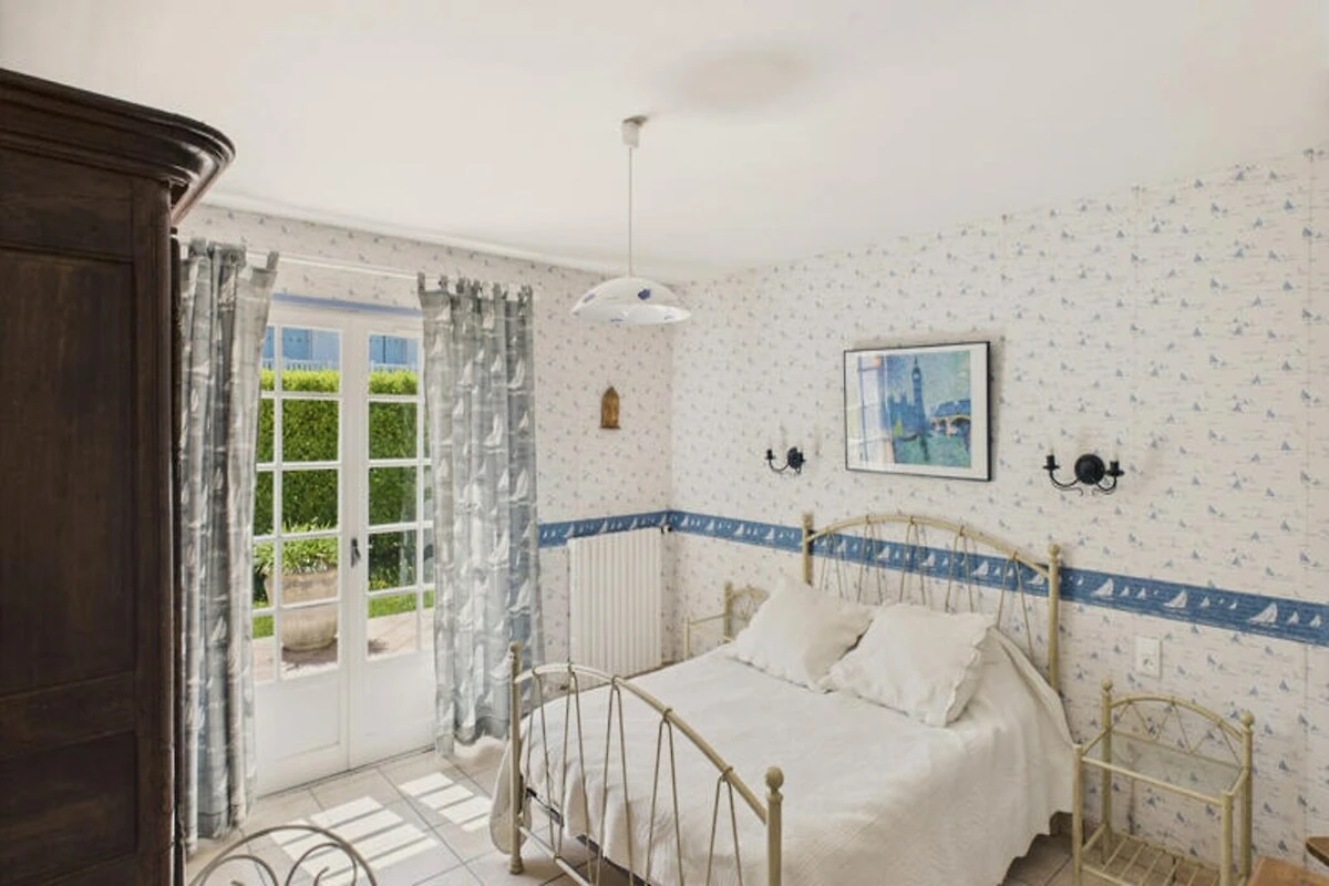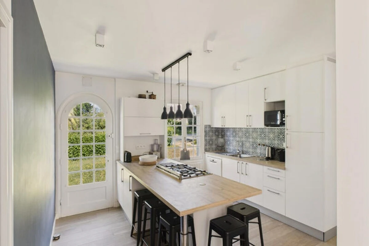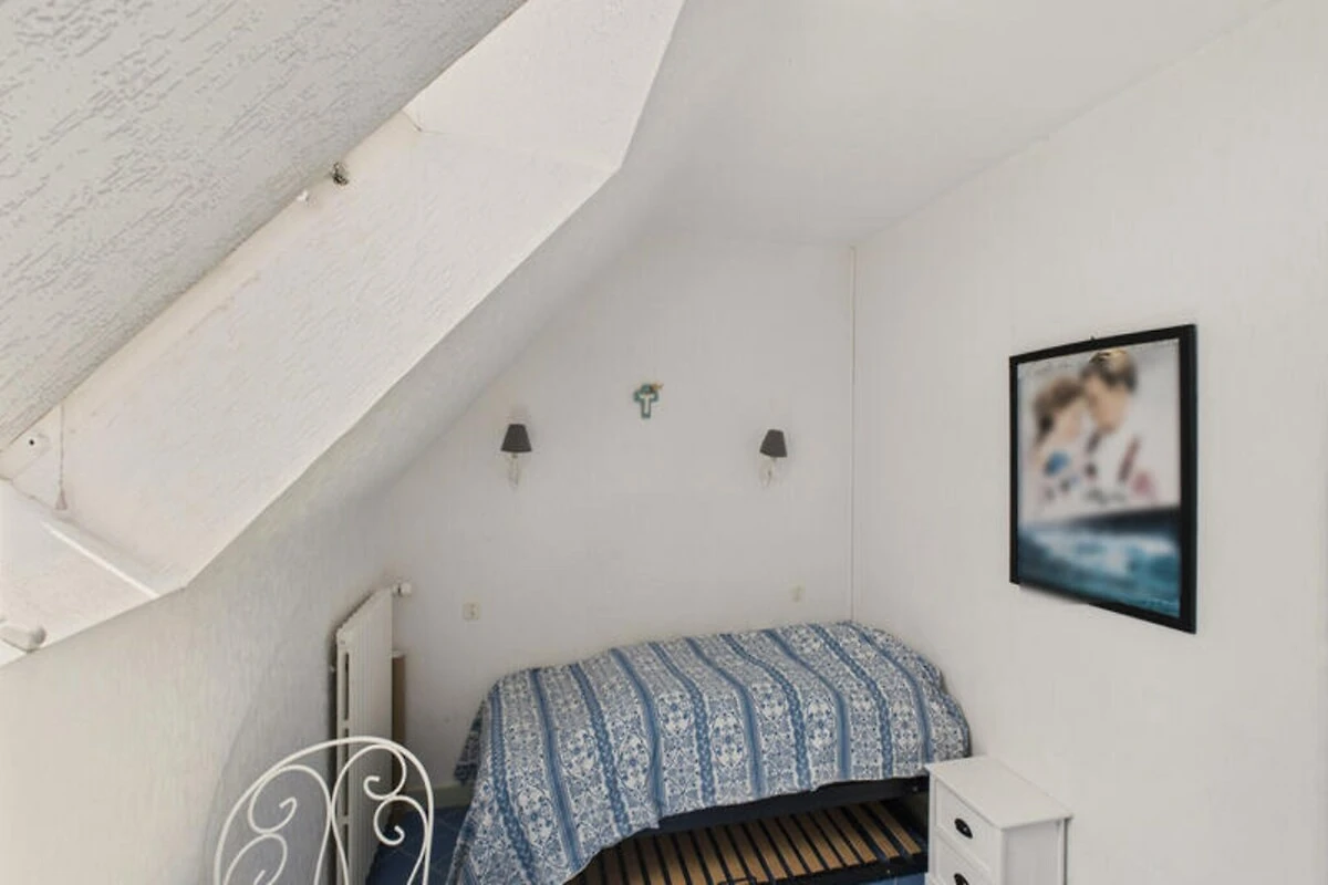 An der rauen Küste der Côtes-d'Armor bietet dieses charmante Haus in Port-Blanc eine Oase der Ruhe, nur wenige Schritte von Sandstränden und einer lebhaften Segelschule entfernt. Einst ein Nebengebäude eines historischen Hotels, vereint diese einzigartige Residenz Charakter und Komfort und ist somit ideal für Familienurlaube. Stellen Sie sich vor, wie Sie morgens die nahegelegenen Buchten erkunden, nachmittags im umzäunten Garten Tischtennis spielen und abends gemütlich am Kaminofen im geräumigen Wohnzimmer verweilen. Hier steht die Einfachheit des Lebens im Mittelpunkt, ohne Fernseher oder WLAN, die Sie von der umgebenden Naturschönheit ablenken. Das 200 m² große Haus bietet Platz für bis zu 14 Gäste in acht Schlafzimmern und verbindet Gemütlichkeit mit durchdachten Annehmlichkeiten. Die halboffene Küche ist komplett ausgestattet für kulinarische Kreationen, während der Essbereich zu gemeinsamen Mahlzeiten einlädt. Draußen ist die nach Süden ausgerichtete Terrasse mit Gartenmöbeln, Liegestühlen und einem Gasgrill für Mahlzeiten im Freien perfekt für sonnige Nachmittage. Familien werden die verspielten Details lieben, von Strandspielen bis zur Tischtennisplatte – Spaß für alle Altersgruppen ist garantiert.\n\nNur 700 Meter vom Strand Roc'hanig und dem Wassersportzentrum von Port-Blanc entfernt, ist das Anwesen ein Paradies für Wassersportler und Strandliebhaber gleichermaßen. In der Nähe bietet die Stadt Penvenan Geschäfte und Restaurants, während das malerische Perros-Guirec und die Île de Bréhat sich perfekt für Tagesausflüge eignen. Küstenwege führen vorbei an atemberaubenden Klippen, einsamen Buchten und üppigen Wäldern und schaffen unvergessliche Momente für Naturliebhaber.\n\nOb Sie Abenteuer oder Ruhe suchen, dieses Haus lädt Sie ein, Zeit mit Ihren Lieben und den atemberaubenden Landschaften der Bretagne zu verbringen. Lassen Sie sich vom Charme von Port-Blanc für Ihren nächsten Urlaub inspirieren.