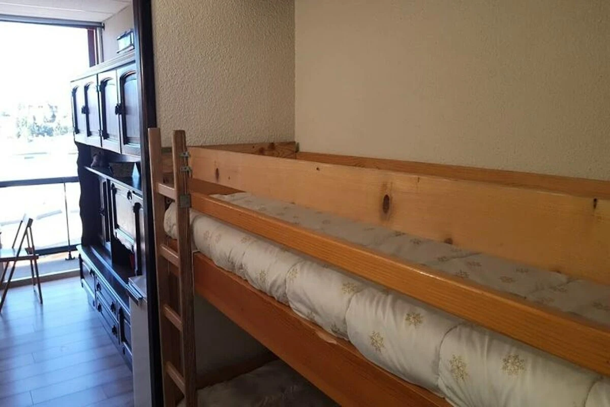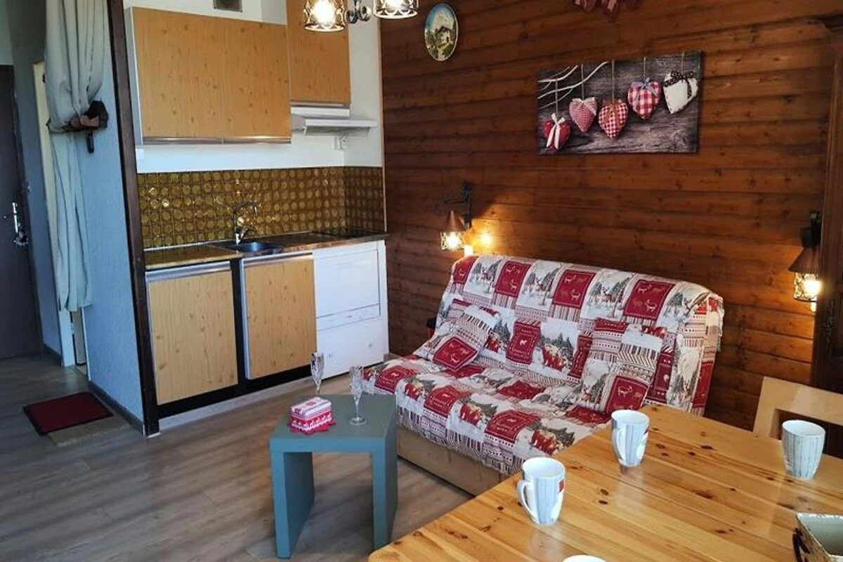 Das 23 m² große Studio ist durchdacht gestaltet und bietet Platz für bis zu vier Gäste. Das Wohnzimmer verfügt über ein bequemes Doppelschlafsofa, während der separate Schlafbereich mit zwei gemütlichen Etagenbetten ausgestattet ist, was es ideal für Familien oder kleine Gruppen macht. Die Küchenzeile ist mit zwei Elektroherdplatten, einem Kühlschrank, einer Mikrowelle und einem Geschirrspüler für sechs Personen ausgestattet, sodass Sie nach einem Tag auf der Piste alles haben, was Sie für die Zubereitung herzhafter Mahlzeiten benötigen. Der nach Südwesten ausgerichtete Balkon lädt zum Entspannen und Genießen der atemberaubenden Sonnenuntergänge in den Alpen ein, während moderne Annehmlichkeiten wie ein Fernseher und ein elektrischer Handtuchtrockner für zusätzlichen Komfort sorgen. Haustiere sind willkommen, was es zu einer perfekten Wahl für diejenigen macht, die mit ihren vierbeinigen Begleitern reisen.