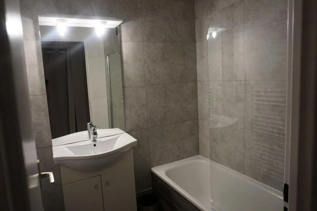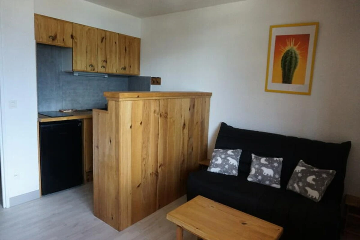Das kompakte und dennoch durchdacht gestaltete 27 m² große Studio bietet Platz für bis zu vier Gäste. Im Wohnbereich befindet sich ein bequemes Doppelschlafsofa, in einer separaten Nische zwei gemütliche Etagenbetten. Die Küchenzeile mit Elektroherd, Kühlschrank, Mikrowelle mit Grillfunktion und Geschirrspüler ermöglicht Ihnen die einfache Zubereitung von Mahlzeiten. Im Badezimmer mit Badewanne können Sie nach einem Tag auf der Piste entspannen. Ein separates WC sorgt für zusätzlichen Komfort. Das Apartment befindet sich im fünften Stock und ist bequem mit dem Aufzug erreichbar. Ein Skiraum für Ihre Ausrüstung macht es zur idealen Wahl für Skibegeisterte.