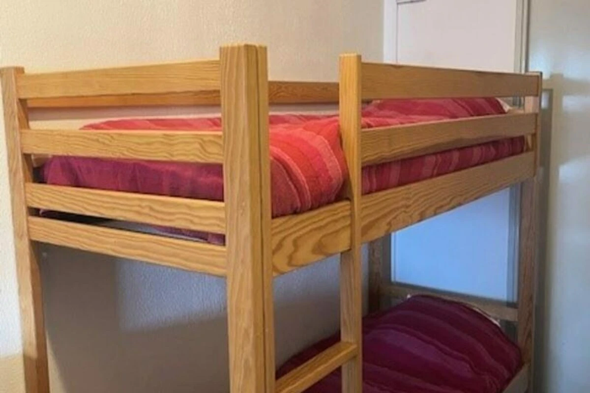 Das Apartment im dritten Stock bietet bequem Platz für bis zu sechs Gäste. Das Wohnzimmer ist mit einem Schlafsofa und Unterhaltungsmöglichkeiten wie Fernseher und DVD-Player ausgestattet, während die gemütliche Ecke mit Etagenbetten ideal für Kinder oder Freunde ist. Ein separates Schlafzimmer mit Doppelbett sorgt für Privatsphäre und Komfort. Die gut ausgestattete Küchenzeile bietet alles, was Sie zur Zubereitung von Mahlzeiten benötigen, von einer Mikrowelle mit Grillfunktion über einen Geschirrspüler bis hin zu Kaffeemaschinen. Ein Badezimmer mit Badewanne und Waschmaschine sowie ein separates WC tragen zum Komfort Ihres Aufenthalts bei.