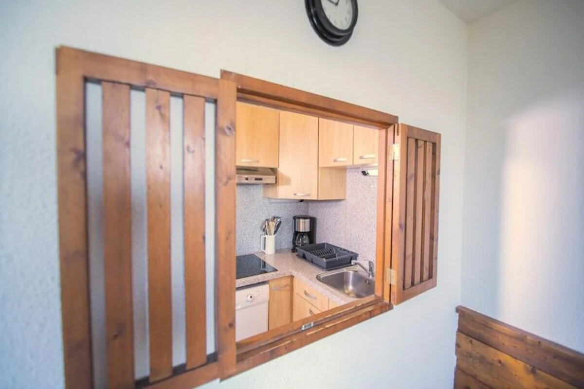 Hoch über dem malerischen Embruntal lädt dieses elegante Apartment in Les Orres 1650 Sie ein, den Zauber der Hautes-Alpes zu erleben. Mit atemberaubendem Panoramablick und erstklassiger Lage nur wenige Schritte von der Piste entfernt, vereint diese Residenz alpinen Charme mit modernem Komfort. Stellen Sie sich vor, wie Sie morgens von Ihrem Balkon aus die majestätischen Gipfel bewundern und anschließend über den einzigartigen, 19 Meter hohen Steg bequem zu den Sesselliften gelangen. Nach einem Tag auf der Piste oder beim Erkunden der Umgebung können Sie am gemütlichen Kamin entspannen oder Freunde zu einer Partie Billard herausfordern, während das Solarium den perfekten Ort bietet, um die berühmte Sonne der Region zu genießen. Das 45 m² große, durchdacht gestaltete Apartment bietet Platz für bis zu sechs Gäste und ist somit ideal für Familien oder kleine Gruppen. Die Bergnische ist mit Etagenbetten ausgestattet, ein separates Schlafzimmer verfügt über zwei Einzelbetten und das Wohnzimmer bietet ein Schlafsofa, sodass flexible Schlafmöglichkeiten für alle gewährleistet sind. Die voll ausgestattete Küche bietet einen Geschirrspüler, eine Mikrowelle mit Grillfunktion und einen Steingrill – ideal, um nach einem aktiven Tag herzhafte Mahlzeiten zuzubereiten. Die einladende Badewanne im Badezimmer lädt zum Entspannen ein, und der private Skischrank sorgt für zusätzlichen Komfort. \n\nIm Herzen von Les Orres 1650 gelegen, finden Sie alles, was Sie brauchen, innerhalb von 100 Metern: Geschäfte, Bäckereien, Restaurants und aufregende Aktivitäten wie Wintersport, Mountainbiken, Ziplining und Baumwipfelpfade. Ob Sie actionreiche Tage oder ruhige Abende unter dem Sternenhimmel suchen – diese Unterkunft bietet die perfekte Kombination aus Komfort und Abenteuer. Lassen Sie sich von der Schönheit des Embrun-Tals und der Herzlichkeit von Les Orres verzaubern und unvergessliche Erinnerungen schaffen.