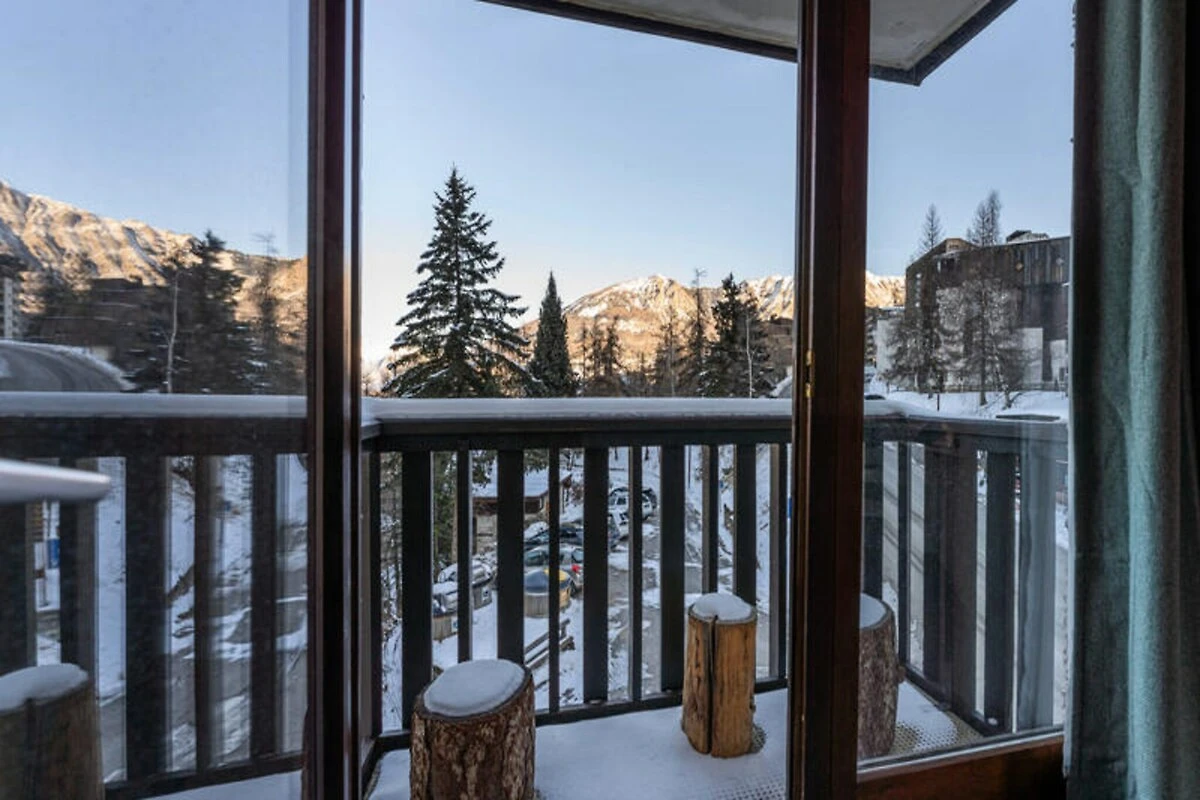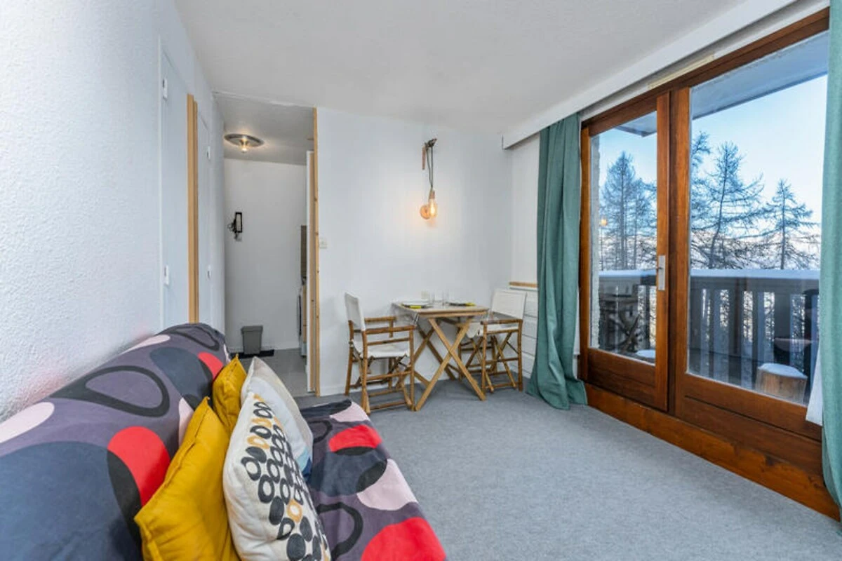 Hoch über dem Embruntal, wo die Gipfel der Hautes-Alpes den Himmel berühren, bietet dieses charmante Studio-Apartment einen unvergleichlichen Rückzugsort. Dank seiner erstklassigen Lage im Herzen von Les Orres 1650 genießen Sie von Ihrem Balkon im siebten Stock jeden Morgen einen atemberaubenden Bergblick und tauchen in eine Welt alpiner Abenteuer ein, die nur wenige Schritte entfernt liegt. Ob Sie die unberührten Pisten hinunterfahren oder einfach die sonnige Ruhe des Solariums genießen möchten – diese Unterkunft verspricht einen unvergesslichen Aufenthalt. Das 18 m² große Studio ist durchdacht für zwei Gäste gestaltet und vereint Komfort und Funktionalität. Die gut ausgestattete Küche verfügt über ein Cerankochfeld, eine Tassimo-Kaffeemaschine und alles, was Sie für die Zubereitung köstlicher Mahlzeiten nach einem Tag im Freien benötigen. Ein gemütliches Schlafsofa sorgt für erholsame Nächte, während Annehmlichkeiten wie eine Waschmaschine Ihren Aufenthalt unkompliziert gestalten. Der private Skiraum ist ideal, um Ihre Ausrüstung sicher zu verstauen, sodass Sie sich ganz auf den Genuss der Pisten konzentrieren können, die weniger als 100 Meter von Ihrer Tür entfernt liegen. Les Orres 1650 ist ein lebendiger Ort, an dem Sie alles Notwendige bequem erreichen können. Von charmanten Bäckereien und Souvenirläden bis hin zu Restaurants mit regionalen Spezialitäten bietet der Ferienort für jeden Geschmack etwas. Abenteuerlustige werden die Vielfalt an Aktivitäten lieben, darunter Mountainbiken, Ziplining und Baumwipfelpfade. Die Pistenfront und die Sessellifte sind nur wenige Schritte entfernt und verbinden Sie mit den berühmten Abfahrten der Region. Ob Sie aufregende Wintersportarten oder entspannte Sommerwanderungen suchen – dieses Studio ist Ihr Tor zur Schönheit und Faszination der Hautes-Alpes. Lassen Sie sich von den Panoramablicken und der herzlichen Atmosphäre von Les Orres 1650 zu Ihrem nächsten alpinen Urlaub inspirieren.