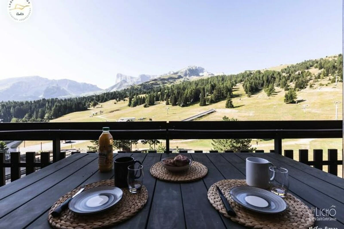 Hoch über den malerischen Landschaften der französischen Alpen bietet dieses charmante Apartment einen Logenplatz mit Blick auf die unberührten Pisten von Superdévoluy. Stellen Sie sich vor, Sie wachen auf und die Sonne spiegelt sich im goldenen Licht des Pic de Bure, während sich das Skigebiet vor Ihnen ausbreitet. Ob Sie nun durch den Pulverschnee gleiten oder einfach nur die alpine Schönheit genießen möchten – diese Unterkunft verspricht einen unvergesslichen Bergurlaub. Der nach Süden ausgerichtete Balkon ist der perfekte Ort, um Ihren Morgenkaffee zu genießen, die atemberaubende Aussicht zu bewundern und Ihre Tagesabenteuer zu planen. \n\nDieses komplett renovierte Zweizimmer-Apartment befindet sich im 6. Stock der Residence Les Issarts und ist auf Komfort und Bequemlichkeit ausgelegt. Es bietet Platz für bis zu vier Gäste und verfügt über ein gemütliches Wohnzimmer mit Schlafsofa und ein separates Schlafzimmer mit zwei Einzelbetten. Die Küche ist mit modernen Geräten ausgestattet, darunter ein Backofen, eine Nescafé Dolce Gusto Kaffeemaschine, ein Toaster, ein Wasserkocher und sogar ein Raclette-Grill für ein authentisches Alpen-Erlebnis. Nach einem Tag auf der Piste können Sie im einladenden Wohnbereich entspannen oder eine warme Mahlzeit aus Ihrer eigenen Küche genießen. Ein Fernseher sorgt für Unterhaltung, und die Wohnung ist bequem mit dem Aufzug erreichbar. \n\nAm Fuße der Pisten von Superdévoluy finden Sie alles, was Sie brauchen, in unmittelbarer Nähe. Die Unterkunft ist direkt mit dem Wald Bois d'Aurouze, Geschäften und wichtigen Einrichtungen verbunden und somit der ideale Ausgangspunkt für Ihre alpinen Abenteuer. Überdachte Parkplätze können angemietet werden, und zusätzliche Annehmlichkeiten wie Bettwäscheverleih und Endreinigung garantieren einen unbeschwerten Aufenthalt. \n\nOb Sie den Nervenkitzel des Skifahrens, die Ruhe der Berge oder den Charme eines gemütlichen alpinen Rückzugsortes suchen – diese Wohnung bietet die perfekte Balance zwischen Abenteuer und Entspannung. Mit ihrer unschlagbaren Lage und dem atemberaubenden Ausblick ist sie ein Paradies für Naturliebhaber und Wintersportbegeisterte gleichermaßen.