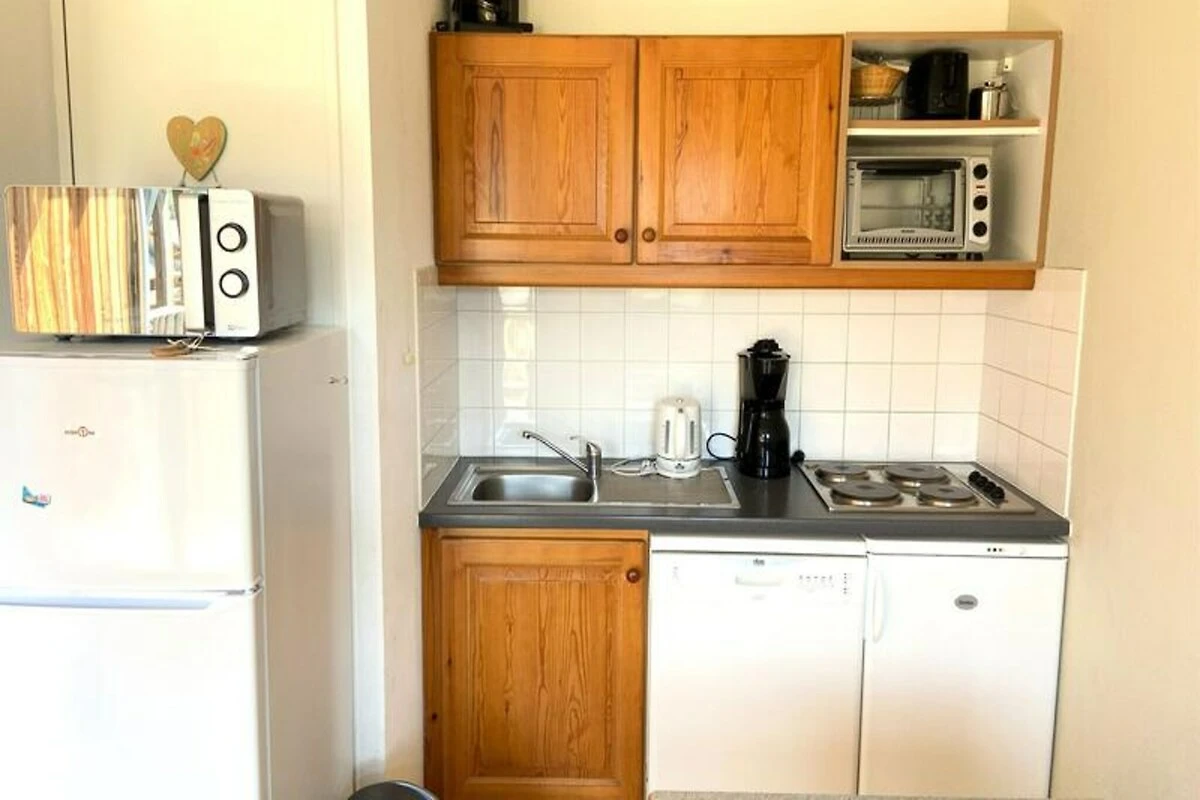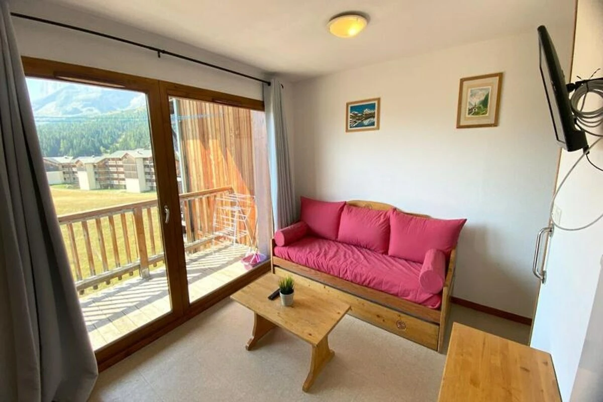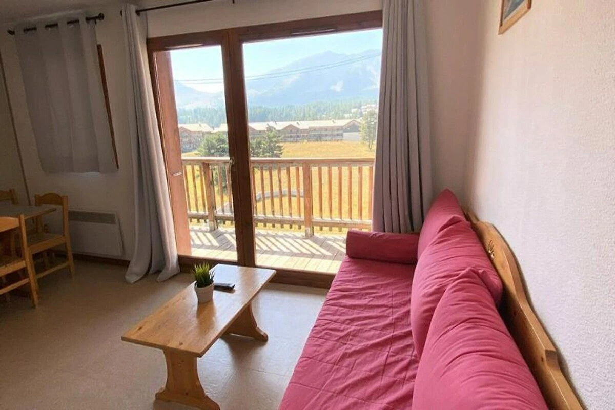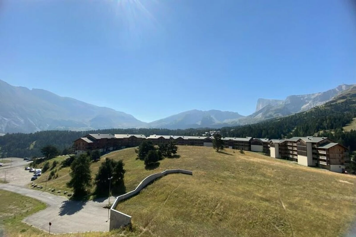 Hoch über den bezaubernden französischen Alpen bietet dieses charmante Apartment die perfekte Kombination aus Komfort und Bequemlichkeit für Ihren nächsten Bergurlaub. Die Unterkunft befindet sich in einer Anlage mit acht Chalets, die jeweils 30 Apartments beherbergen, und ist ideal für Familien oder Gruppen, die einen gemütlichen Rückzugsort in den Alpen suchen. Dank des nach Süden ausgerichteten Balkons genießen Sie jeden Morgen einen atemberaubenden Blick auf die umliegenden Gipfel und können den ganzen Tag die wärmende Sonne genießen. Nur 200 Meter von den Pisten entfernt, ist es ein Paradies für Skibegeisterte, die die unberührten Abfahrten der Region schnell und unkompliziert erreichen möchten. Das 48 m² große Apartment im 5. Stock, das bequem mit dem Aufzug erreichbar ist, bietet Platz für bis zu 8 Gäste. Es verfügt über zwei einladende Schlafzimmer mit Doppelbetten, eine Schlafnische mit Etagenbetten und ein Wohnzimmer mit Ausziehbett. Die gut ausgestattete Küchenzeile umfasst Geschirrspüler, Minibackofen, Mikrowelle, Filterkaffeemaschine, Toaster, Wasserkocher und Gefrierschrank – so können Sie nach einem Tag auf der Piste ganz einfach leckere Mahlzeiten zubereiten. Moderne Annehmlichkeiten wie Fernseher und Bettdecken sorgen für einen entspannten Aufenthalt, während optionale Bettwäschemiete und Reinigungsservice zusätzlichen Komfort bieten.\n\nNur wenige Schritte von der Unterkunft entfernt finden Sie Geschäfte und Restaurants – ideal, um die lokale Küche und die kulinarischen Genüsse nach dem Skifahren zu entdecken. Kostenlose Parkplätze rund um das Gebäude und optionale überdachte Parkplätze garantieren eine stressfreie Anreise. Haustiere sind willkommen, sodass Sie Ihre vierbeinigen Freunde mitbringen können. Ob Sie zum Skifahren, Wandern oder einfach nur zum Genießen des alpinen Charmes hier sind – dieses Apartment ist der perfekte Ausgangspunkt für unvergessliche Erlebnisse in den französischen Alpen.