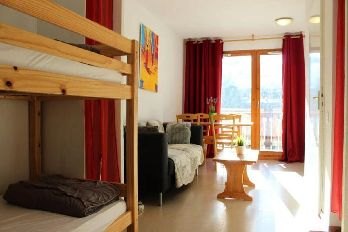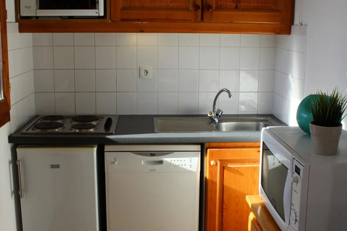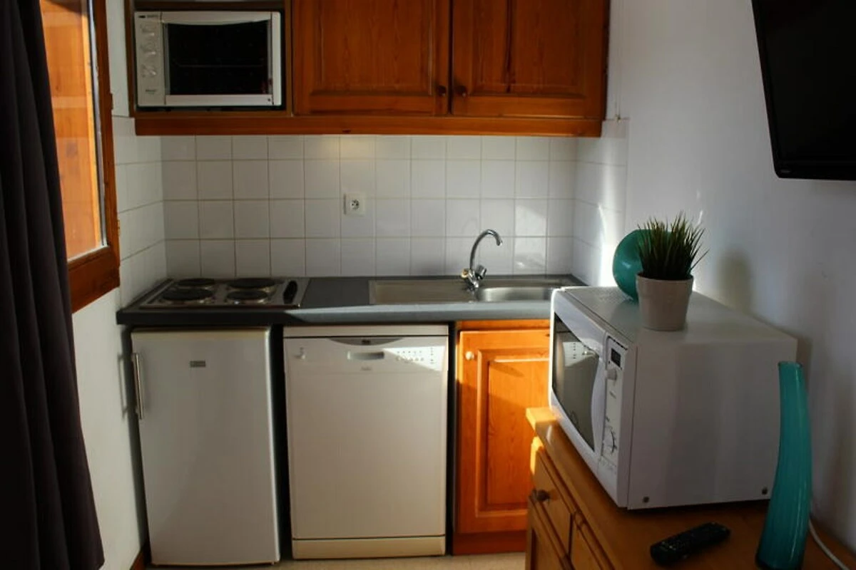 Dieses gemütliche Zweizimmer-Apartment im zweiten Stock bietet Platz für bis zu vier Gäste. Das Wohnzimmer verfügt über eine voll ausgestattete Küchenzeile mit modernen Geräten wie Kühlschrank, Geschirrspüler, Backofen, Mikrowelle und mehr, sodass Sie nach einem erlebnisreichen Tag ganz einfach Mahlzeiten zubereiten können. Das Schlafzimmer ist mit einem komfortablen Doppelbett ausgestattet, während die Nische mit Etagenbetten eine verspielte Note für Familien oder Freunde bietet. Das Apartment ist mit Bettdecken ausgestattet, und zusätzliche Annehmlichkeiten wie Bettwäscheverleih und Endreinigung sorgen für einen unbeschwerten Aufenthalt. Ein privater Skischrank und ein barrierefreies Duschbad sorgen für zusätzlichen Komfort und machen die Unterkunft zu einem einladenden Ort für alle Gäste. Nur wenige Schritte von den Pisten, Geschäften und allen wichtigen Einrichtungen entfernt. Kostenlose Parkplätze rund um die Unterkunft sowie die Möglichkeit, einen überdachten Parkplatz zu nutzen, garantieren eine stressfreie An- und Abreise. Ob Sie im Winter die unberührten Schneemassen genießen oder im Sommer die üppigen Alpenwanderwege erkunden möchten – diese Unterkunft liegt mittendrin. Auch Haustiere sind willkommen, sodass Ihre vierbeinigen Freunde Sie auf Ihren Abenteuern begleiten können. Mit ihrer unschlagbaren Lage, dem modernen Komfort und der atemberaubenden Aussicht ist dieses Apartment mehr als nur eine Unterkunft – es ist Ihr Tor zu unvergesslichen Alpenerlebnissen. Buchen Sie noch heute Ihren Urlaub und erleben Sie die Magie der französischen Alpen.