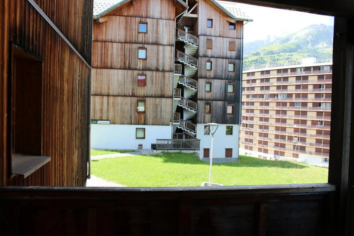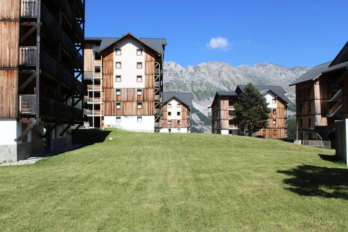 Hoch über den idyllischen Tälern der französischen Alpen bietet dieses charmante Apartment einen gemütlichen Rückzugsort für alle, die Abenteuer und Entspannung suchen. Von der nach Süden ausgerichteten Terrasse mit atemberaubendem Blick auf den Pic de Bure fühlt sich jeder Moment hier wie eine lebendig gewordene Postkarte an. Ob Sie bei Sonnenaufgang Ihren Kaffee genießen oder nach einem Tag auf der Piste entspannen – dieser Ort ist perfekt, um in alpine Ruhe einzutauchen. Die Anlage besteht aus acht Chalets mit jeweils 30 Apartments und schafft so eine herzliche Gemeinschaftsatmosphäre nur 200 Meter von den Skipisten entfernt. Das Apartment ist für bis zu vier Gäste ausgelegt und bietet eine praktische Aufteilung mit Wohnküche, einer Schlafnische mit Etagenbetten und einem separaten Schlafzimmer mit Doppelbett. Die voll ausgestattete Küche umfasst Geschirrspüler, Mikrowelle, Filterkaffeemaschine, Toaster und Wasserkocher – alles, was Sie für einen komfortablen Aufenthalt benötigen. Moderne Annehmlichkeiten wie ein Fernseher und ein Badezimmer mit Badewanne sorgen für zusätzlichen Komfort, und der private Skischrank macht die Ausrüstung für die Piste kinderleicht. Für zusätzlichen Komfort sind Bettdecken vorhanden, Bezüge können gemietet werden. Die Lage ist ideal für Skibegeisterte, denn Geschäfte und Pisten sind nur wenige Gehminuten entfernt. Kostenlose Parkplätze befinden sich rund um die Unterkunft, überdachte Parkplätze können reserviert werden. Im Sommer verwandelt sich die Gegend in ein Paradies für Wanderer und Naturliebhaber. Wanderwege führen durch die Schönheit der umliegenden Gipfel. Haustiere sind willkommen, sodass Sie Ihre vierbeinigen Freunde problemlos mitbringen können. Ob Sie nun im Tiefschnee Ihre Spuren ziehen oder die alpinen Loipen erkunden möchten – dieses Apartment bietet eine gelungene Kombination aus Komfort, Bequemlichkeit und atemberaubender Landschaft und garantiert so einen unvergesslichen Bergurlaub.
