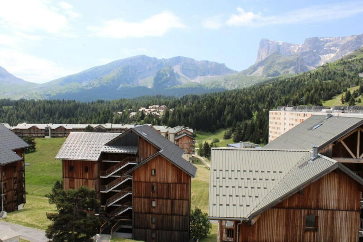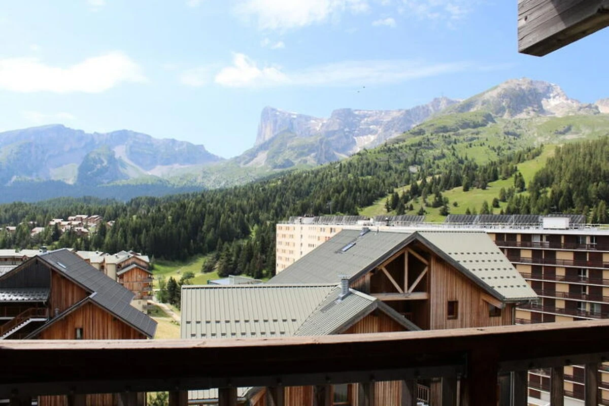 Hoch über den malerischen Landschaften der französischen Alpen bietet dieses charmante Apartment einen ruhigen Rückzugsort mit atemberaubendem Blick auf den Pic de Bure. Stellen Sie sich vor, wie Sie Ihren Morgenkaffee auf dem nach Süden ausgerichteten Balkon genießen, während die Sonne über den Gipfeln aufgeht und Ihren Tag mit alpinen Abenteuern und Entspannung füllt. Die Unterkunft liegt nur 200 Meter von den Skipisten entfernt und ermöglicht Ihnen so einen nahtlosen Übergang zum unberührten Schnee und dem pulsierenden Bergleben. Ob Wintersport oder Sommerwanderungen – dies ist Ihr Tor zur Natur. \n\nDas Apartment befindet sich im 8. Stock eines Komplexes mit 8 Chalets und bietet bequem Platz für bis zu 6 Gäste. Es verfügt über ein gemütliches Wohnzimmer mit Doppelschlafsofa, eine Nische mit Etagenbetten und ein separates Schlafzimmer mit Doppelbett. Die voll ausgestattete Küchenzeile umfasst Geschirrspüler, Minibackofen, Mikrowelle und alles, was Sie für die Zubereitung leckerer Mahlzeiten nach einem erlebnisreichen Tag benötigen. Moderne Annehmlichkeiten wie Fernseher und Heizung sorgen für einen komfortablen Aufenthalt, während der private Skiraum zusätzlichen Komfort für Wintersportler bietet. Die Unterkunft bietet kostenlose Parkplätze rund um den Komplex; überdachte Parkplätze stehen gegen eine geringe Gebühr zur Verfügung. Geschäfte und Restaurants sind fußläufig erreichbar, sodass Sie die lokale Küche genießen und sich mit dem Nötigsten versorgen können. Haustiere sind willkommen, bringen Sie Ihre vierbeinigen Freunde also gerne mit. Zusätzliche Services wie Bettwäscheverleih und Endreinigung sorgen für einen unbeschwerten Aufenthalt. Ob Sie sich von der Faszination der Pisten, dem Charme der Dörfer oder der Ruhe der Alpenlandschaft angezogen fühlen – dieses Apartment ist der perfekte Ausgangspunkt für unvergessliche Erlebnisse im Herzen der französischen Alpen.