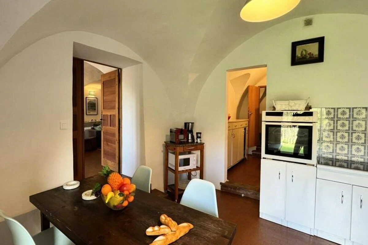 Im idyllischen Dorf Sainte-Catherine, wo sich die majestätische Écrins-Bergkette am Horizont erstreckt, bietet dieses traditionelle Alpenhaus eine einzigartige Kombination aus Charme und Komfort. Mit seinen Gewölbedecken und der rosafarbenen Fassade verströmt das Anwesen authentischen Charakter und lädt Gäste ein, in die friedvolle Schönheit der Südalpen einzutauchen. Ob Sie von der Terrasse aus den Blick schweifen lassen oder im nach Südwesten ausgerichteten Garten entspannen – der Panoramablick wird Sie begeistern und bietet die perfekte Kulisse für Ihren Bergurlaub. Ein kostenloser Shuttle vom Dorfplatz sorgt für bequemen Zugang zum nahegelegenen Skigebiet und macht diesen Ort ideal für Abenteuer und Erholung gleichermaßen. \n\nDiese beeindruckende 200 m² große 4-Sterne-Residenz bietet Platz für bis zu 12 Gäste und ist somit perfekt für Familien oder Freundesgruppen. Im Obergeschoss befinden sich vier liebevoll gestaltete Schlafzimmer, darunter zwei Doppelzimmer mit Balkonzugang, ein Kinderzimmer mit Etagenbetten und Ausziehbetten sowie ein Zweibettzimmer. Jedes Zimmer ist mit modernen Annehmlichkeiten wie eigenem Bad und viel Stauraum ausgestattet und bietet so höchsten Komfort. Im Erdgeschoss lädt der helle und geräumige Wohnbereich zum Entspannen am Kamin, zu gemeinsamen Mahlzeiten im Esszimmer oder zum Musizieren mit Klavier und Gitarre ein. Die voll ausgestattete Küche mit hochwertigen Geräten ist ideal für größere Runden, und dank WLAN bleiben Sie während Ihres gesamten Aufenthalts in Verbindung. Nur wenige Minuten von Vars La Forêt Blanche entfernt, bietet dieses Haus das Beste aus zwei Welten: die Ruhe eines idyllischen Weilers und die Faszination des Skifahrens auf Weltklasseniveau. Kostenlose Shuttlebusse und ein nahegelegener Skilift ermöglichen einen bequemen Zugang zu den Pisten, während die Umgebung perfekt zum Wandern und Erkunden der alpinen Landschaft geeignet ist. Ob Sie aufregende Abenteuer oder ruhige Momente in der Natur suchen – dieses Bergrefugium verspricht unvergessliche Erinnerungen im Herzen der Südalpen. Wählen Sie dieses charmante Anwesen für Ihren nächsten Urlaub und erleben Sie die perfekte Balance aus Authentizität, Komfort und atemberaubender Landschaft.