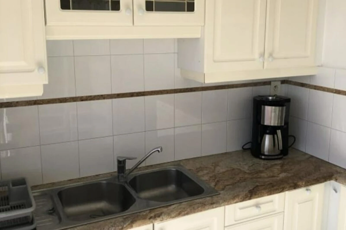 Im Inneren vereint das Apartment modernen Luxus mit durchdachtem Komfort. Das geräumige, lichtdurchflutete Wohnzimmer verfügt über ein gemütliches Sofa, einen Essbereich für sechs Personen und direkten Zugang zur Terrasse. Die voll ausgestattete Küche mit Kochinsel macht die Zubereitung von Mahlzeiten zum Vergnügen. Zwei stilvoll eingerichtete Schlafzimmer, jeweils mit eigenem Bad, garantieren Privatsphäre und Entspannung. Das Hauptschlafzimmer bietet einen privaten Balkon mit Blick auf einen üppigen Garten, während das zweite Schlafzimmer mit einem Doppelbett einen ruhigen Rückzugsort bietet. Klimaanlage in den Schlafzimmern und Highspeed-WLAN sorgen für zusätzlichen Komfort.