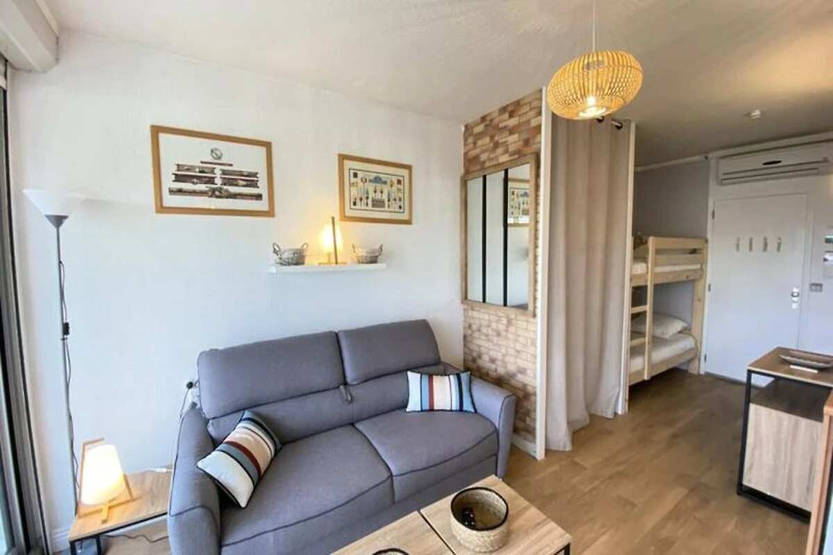 Stellen Sie sich vor, Sie wachen zum sanften Rauschen der Wellen und der pulsierenden Energie der Côte d’Azur auf. Dieses charmante Studio in einer Ferienanlage, nur 100 Meter vom Yachthafen Saint-Laurent-du-Var und seinen goldenen Stränden entfernt, bietet den perfekten Rückzugsort für Familien oder Paare, die Entspannung und Abenteuer suchen. Genießen Sie auf Ihrem sonnenverwöhnten Balkon ein entspanntes Frühstück oder ein romantisches Abendessen unter dem azurblauen Himmel. Die lebhafte Atmosphäre des Yachthafens mit seiner Uferpromenade und den Restaurants am Meer ist nur einen kurzen Spaziergang entfernt und verspricht unvergessliche Momente am Wasser. Das Studio ist durchdacht gestaltet und bietet bequem Platz für 2 Erwachsene und 2 Kinder. Es verfügt über ein Schlafsofa und zwei Etagenbetten mit neuer, hochwertiger Bettwäsche für erholsame Nächte. Das Apartment befindet sich im dritten Stock und ist bequem mit dem Aufzug erreichbar. Gästen stehen ein überdachter Parkplatz in der Tiefgarage sowie ausreichend Außenstellplätze zur Verfügung. Die klimatisierte Wohnung ist mit Glasfaser-Internet ausgestattet und somit ideal zum Entspannen und um in Verbindung zu bleiben. Gäste können die Annehmlichkeiten der Residenz nutzen, darunter ein Swimmingpool, ein Tennisplatz und ein Kinderspielplatz – für abwechslungsreiche Unterhaltung für alle Altersgruppen. \n\nDie perfekte Lage in der Nähe von Hauptstraßen und dem Flughafen macht diese Unterkunft zum idealen Ausgangspunkt, um die Schätze der Côte d’Azur zu entdecken. Ob Sie Nizza, Cannes oder Monaco besuchen oder einfach nur die lebendige Atmosphäre der Region genießen möchten – alles ist bequem erreichbar. Dank der guten Anbindung an den öffentlichen Nahverkehr, darunter Busse und der nahegelegene Bahnhof, ist das Reisen unkompliziert, und kostenlose Parkplätze bieten Komfort für alle, die mit dem Auto anreisen. \n\nDieses Studio ist mehr als nur eine Unterkunft – es bietet Ihnen die Möglichkeit, in den Charme, die Schönheit und die Kultur der Riviera einzutauchen. Mit seiner idealen Lage und den einladenden Annehmlichkeiten erwartet Sie hier Ihr Traumurlaub.