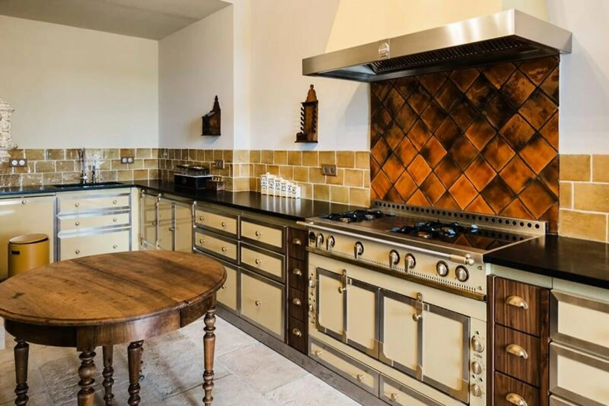 Mit 1.500 m² elegantem Wohnraum bietet Mas Caladoc Platz für bis zu 20 Gäste und höchsten Komfort. Die neun Schlafzimmer sind mit luxuriösen Kingsize-Betten ausgestattet und verfügen über neun elegante Badezimmer, von denen acht sowohl mit Dusche als auch mit Badewanne ausgestattet sind. Das Anwesen bietet drei voll ausgestattete Küchen, ein geräumiges Wohnzimmer, ein privates Kino und einen Empfangsbereich, der sich ideal für gesellige Zusammenkünfte eignet. Jedes Detail wurde sorgfältig ausgewählt, um einen unvergesslichen Aufenthalt zu gewährleisten – von Highspeed-WLAN über ein hochwertiges Audiosystem bis hin zu einer Auswahl an Büchern, Spielen und Zeitschriften für alle Altersgruppen.