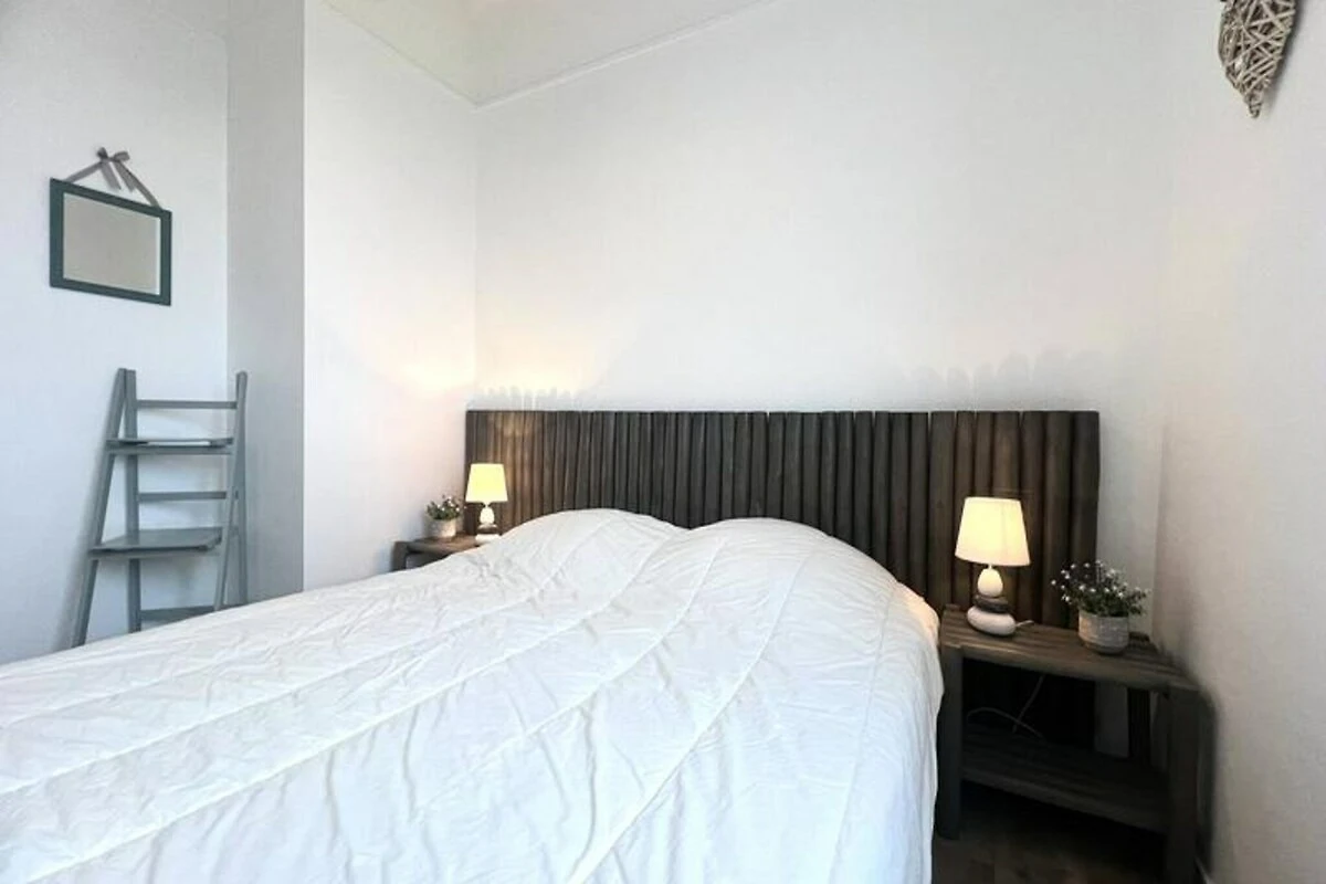 Stellen Sie sich vor, Sie wachen vom sanften Rauschen der Wellen am Ufer auf und genießen den glitzernden Ozean vor sich. Dieses Penthouse-Apartment bietet einen idyllischen Rückzugsort an der Küste, nur wenige Schritte von einem unberührten Sandstrand, einem lebhaften Casino, charmanten Restaurants und Freizeiteinrichtungen wie Tennisplätzen und einem Golfplatz entfernt. Ob Sie sich nach Entspannung oder einem aktiven Urlaub sehnen – hier finden Sie alles, inklusive atemberaubendem Blick auf das nur wenige Kilometer entfernte, ikonische Cap Fréhel. Treten Sie ein und entdecken Sie ein durchdacht gestaltetes Apartment, das Komfort und Funktionalität vereint. Es verfügt über einen einladenden Eingangsbereich mit Garderobe, eine voll ausgestattete Küche mit modernen Geräten wie Mikrowelle, Backofen, Geschirrspüler und Espressomaschine sowie einen gemütlichen Wohn-/Essbereich, der zum Entspannen nach einem erlebnisreichen Tag einlädt. Zwei ruhige Schlafzimmer mit jeweils einem Queensize-Bett (160 x 200 cm) versprechen erholsame Nächte, während das Badezimmer mit Badewanne und separatem WC für Komfort für alle Gäste sorgt. Zusätzliche Annehmlichkeiten wie WLAN, eine Waschmaschine und ein privater Parkplatz sorgen für einen angenehmen Aufenthalt. Bettwäsche und Handtücher sind selbstverständlich inklusive.\n\nDie lebendige Umgebung lädt zum Erkunden ein. Spazieren Sie am Strand entlang, genießen Sie frische Meeresfrüchte in nahegelegenen Restaurants oder spielen Sie eine Runde Golf mit Meerblick. Naturliebhaber finden in Cap Fréhel imposante Klippen und Panoramablicke – ideal zum Wandern oder einfach nur, um die Schönheit der bretonischen Küste zu genießen. Mit seiner Kombination aus modernem Komfort und erstklassiger Lage ist dieses Apartment der perfekte Ausgangspunkt für unvergessliche Momente am Meer.